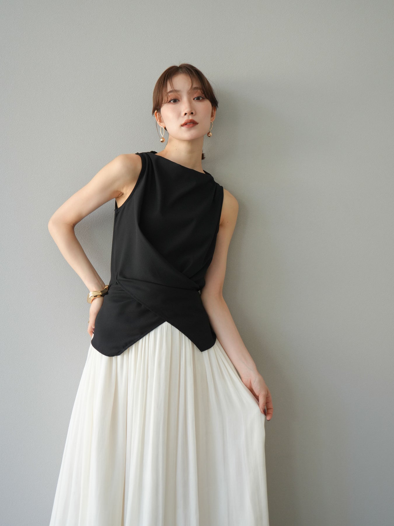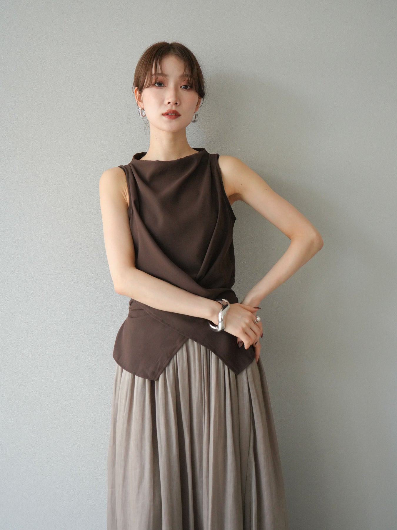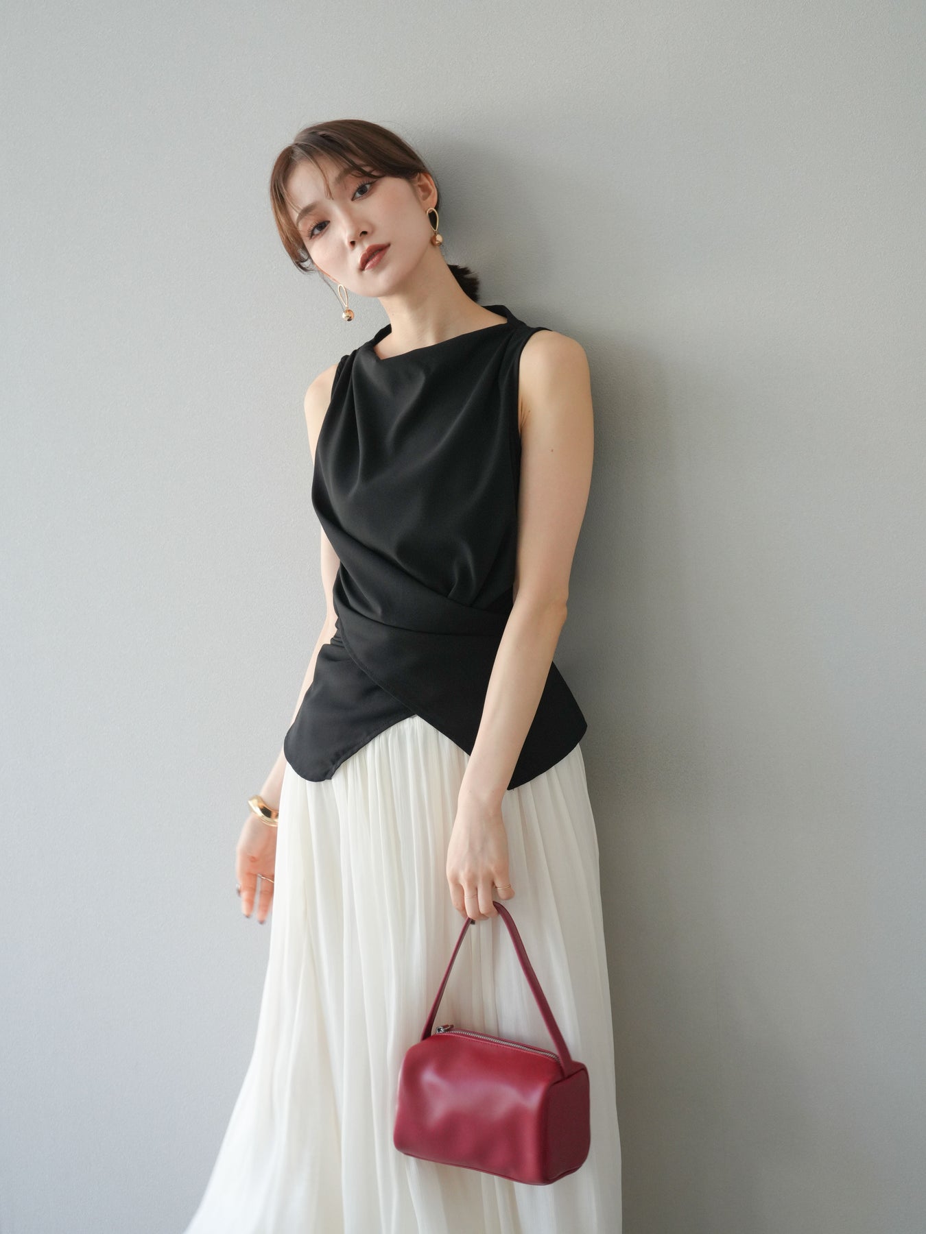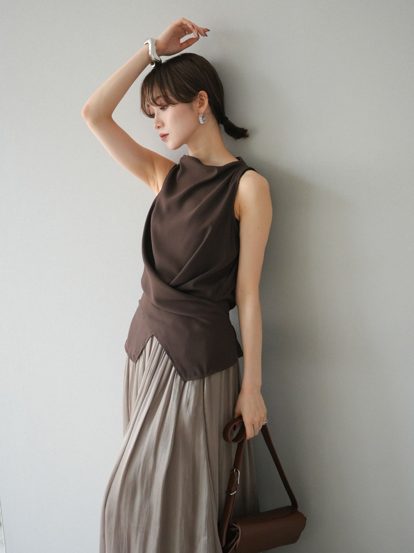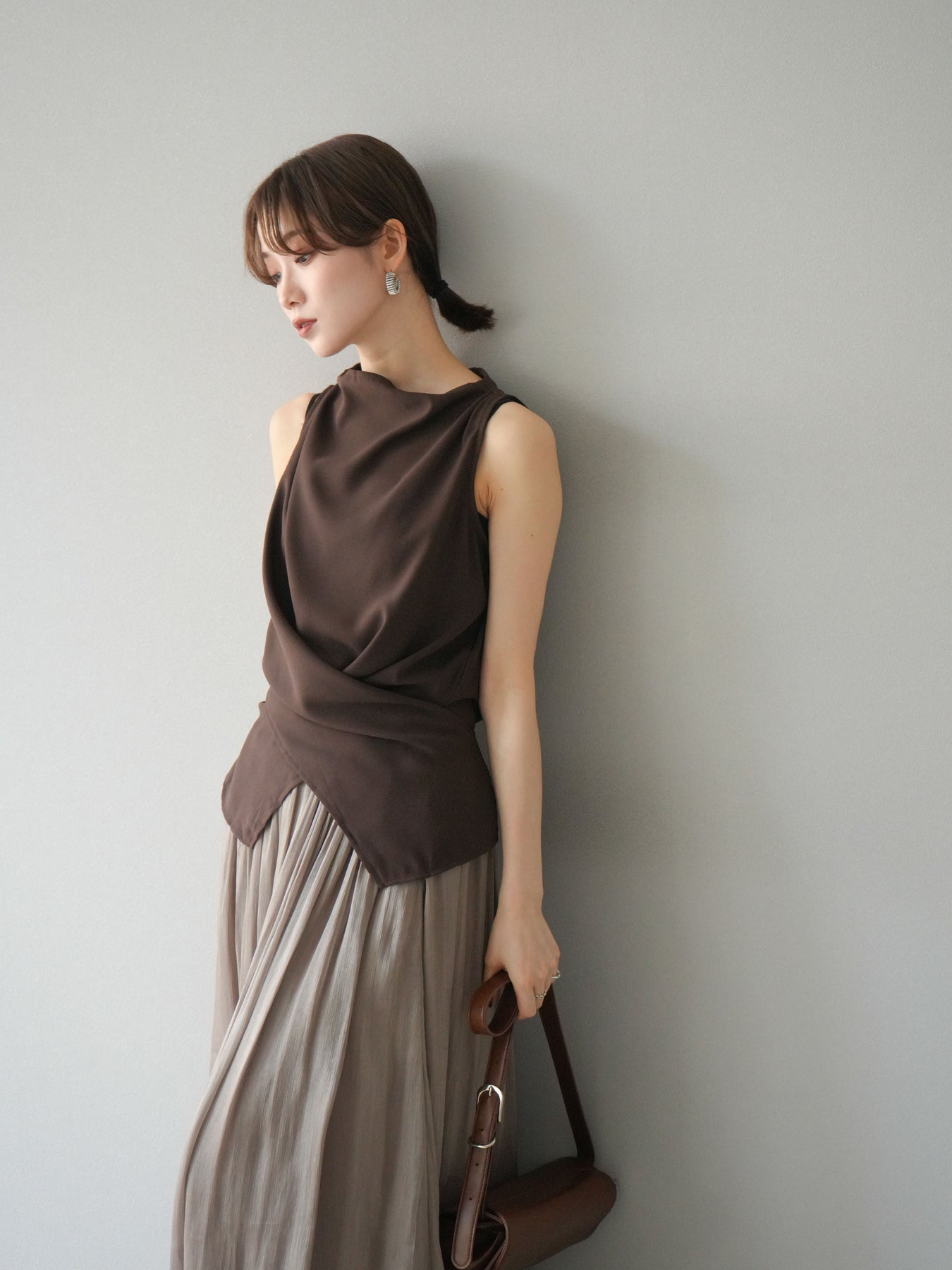 柔らかく上品な光沢感が魅力のシャイニーフレアスカートと、ウエストラインを美しく見せるカッティングのノースリーブトップスをセットにしたコーデセット。 トップスは程よく体にフィットしながらもタックデザインが立体感をプラスし、単品使いでも着映える1枚に。 スカートはふわりと揺れるエアリーな素材感で、シンプルながらもドラマティックな印象を演出してくれます。 セットアップとしてはもちろん、それぞれ単品で着回してもスタイリングの幅が広がります。 ※ボトムス、キャミソール(インナー)以外の商品は一律でインナーは付属していません。