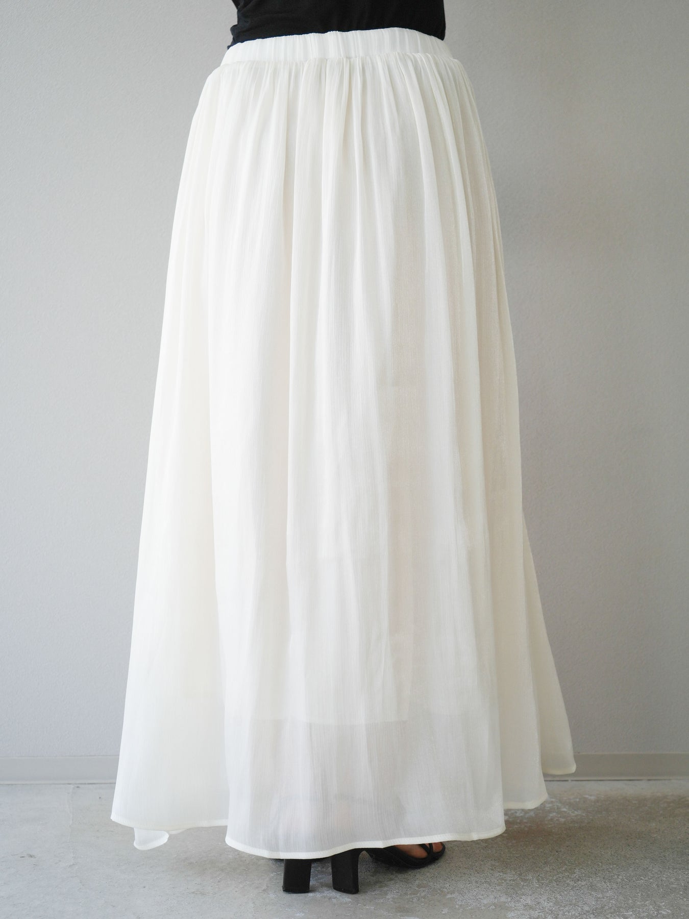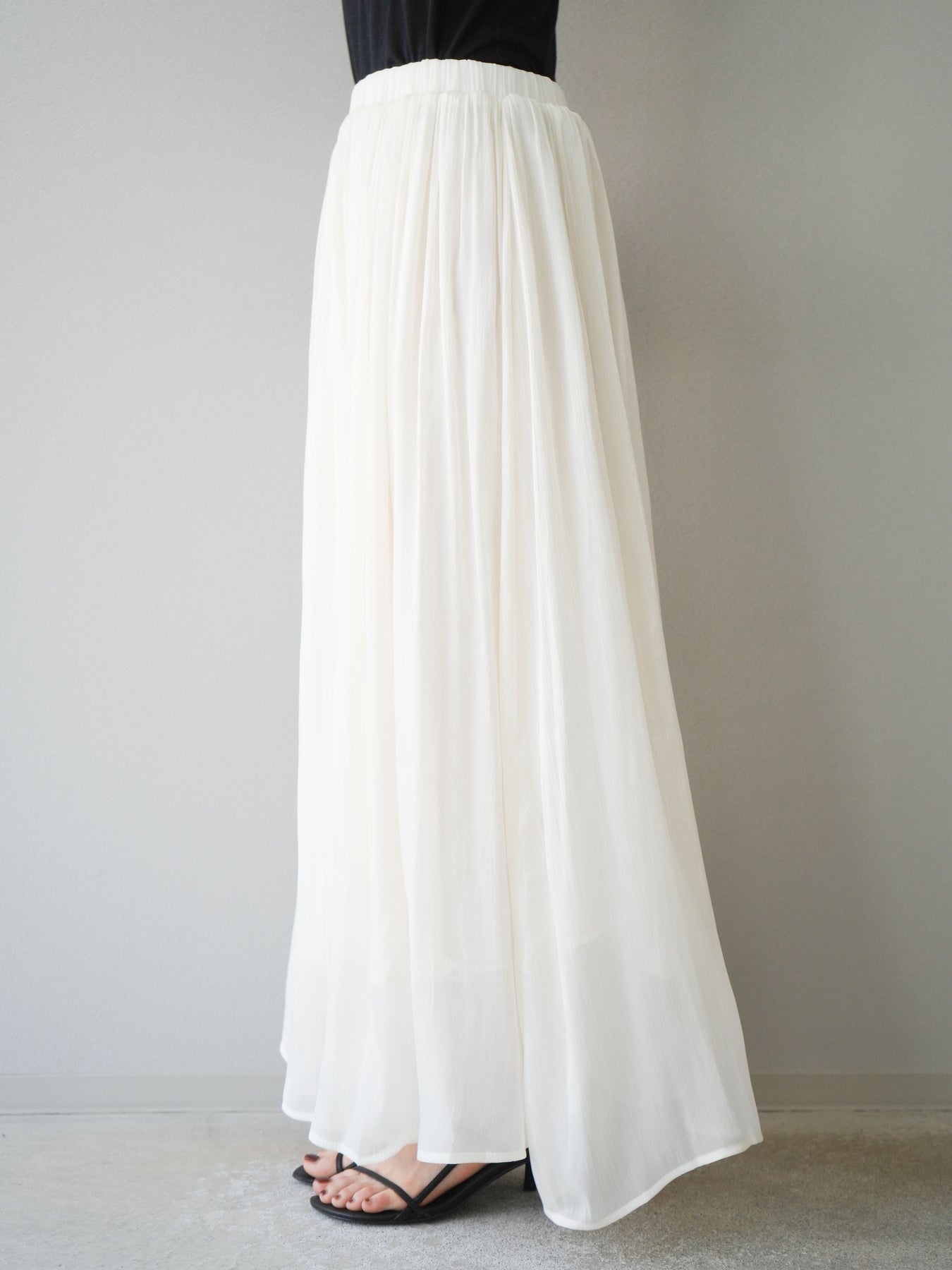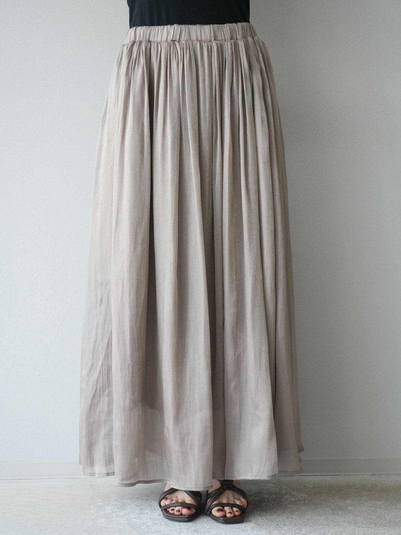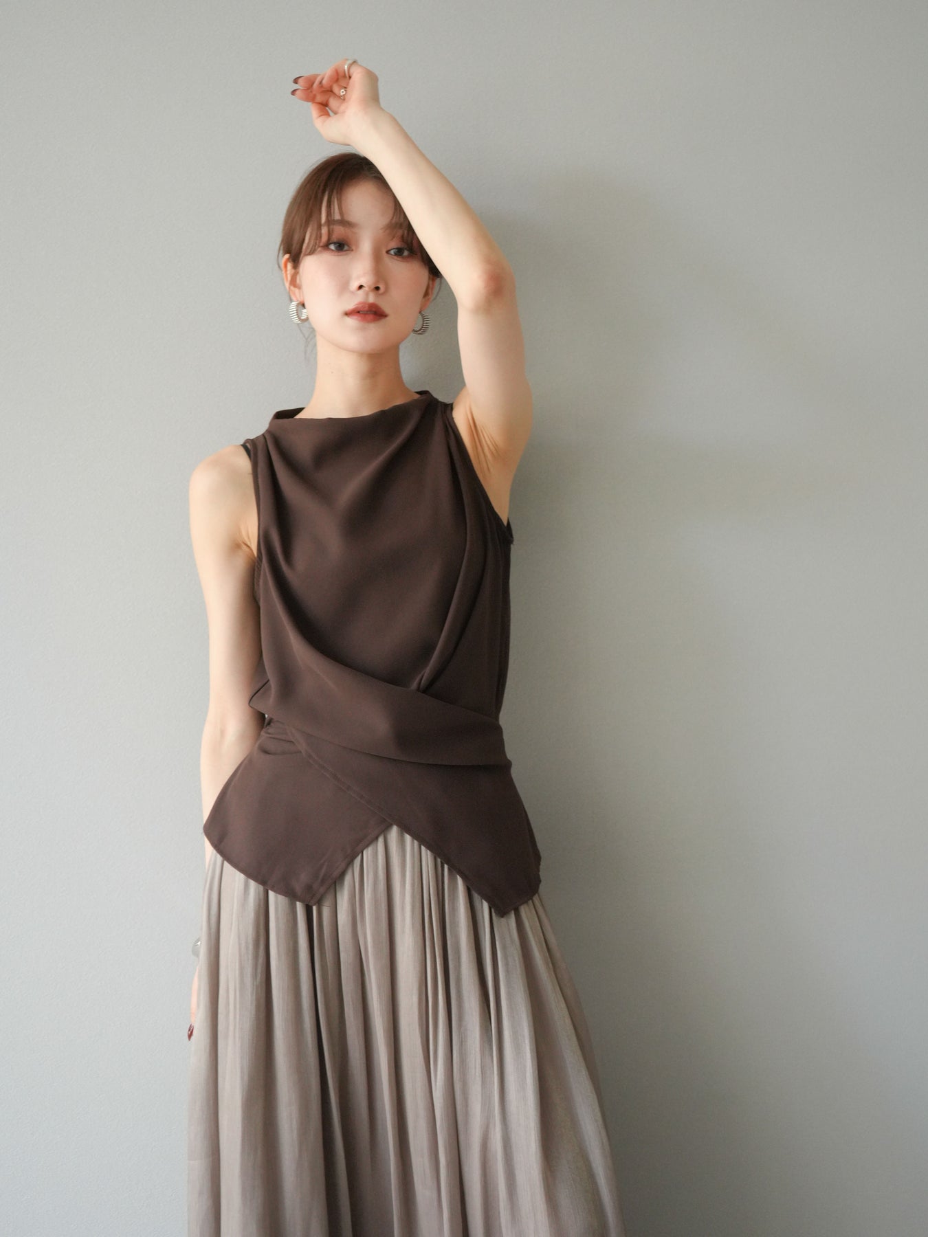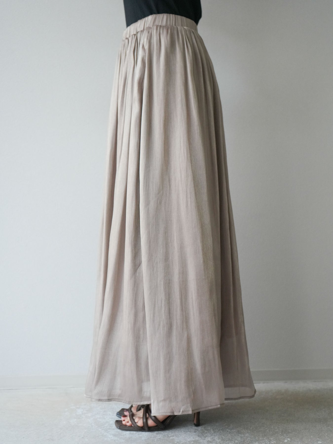 柔らかく上品な光沢感が魅力のシャイニーフレアスカートと、ウエストラインを美しく見せるカッティングのノースリーブトップスをセットにしたコーデセット。 トップスは程よく体にフィットしながらもタックデザインが立体感をプラスし、単品使いでも着映える1枚に。 スカートはふわりと揺れるエアリーな素材感で、シンプルながらもドラマティックな印象を演出してくれます。 セットアップとしてはもちろん、それぞれ単品で着回してもスタイリングの幅が広がります。 ※ボトムス、キャミソール(インナー)以外の商品は一律でインナーは付属していません。