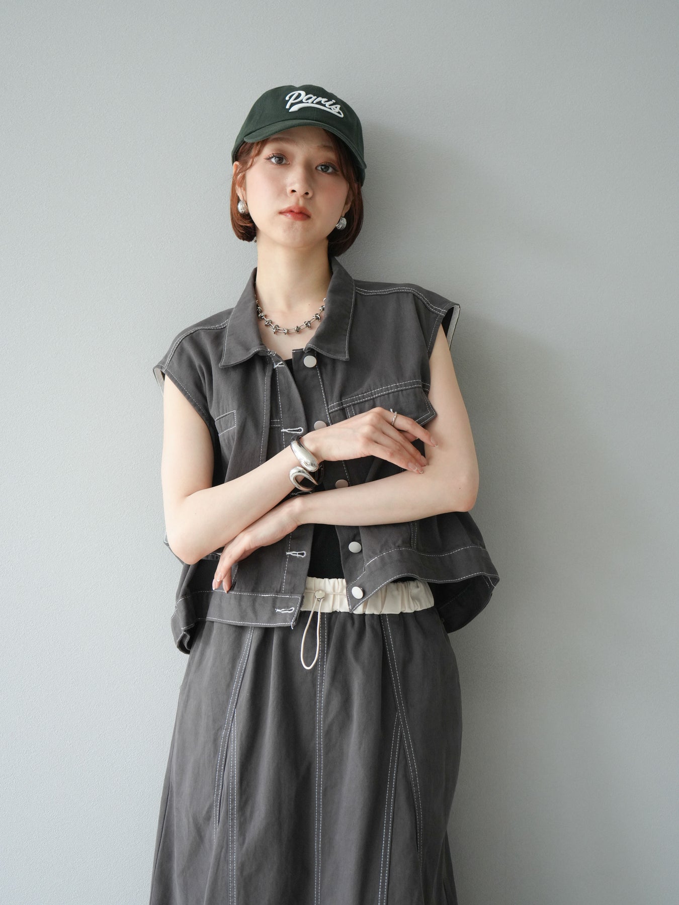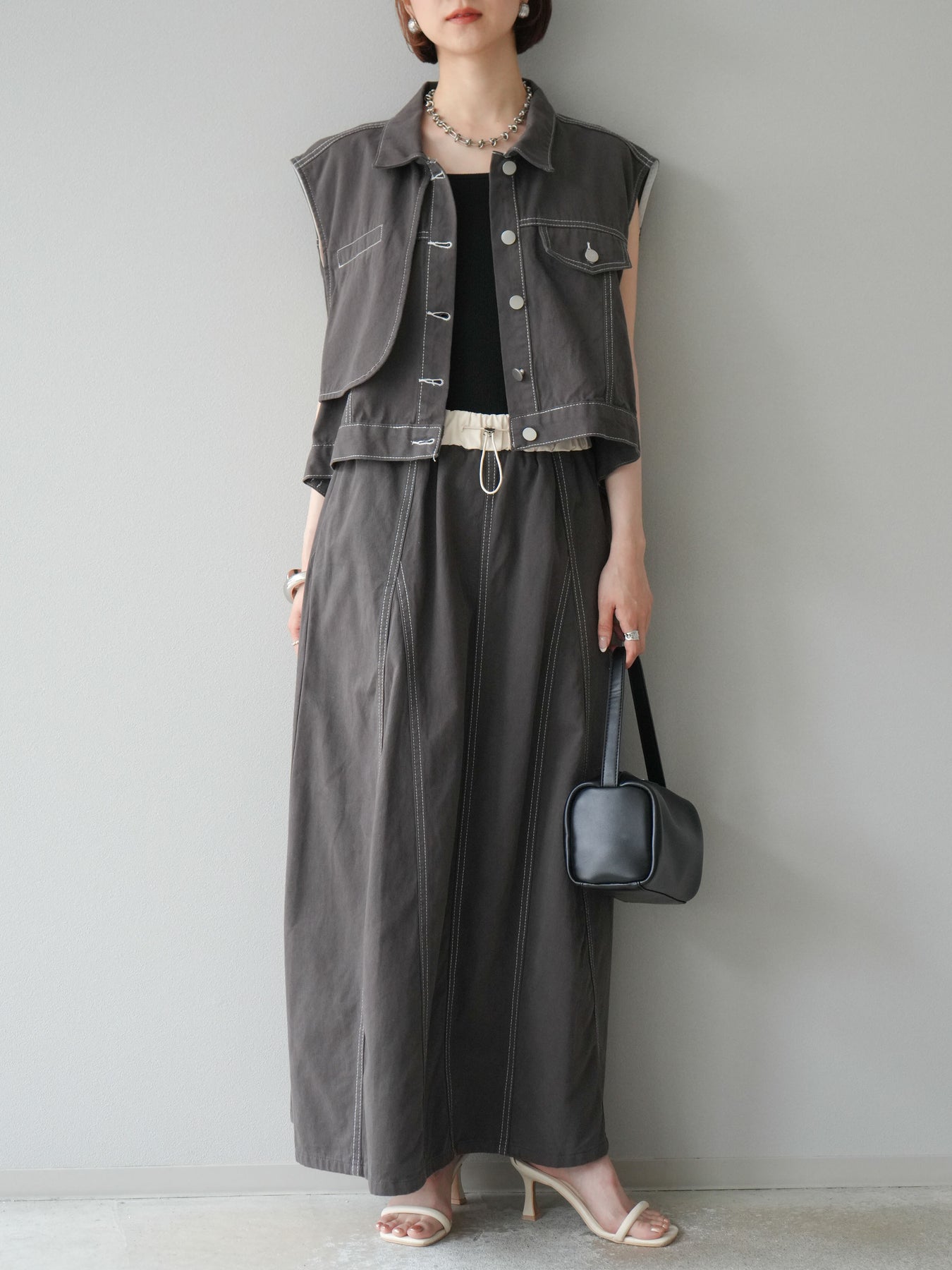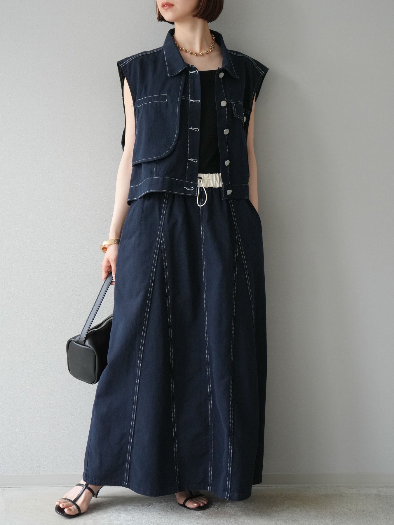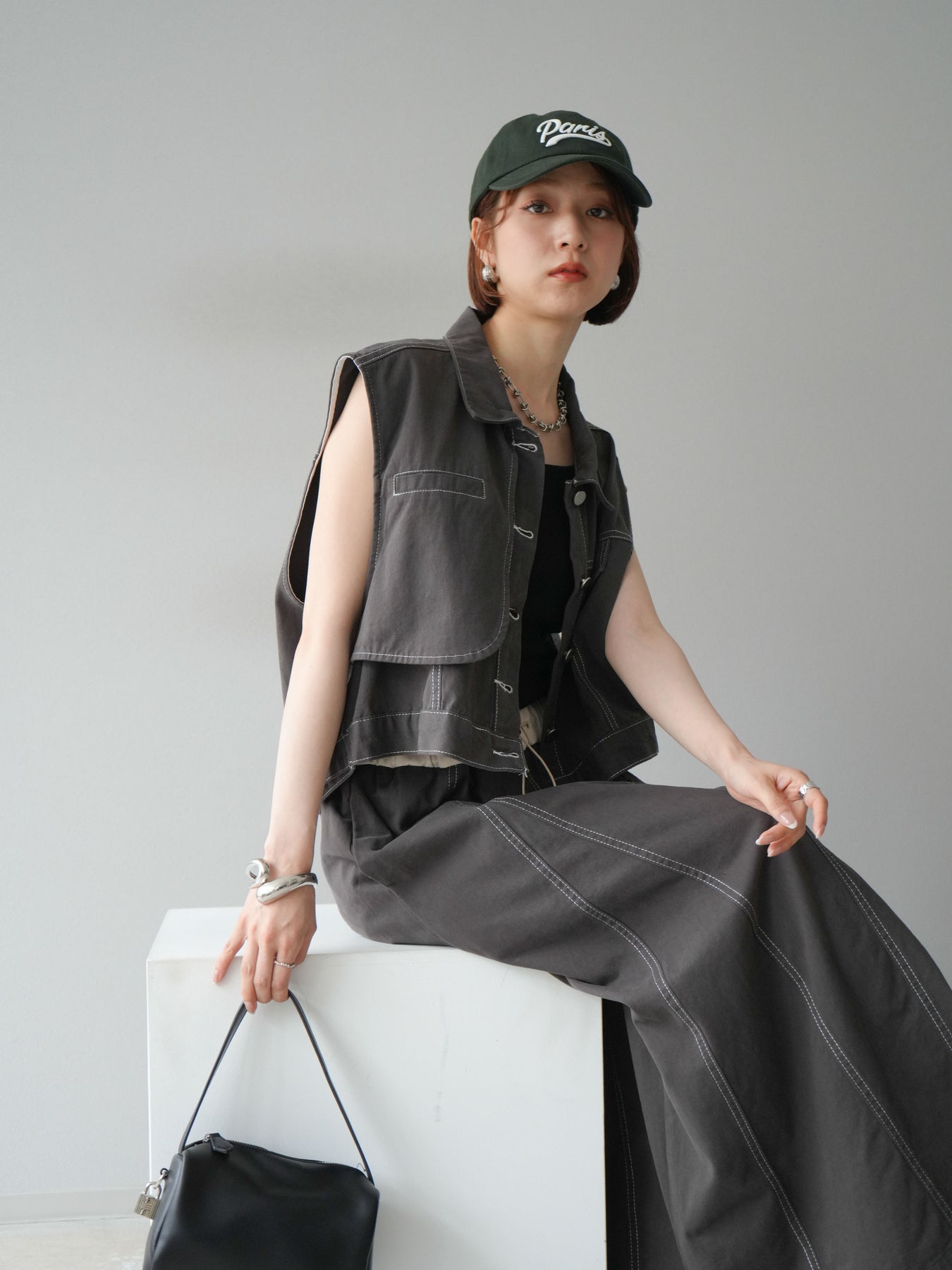 [SET]ステッチコットンツイルベスト&スカートSET UP(2set)