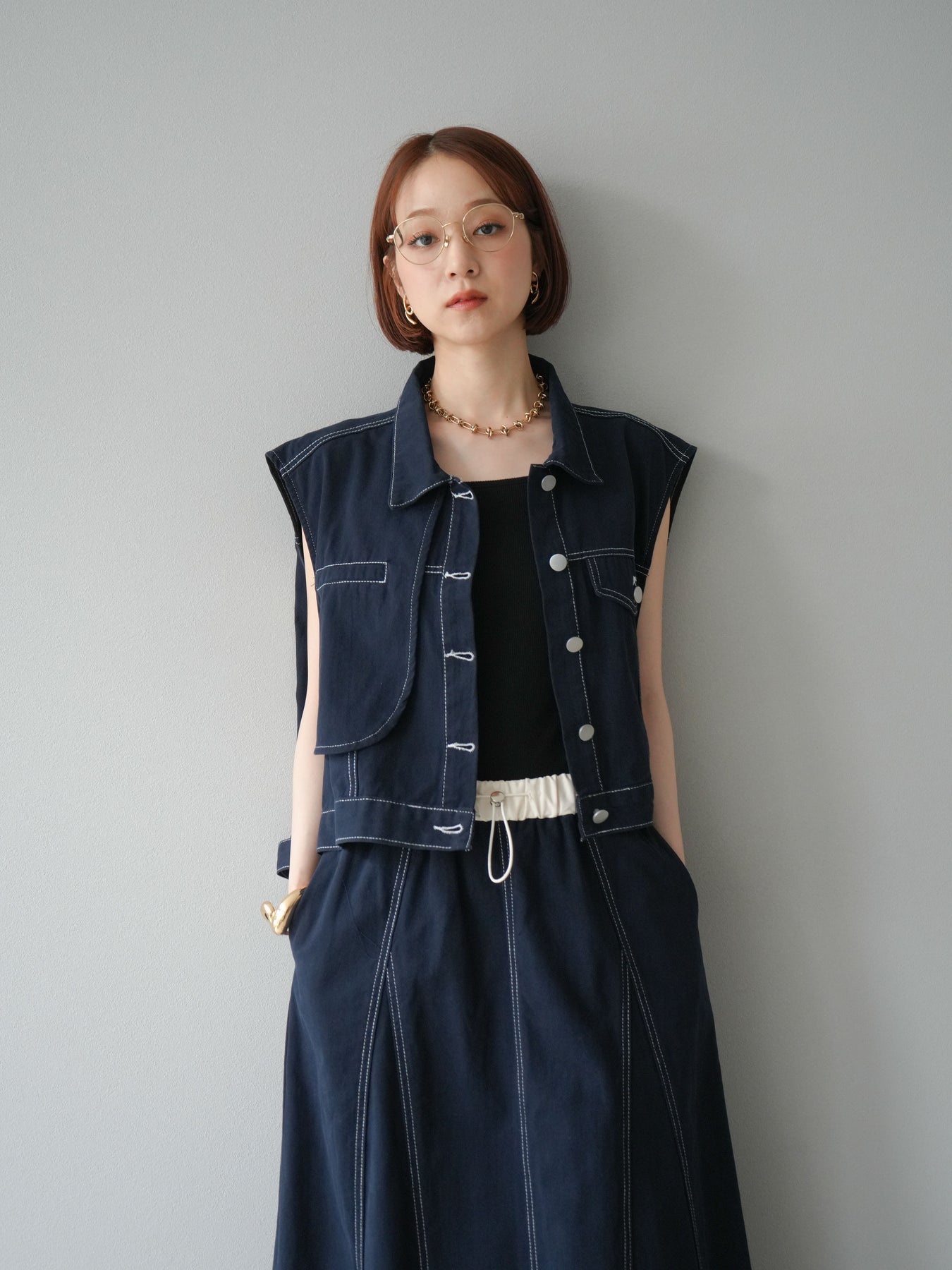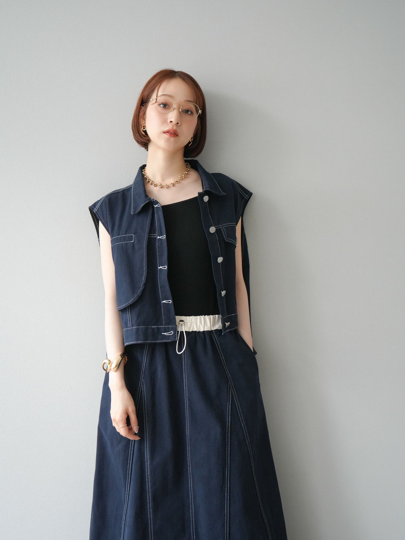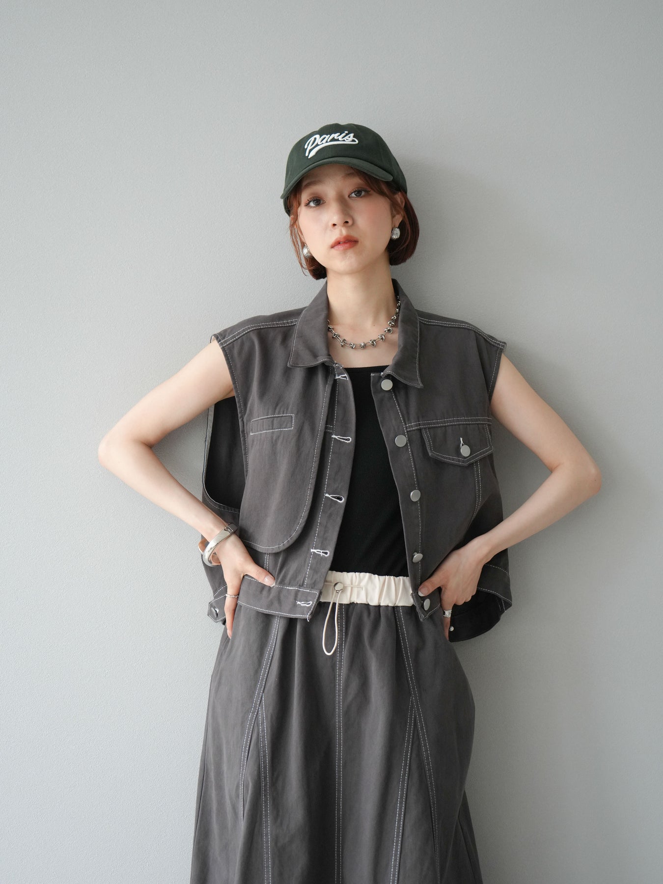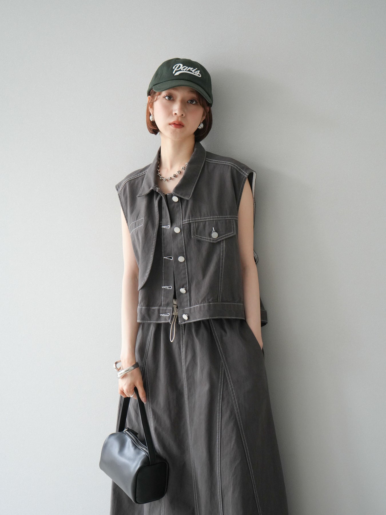 [SET]ステッチコットンツイルベスト&スカートSET UP(2set)