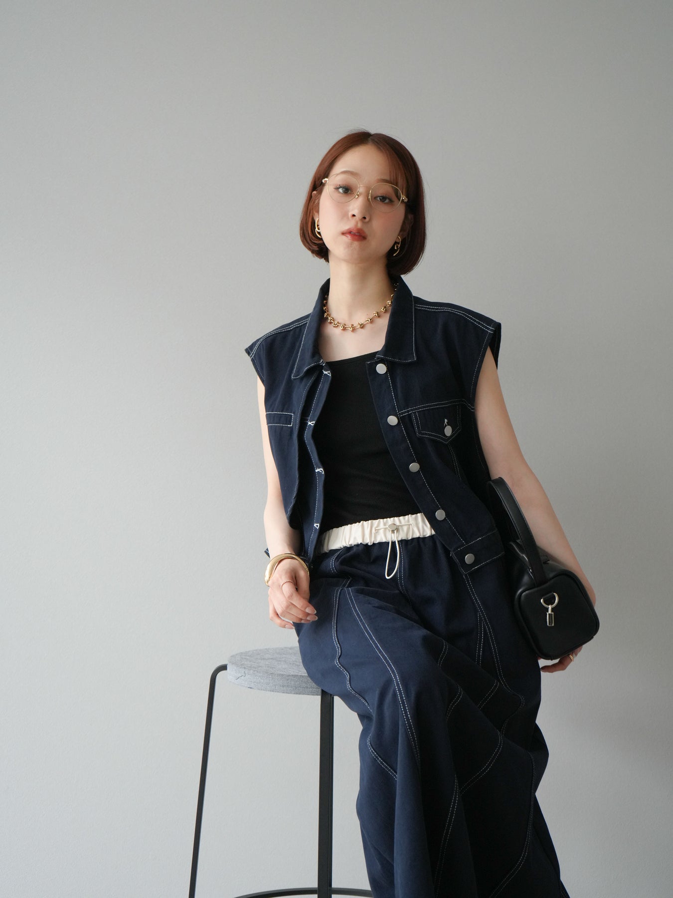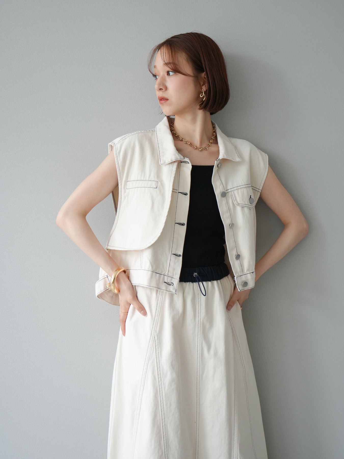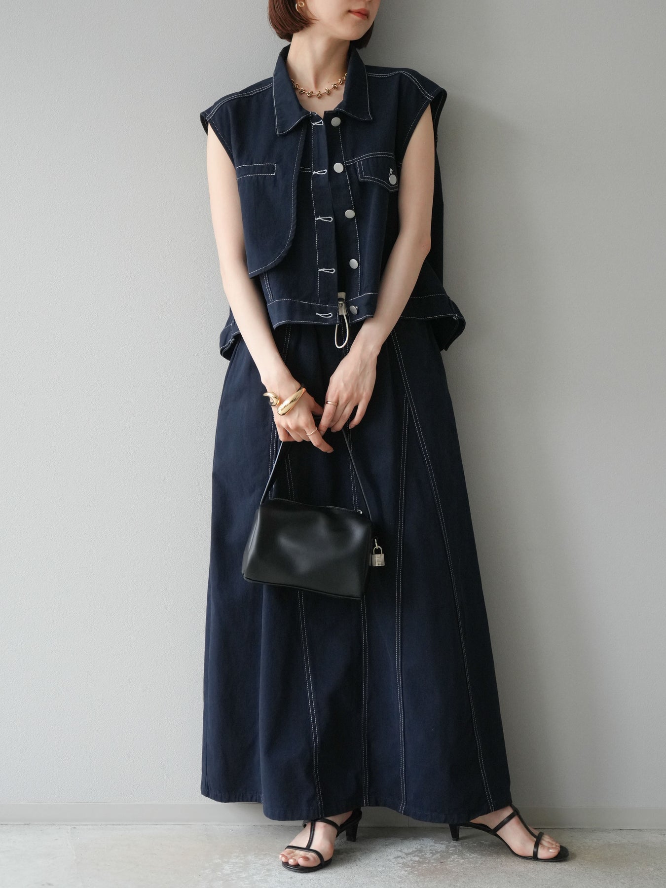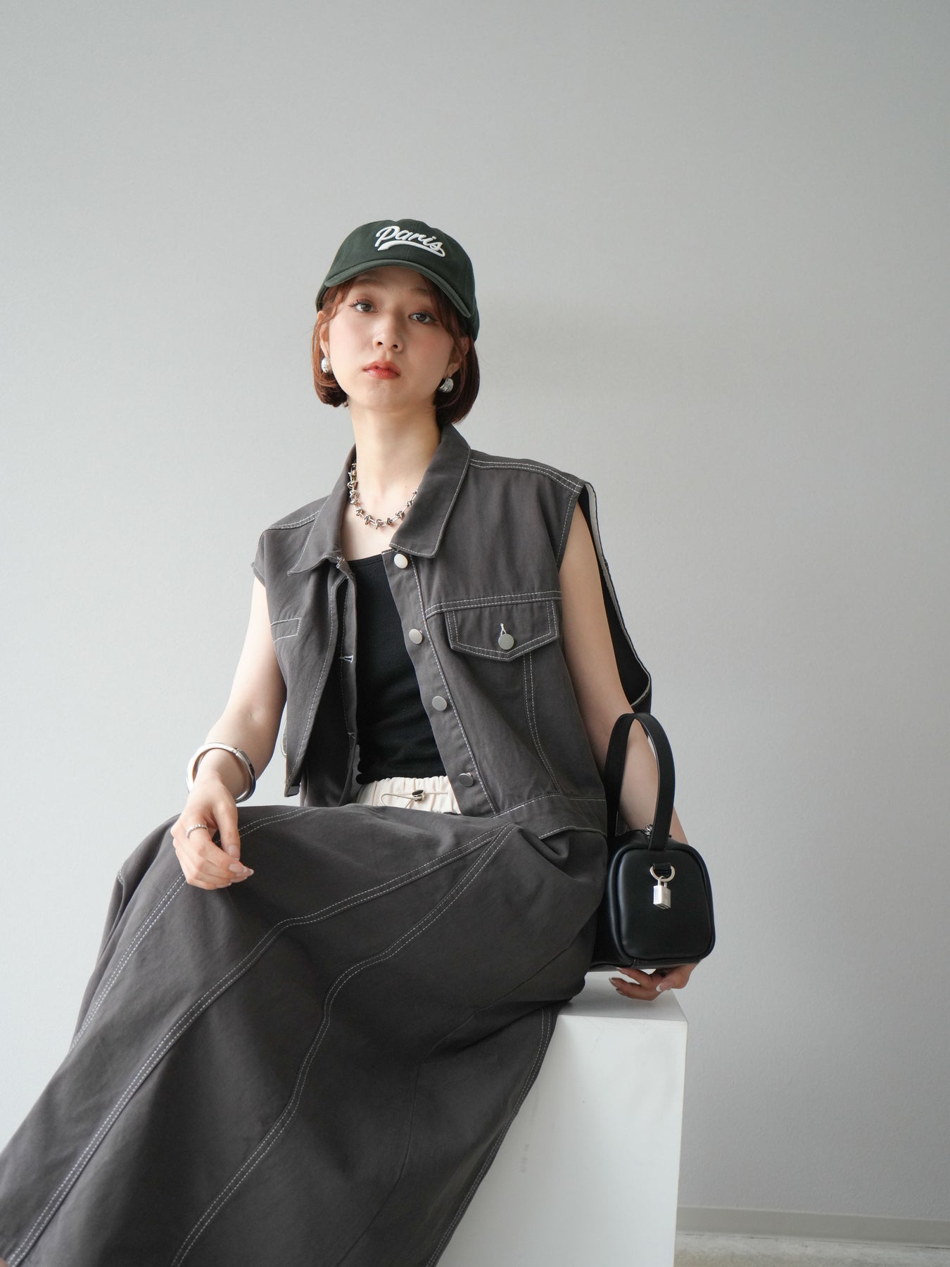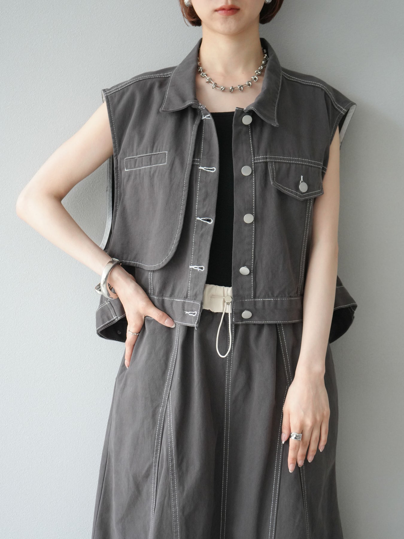 [SET]ステッチコットンツイルベスト&スカートSET UP(2set)