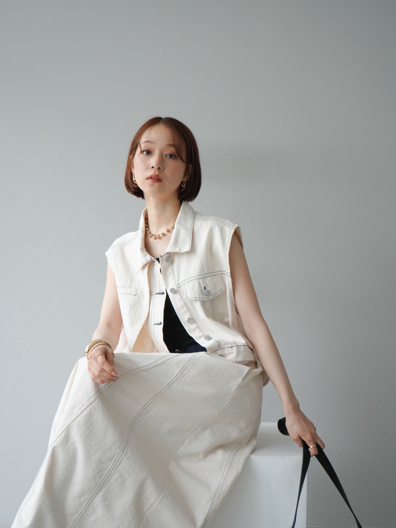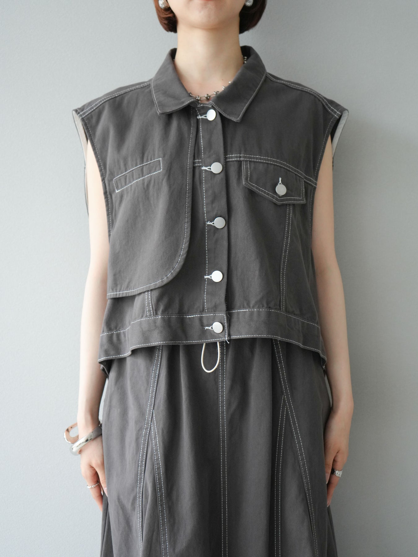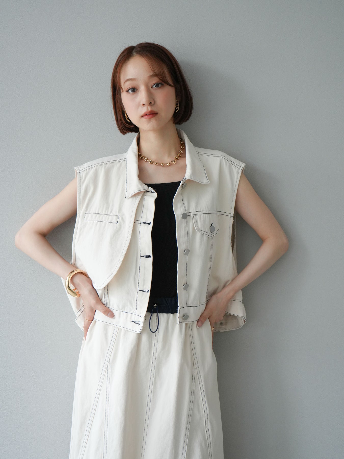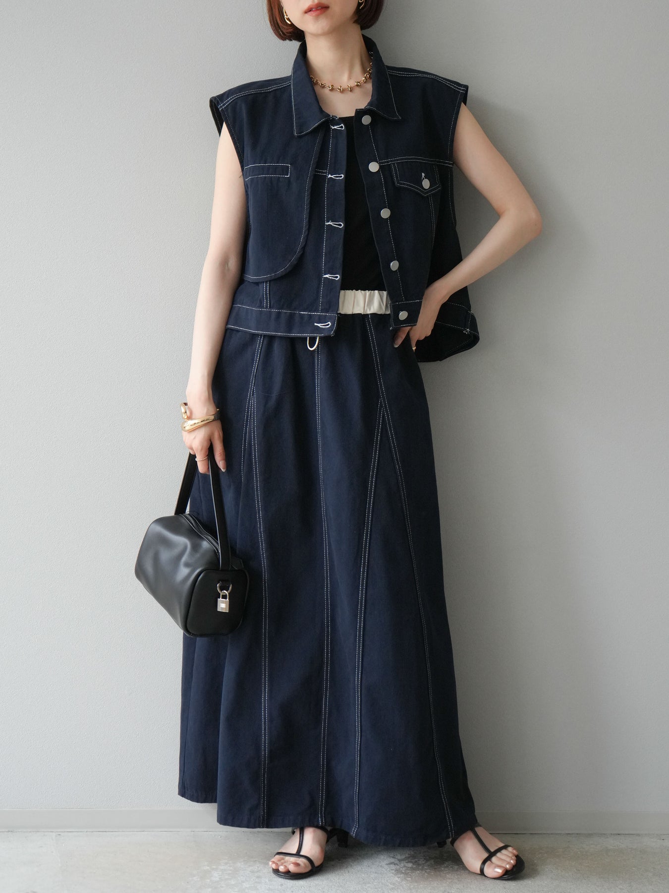 [SET]ステッチコットンツイルベスト&スカートSET UP(2set)
