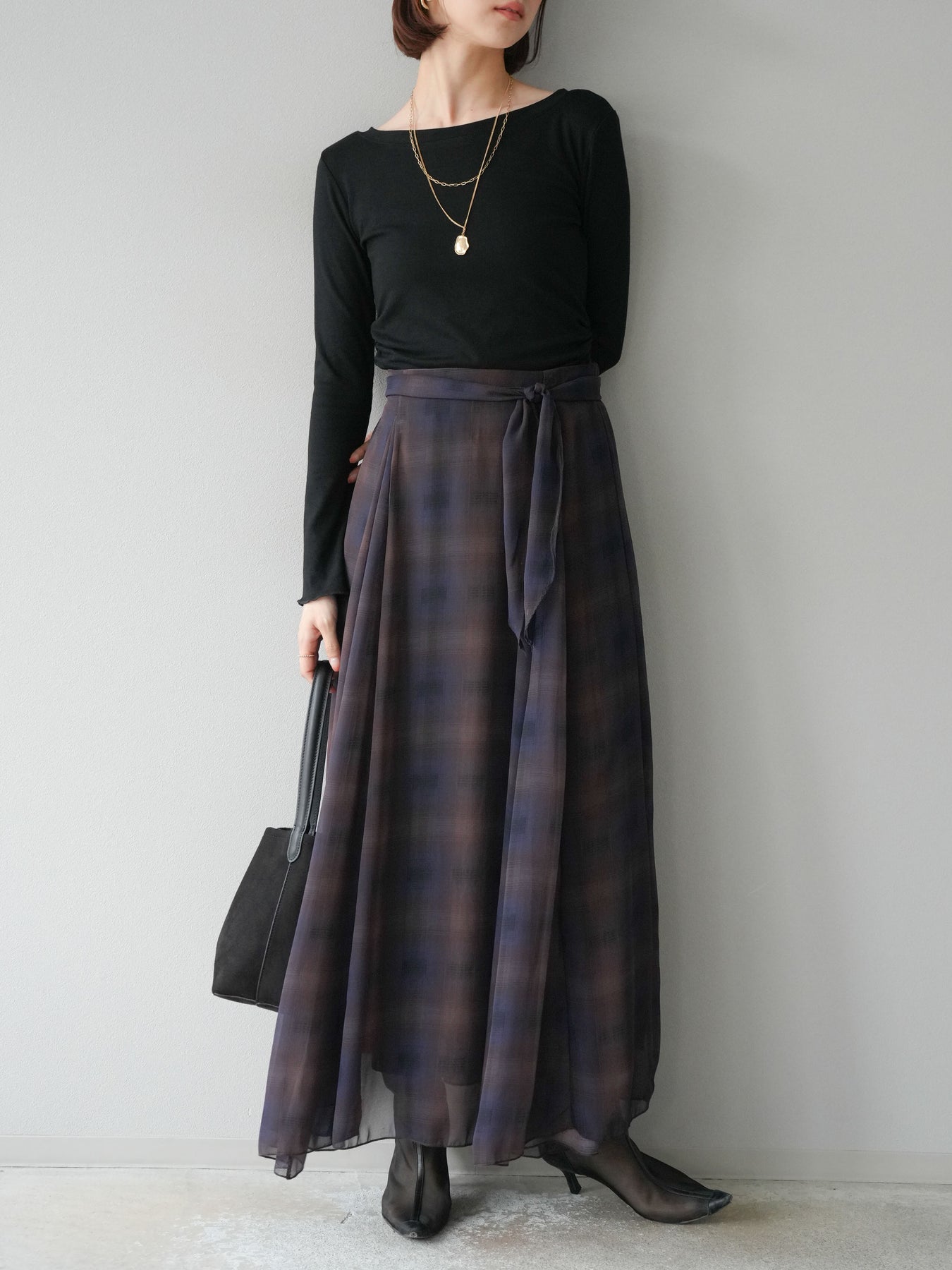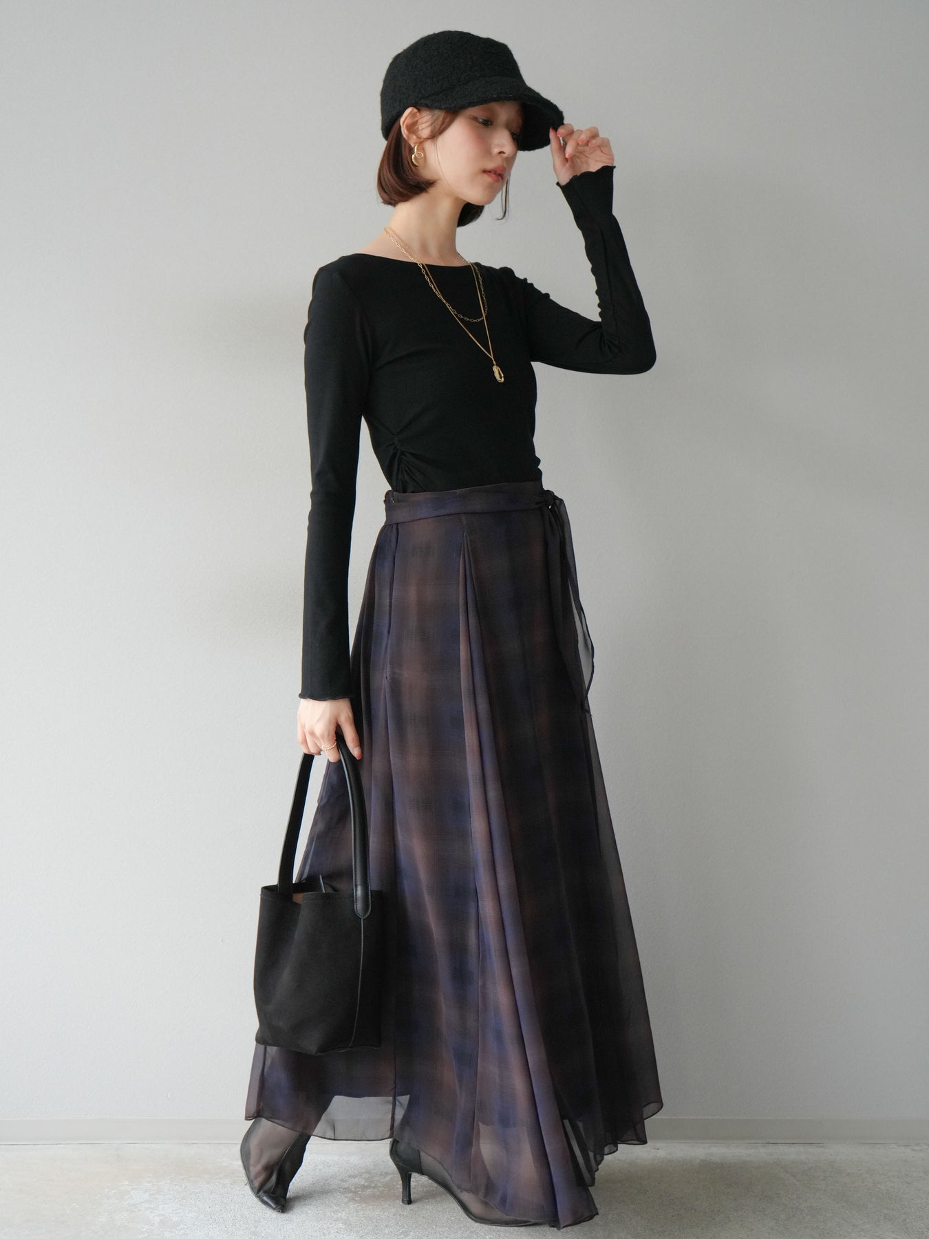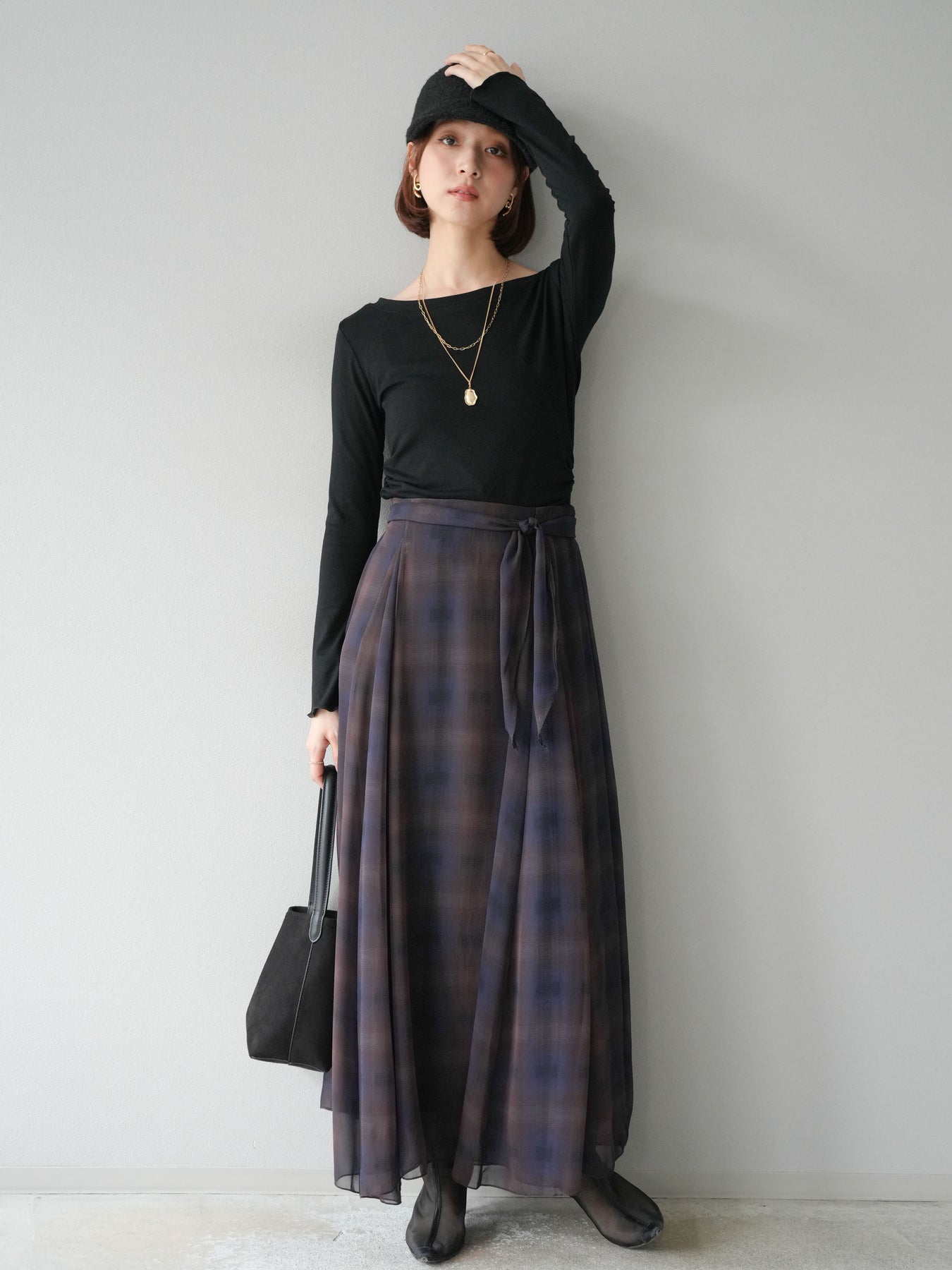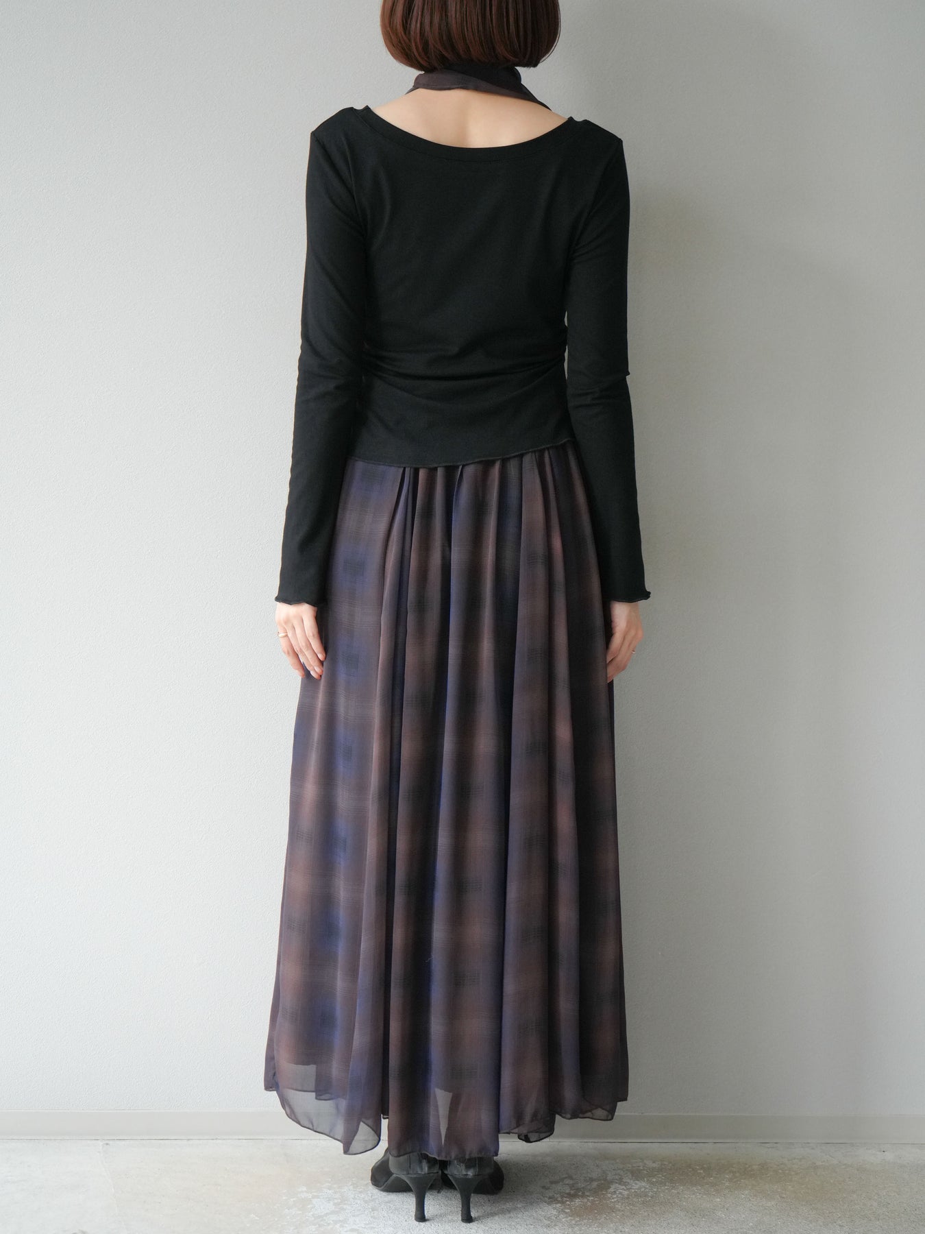 [予約]カットソー付シアーチェックフレアタックスカート/ブラック
