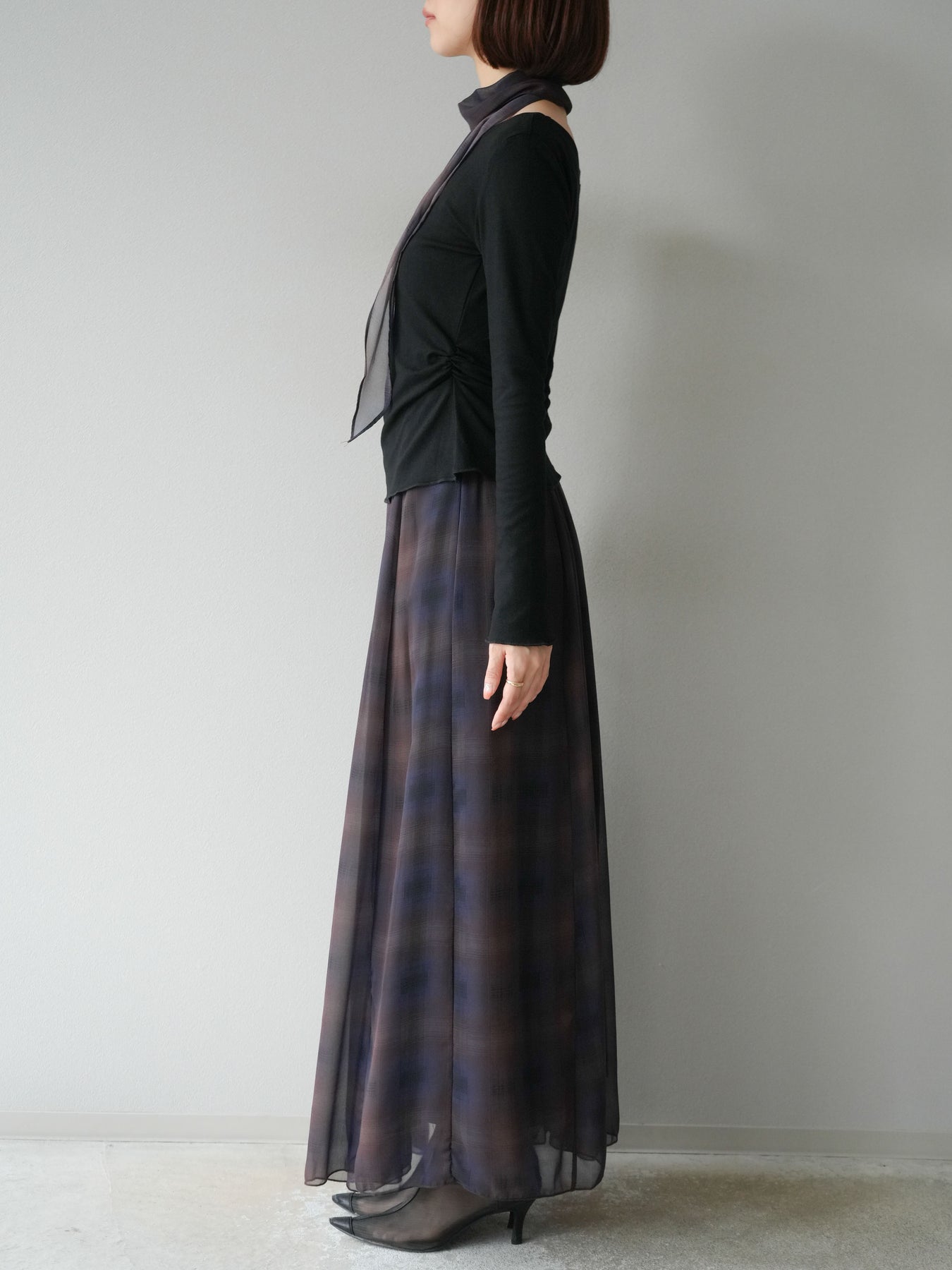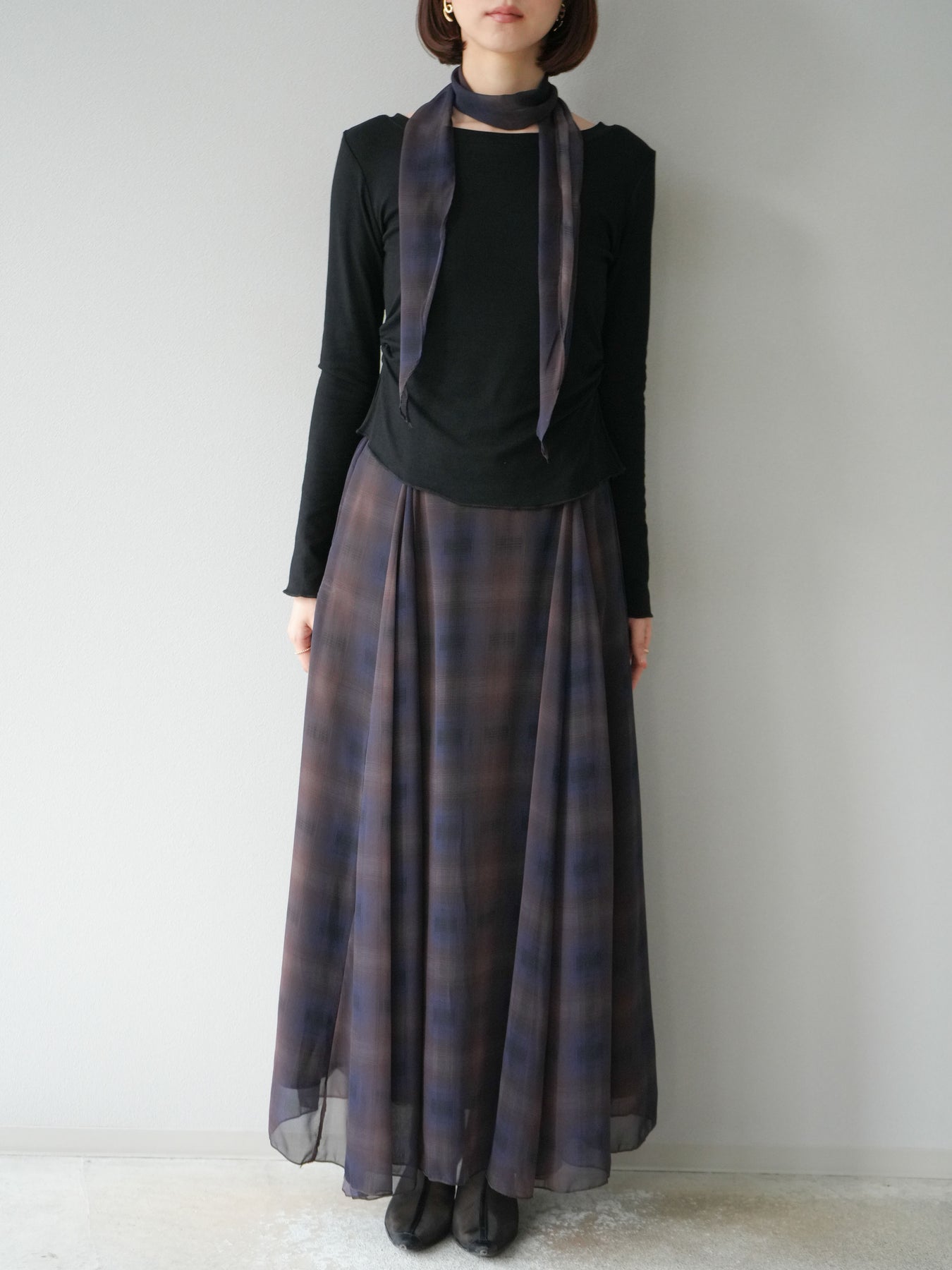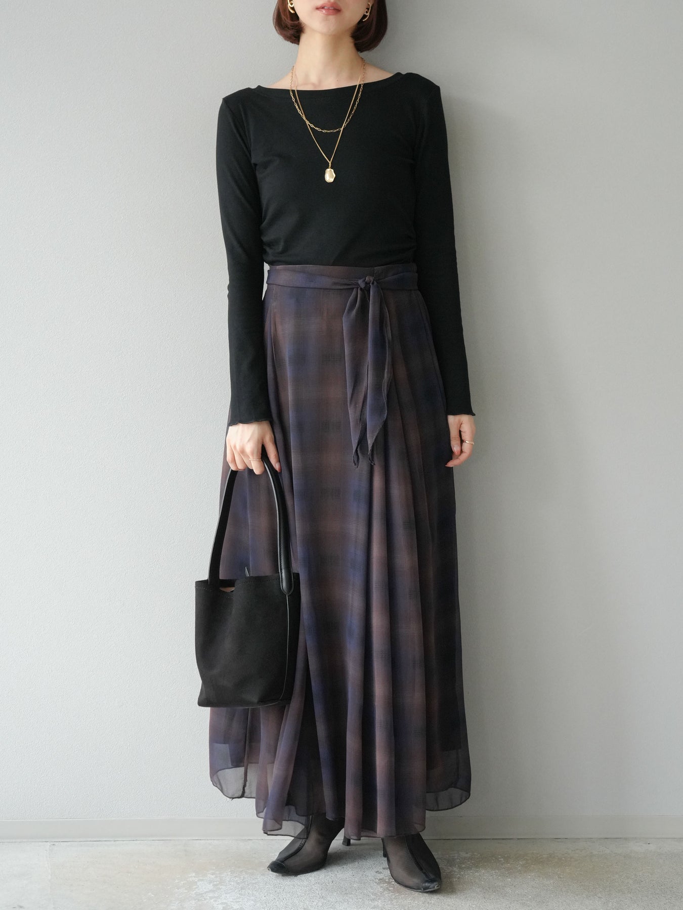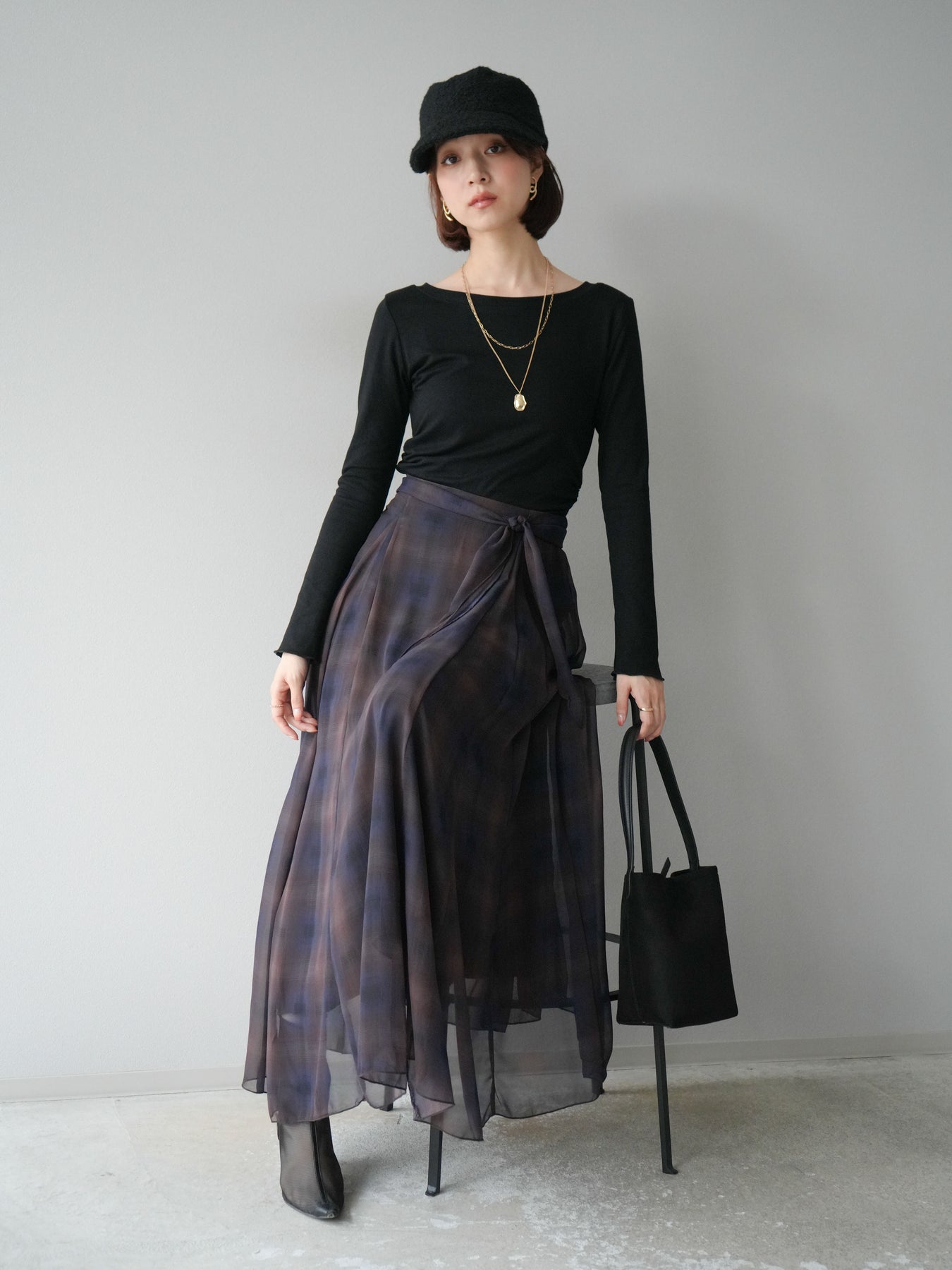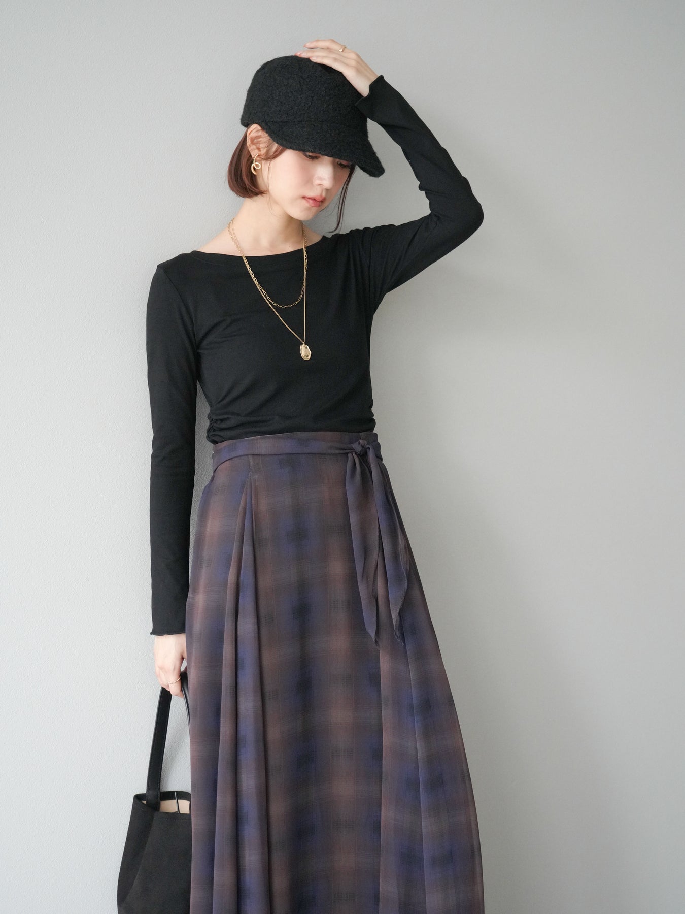 [予約]カットソー付シアーチェックフレアタックスカート/ブラック
