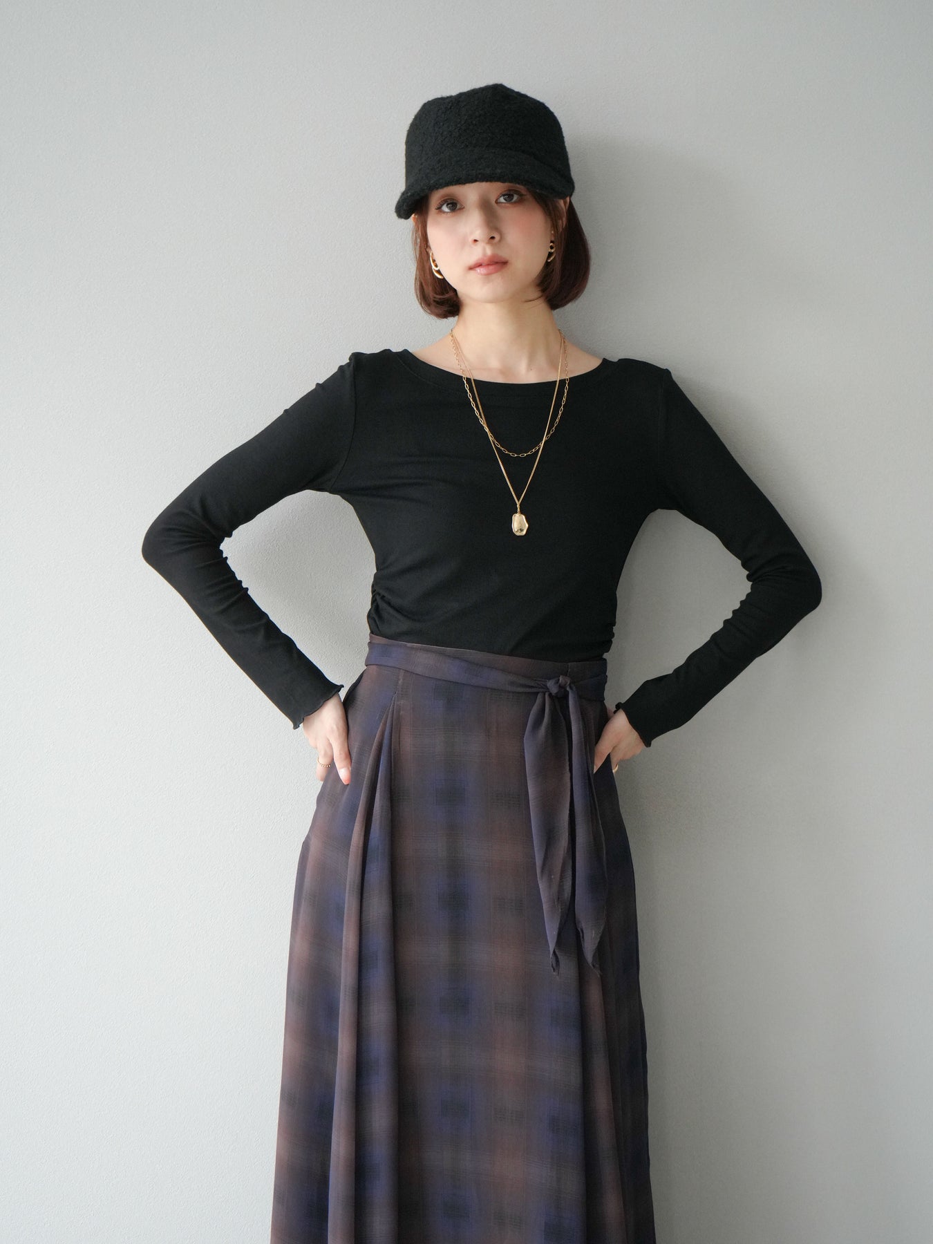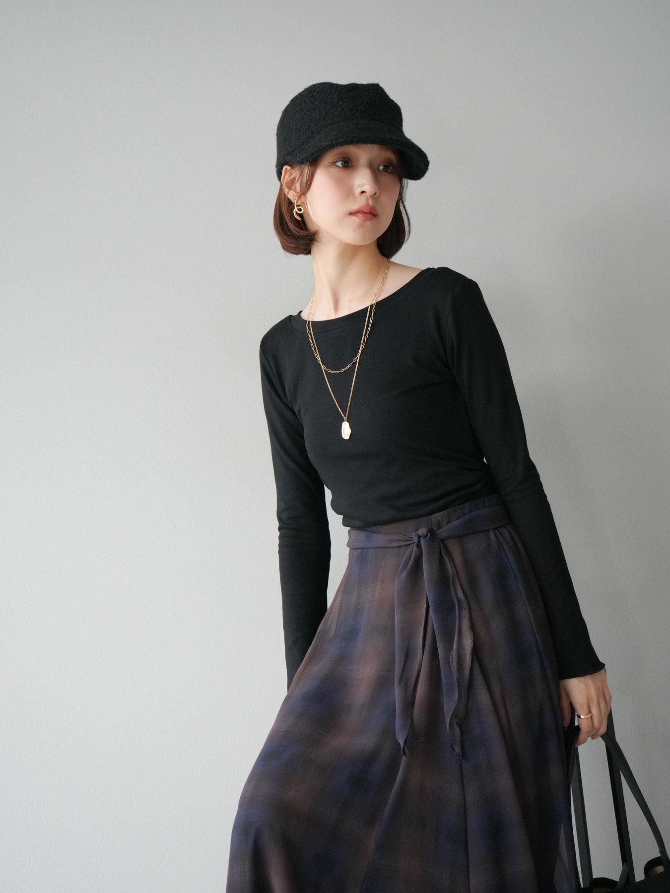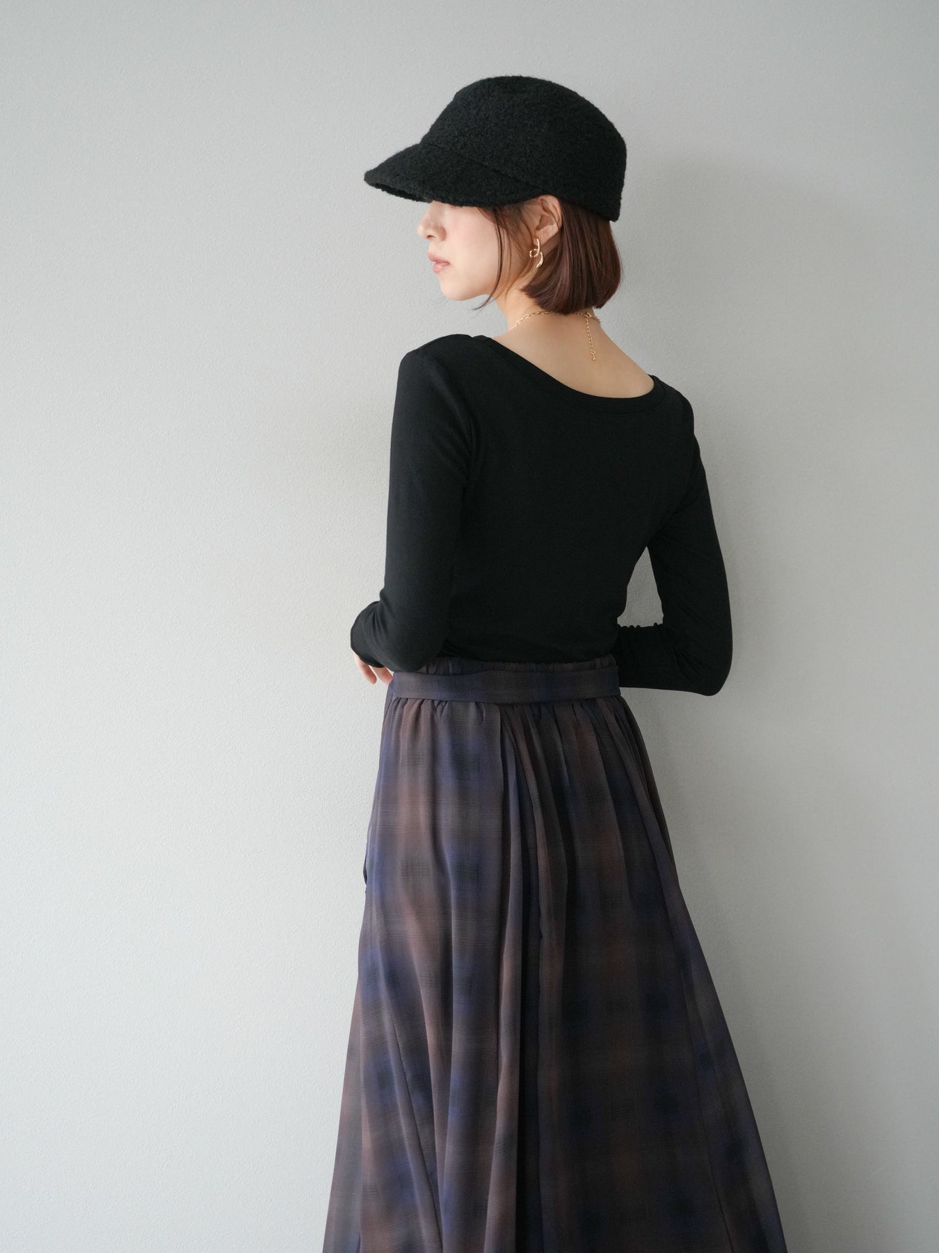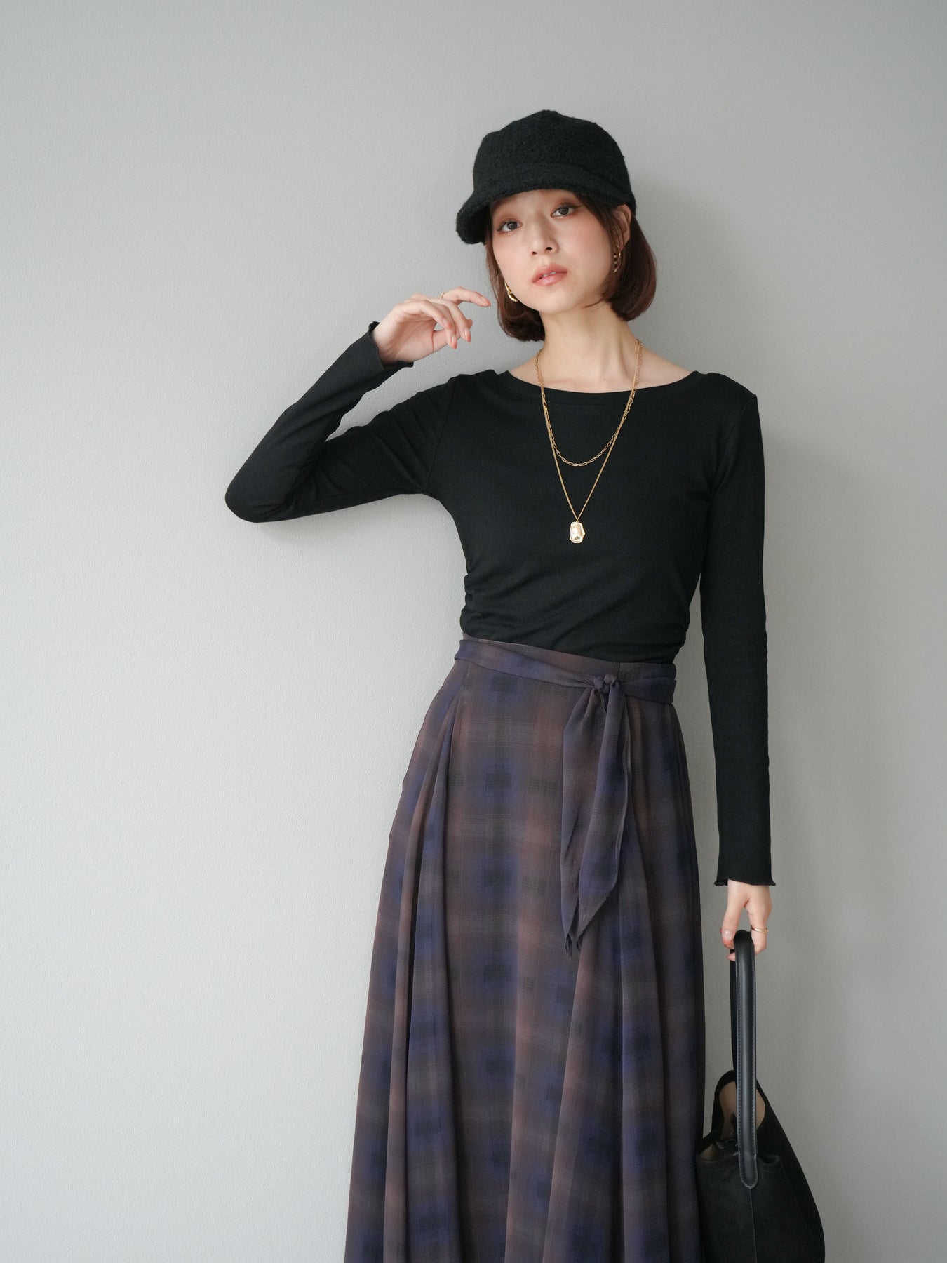 [予約]カットソー付シアーチェックフレアタックスカート/ブラック