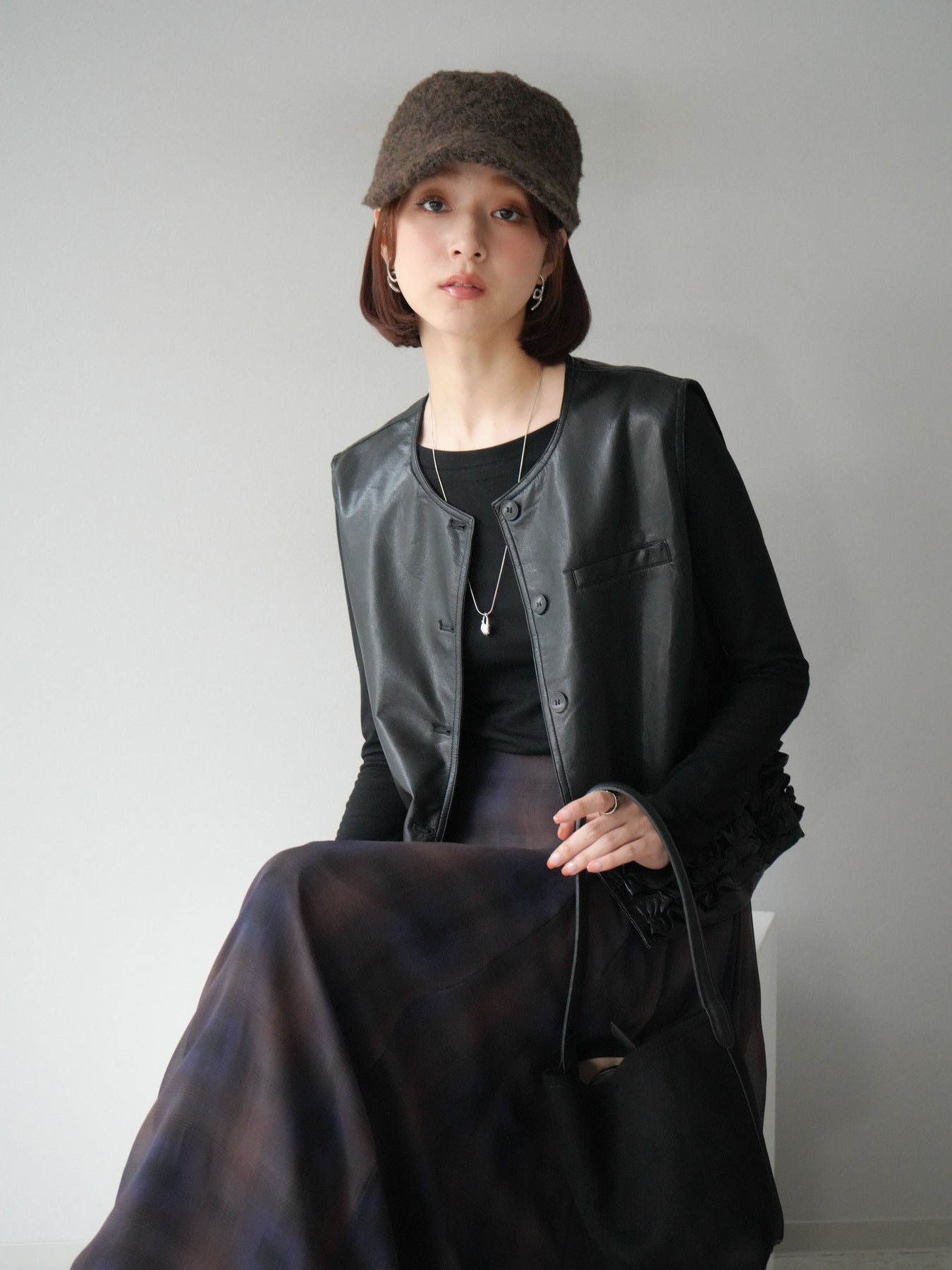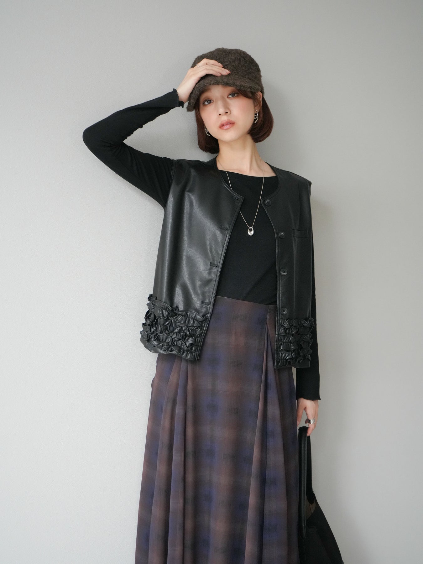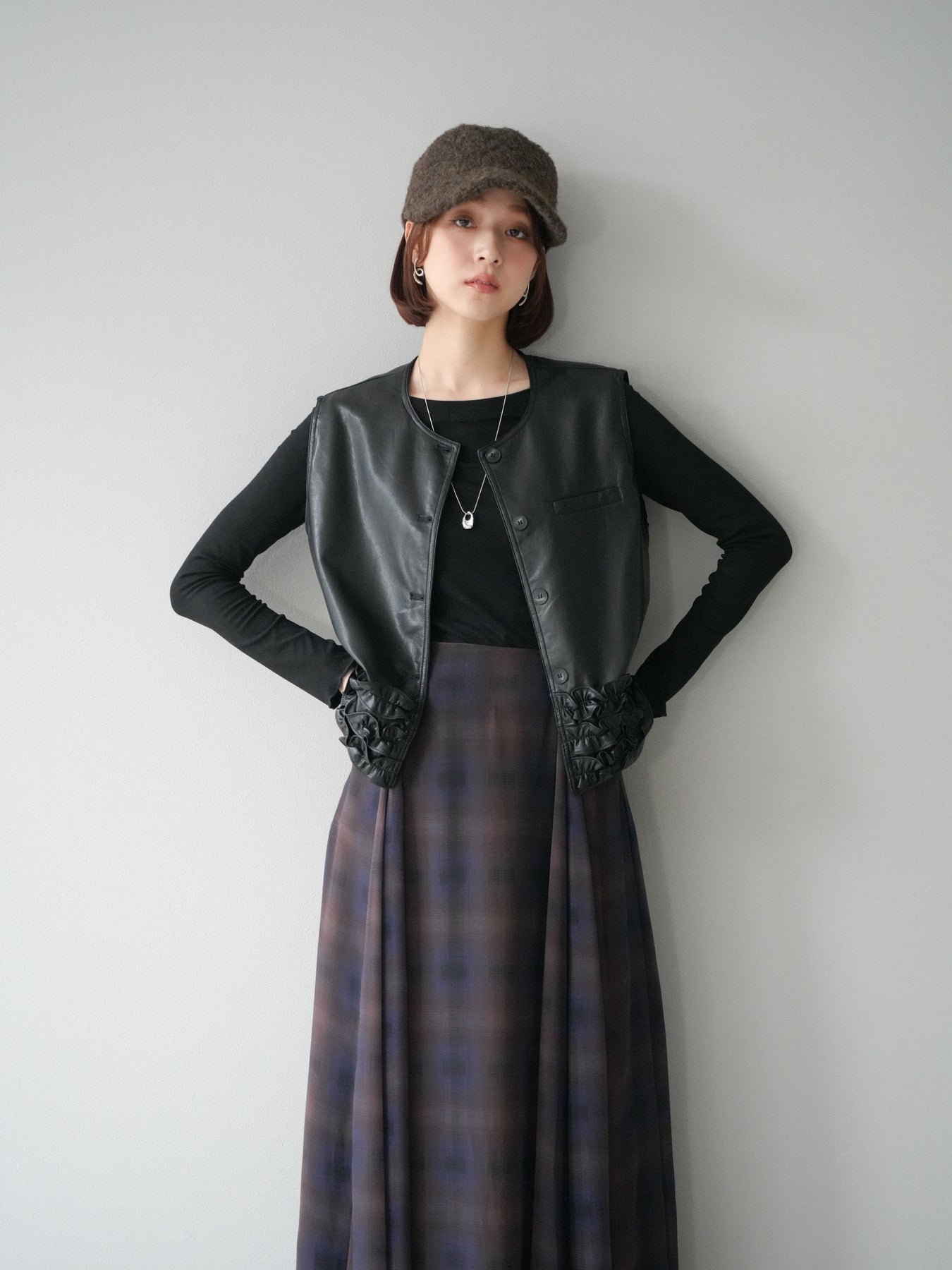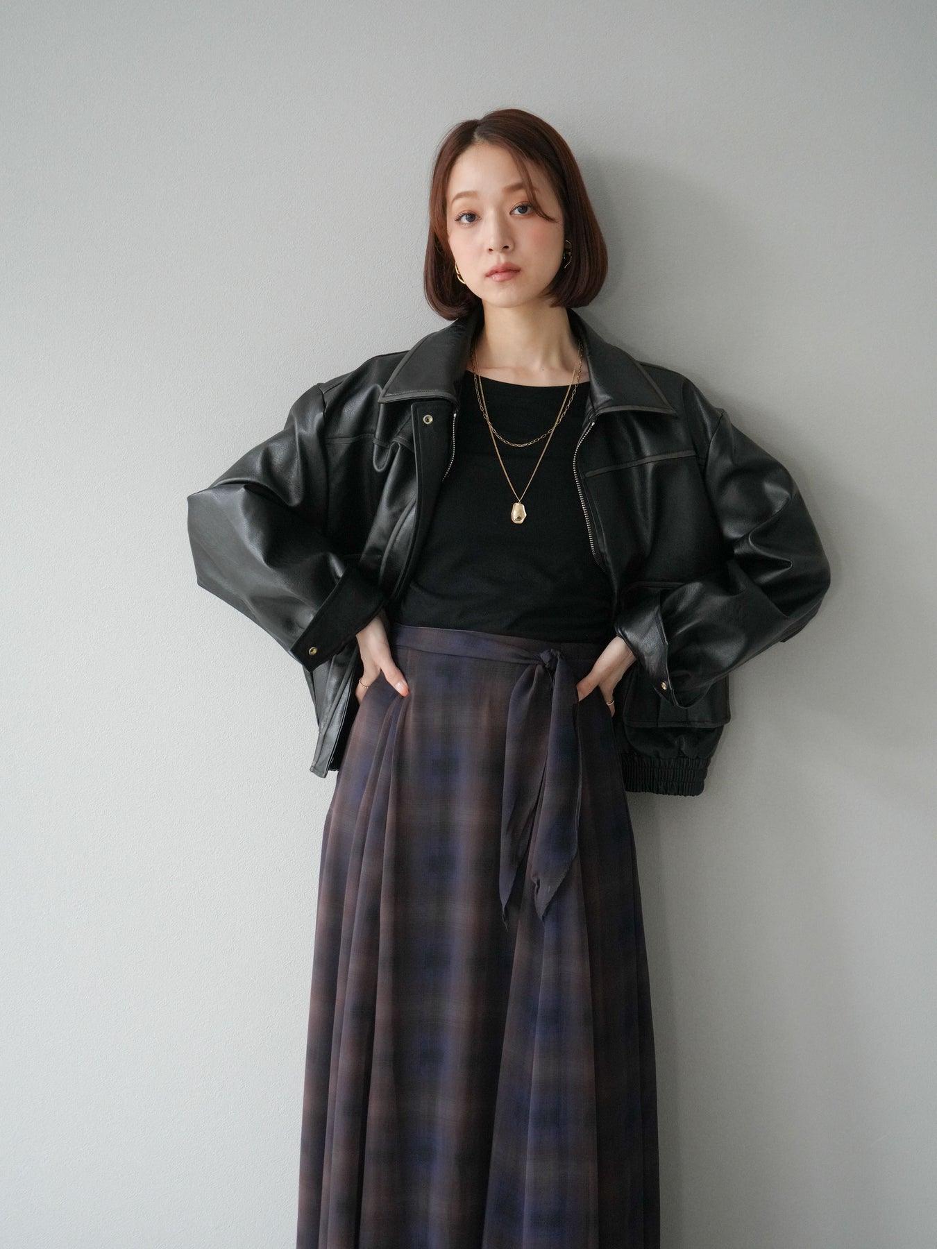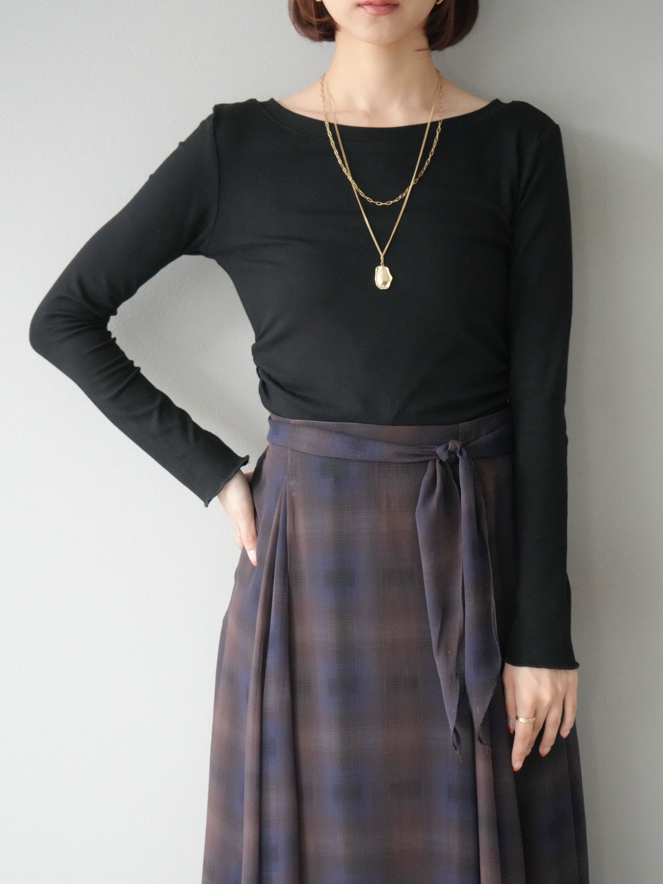 [予約]カットソー付シアーチェックフレアタックスカート/ブラック