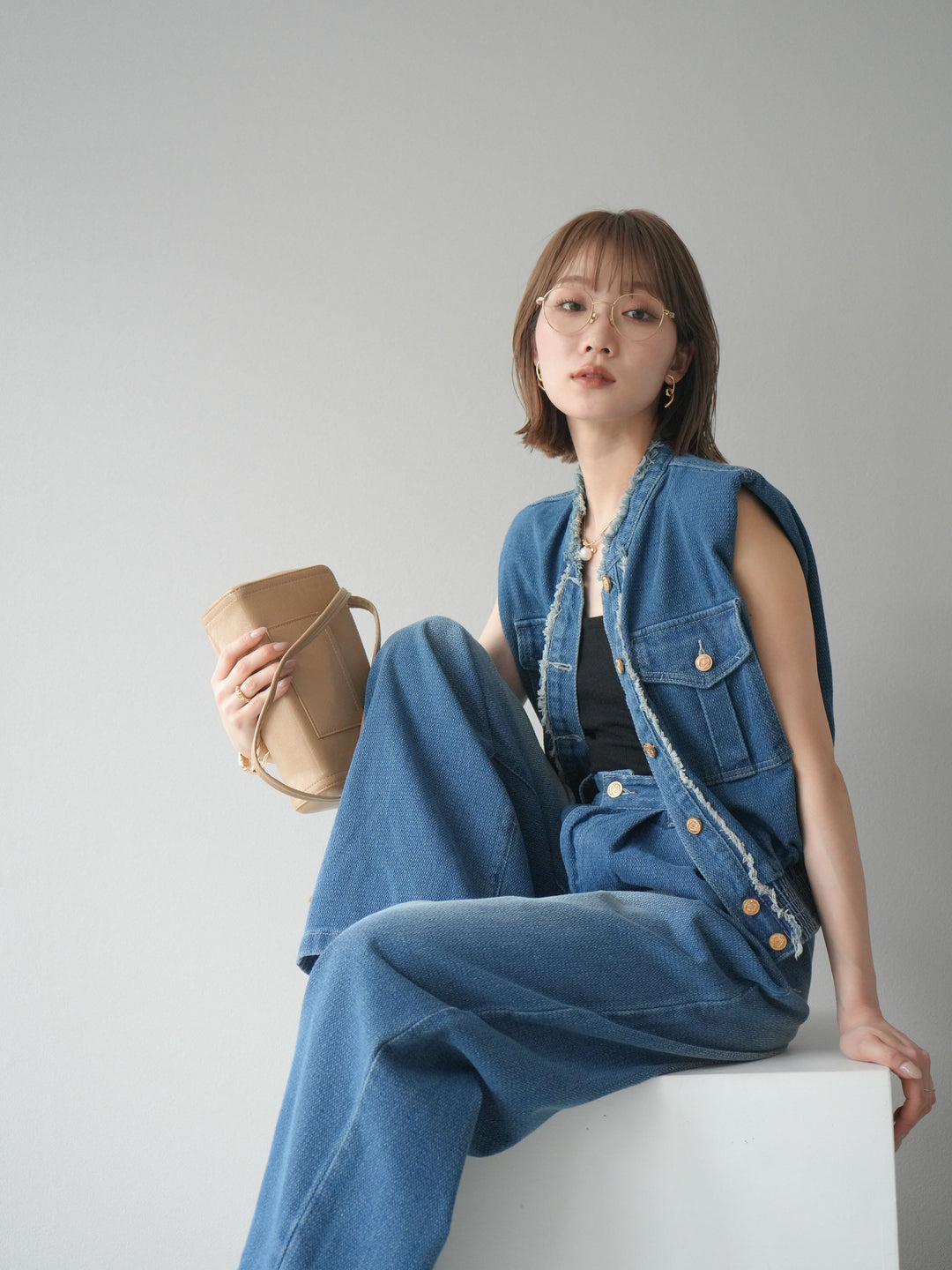 [SET]フリンジデニムベスト&パンツSET UP/ブルー(2set)