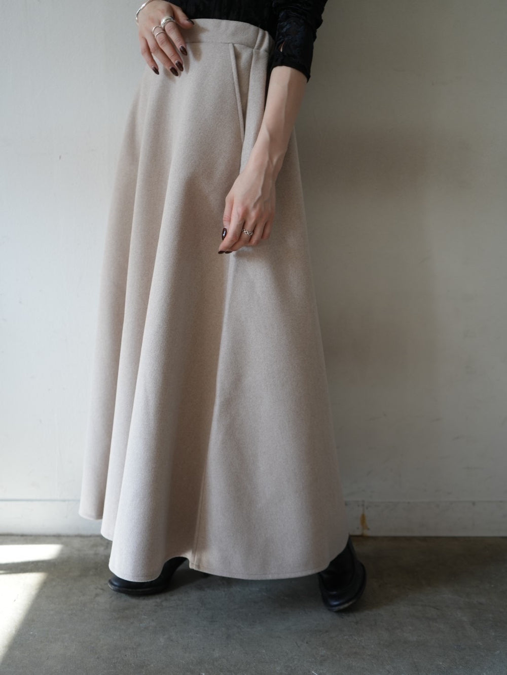 [予約]ギャザーベロアスカート/black