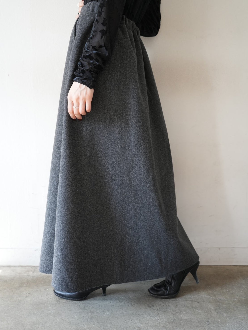 [予約]ベロアティアードワッシャースカート/charcoal