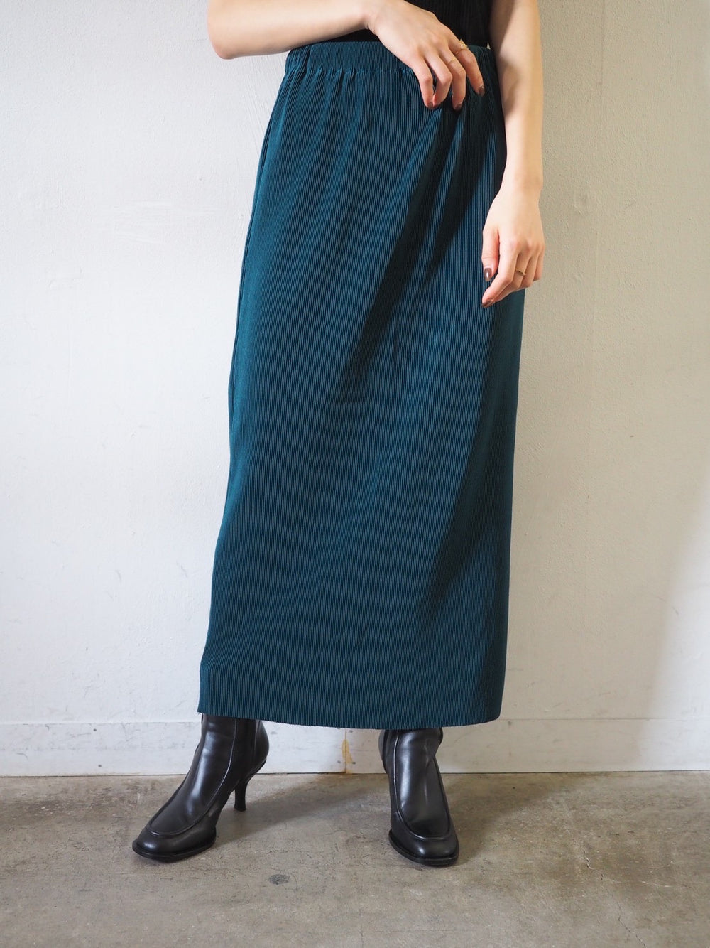 [予約]ワッシャーベロアプリーツスカート/black
