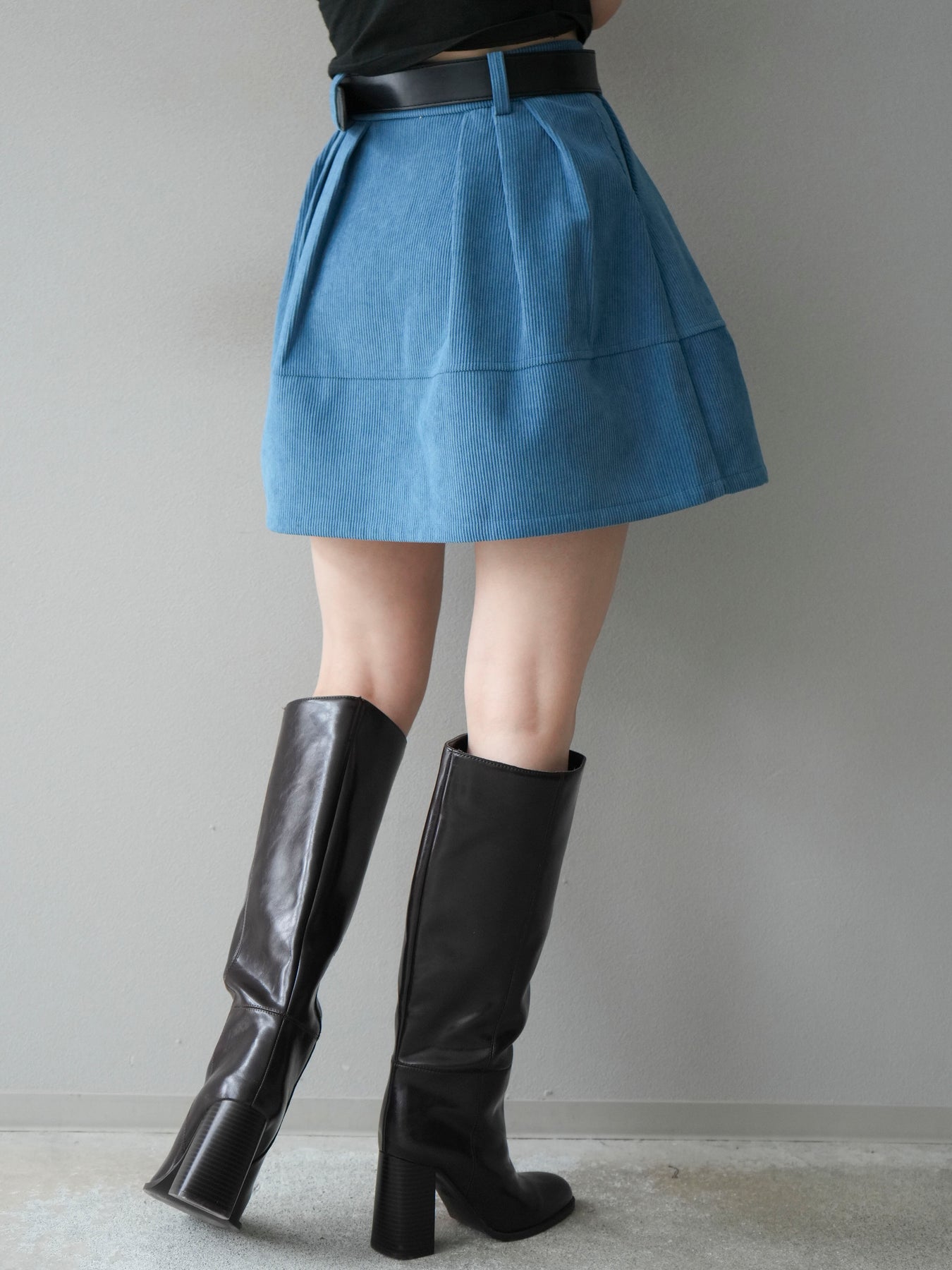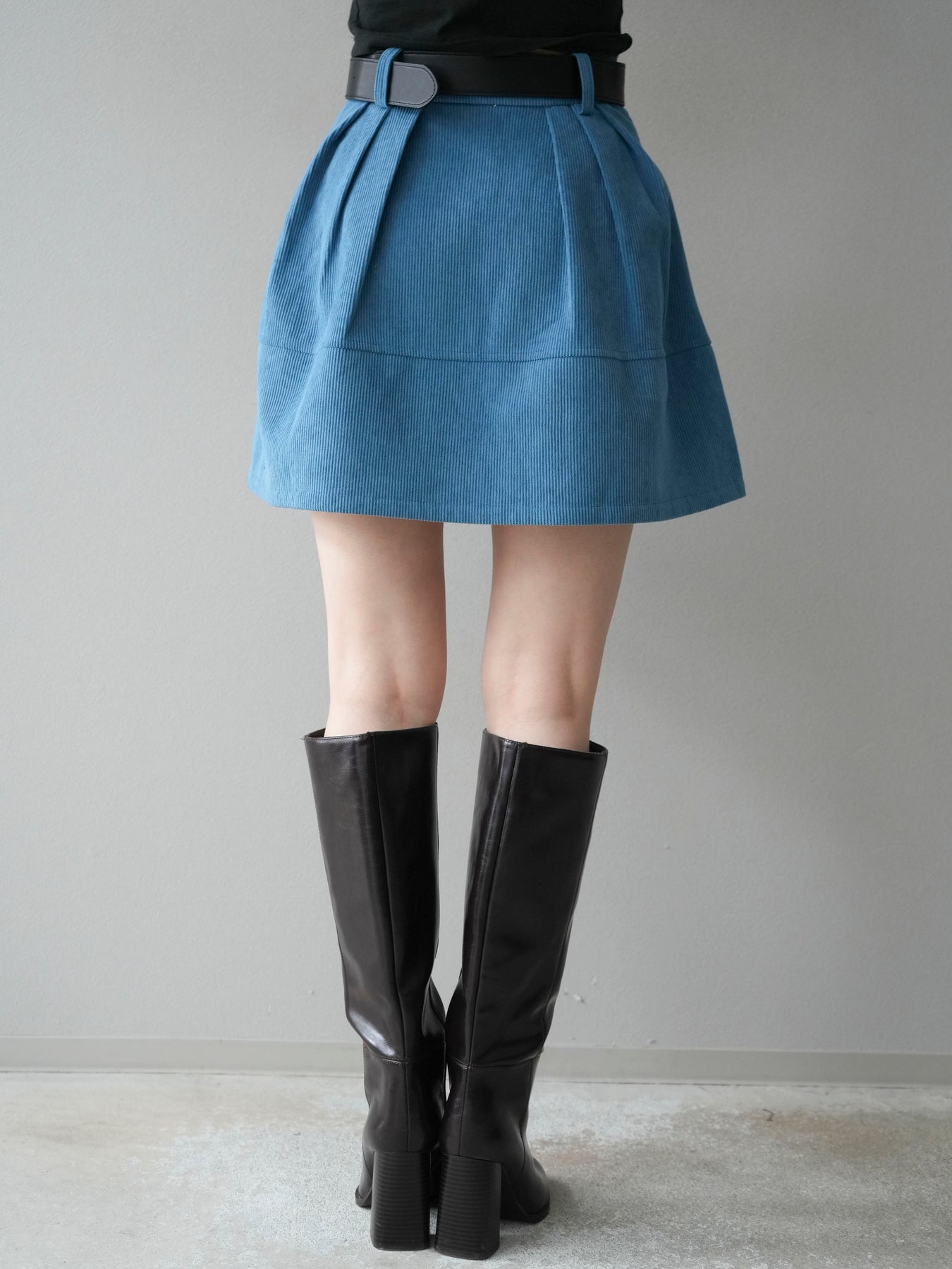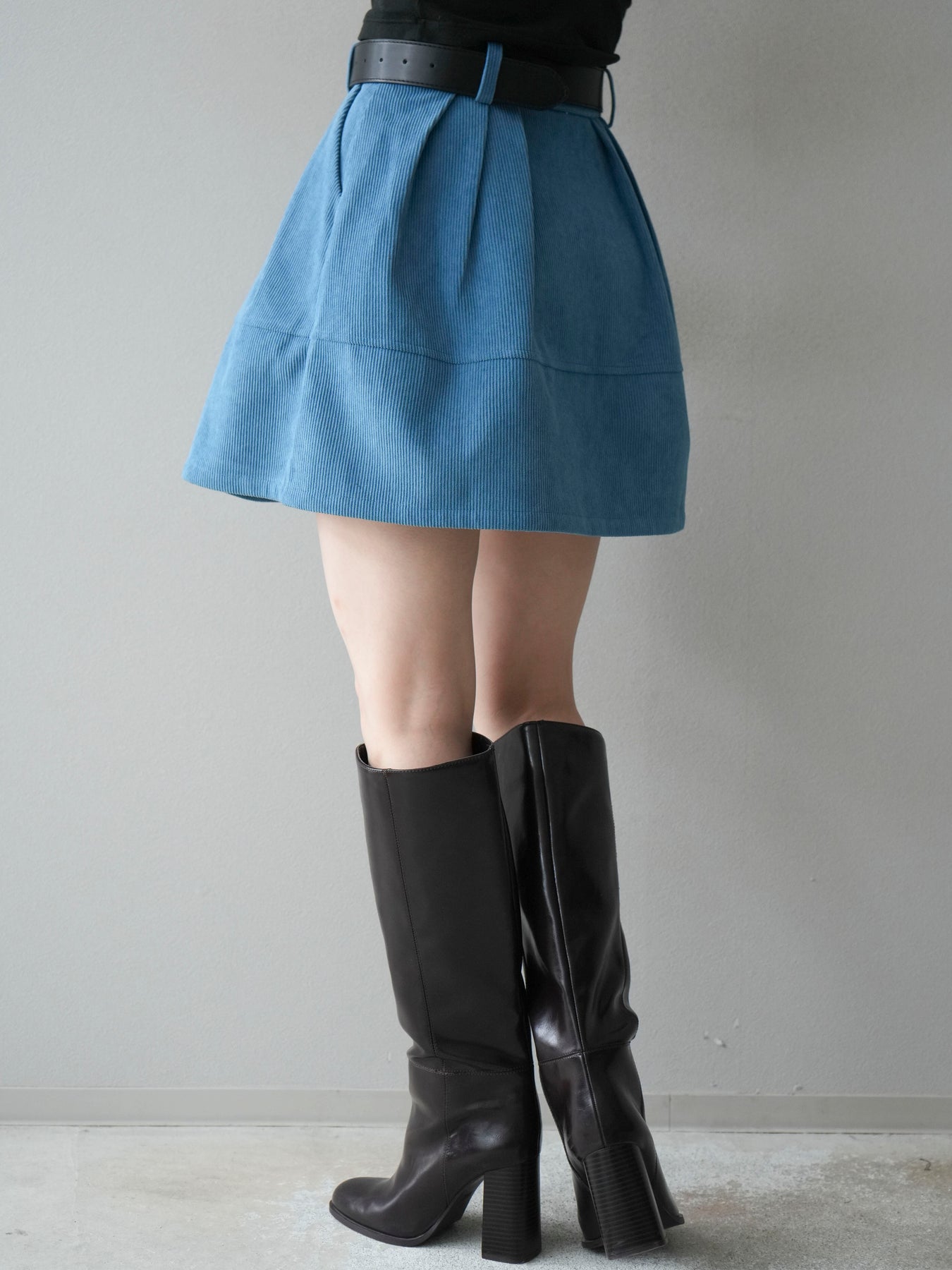 [予約]ベルト付インパンコーデュロイタックフレアスカート/blue
