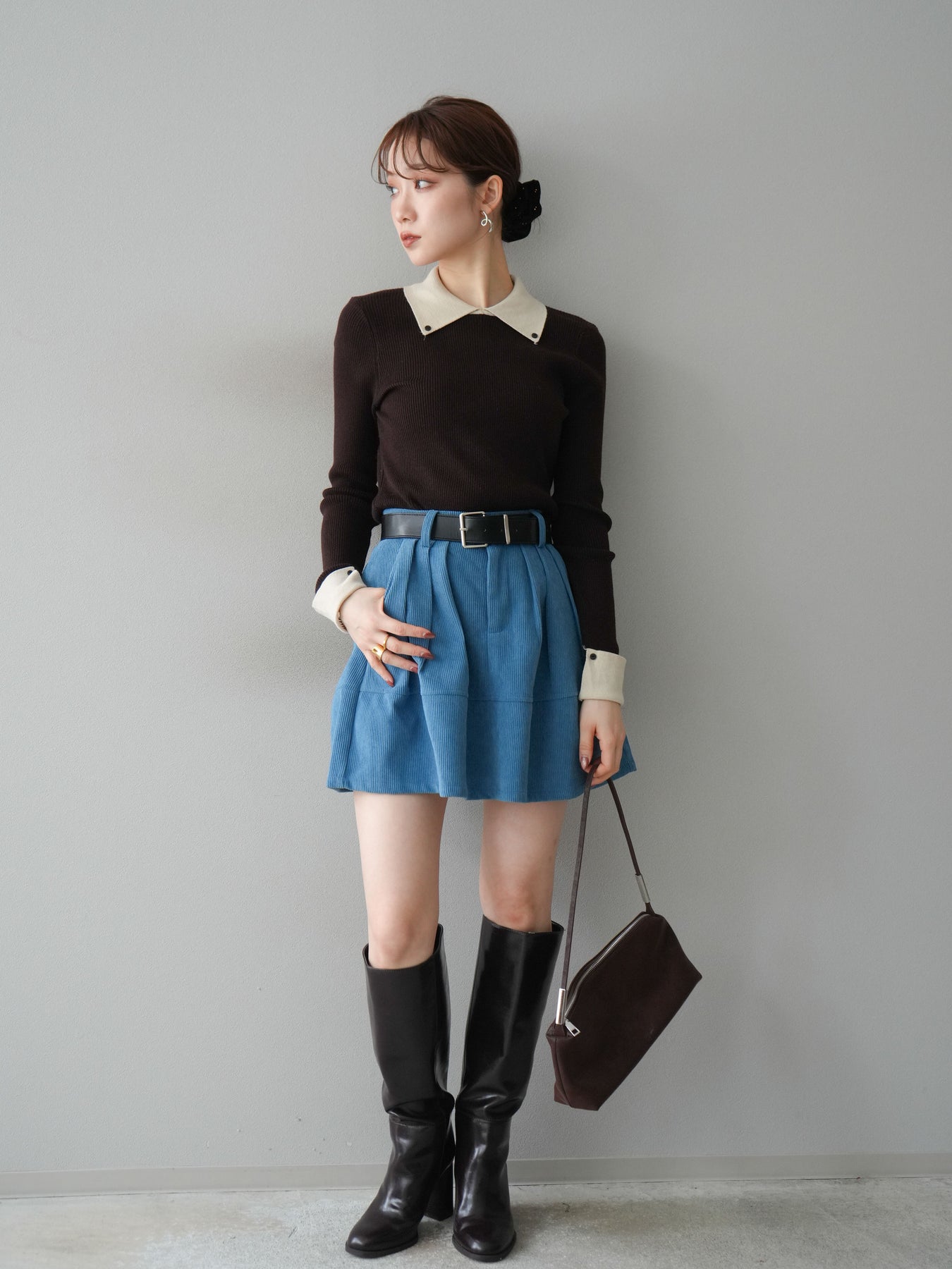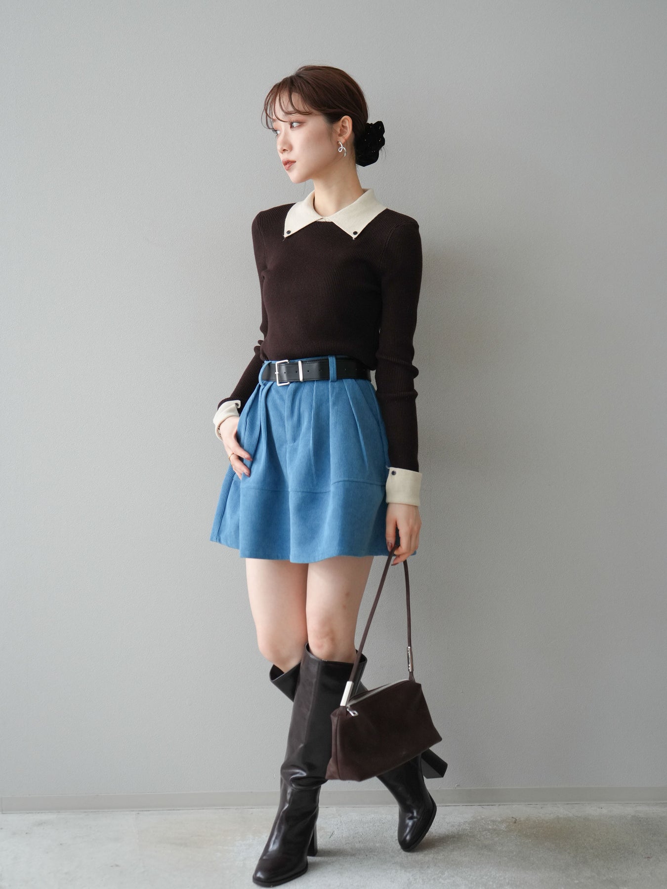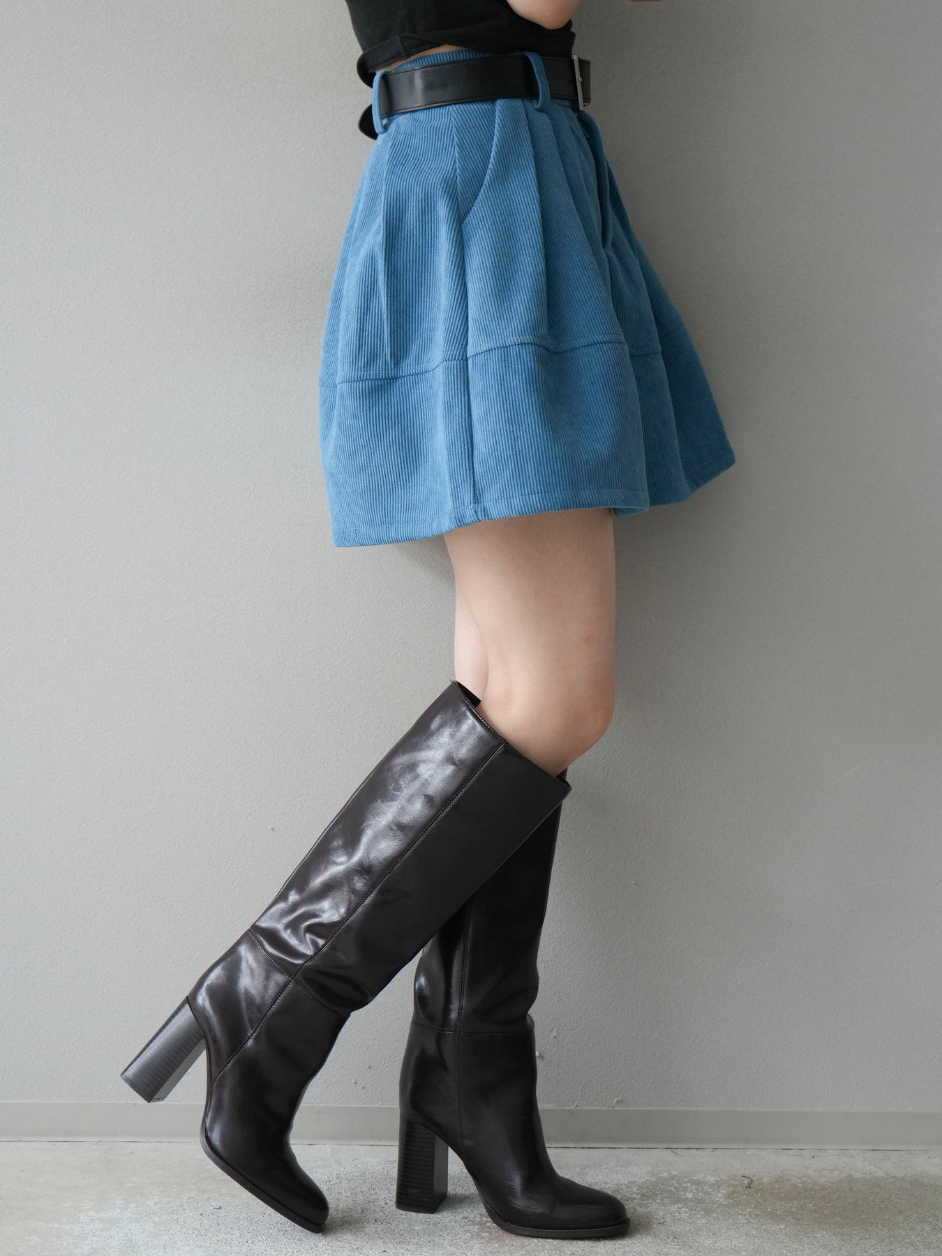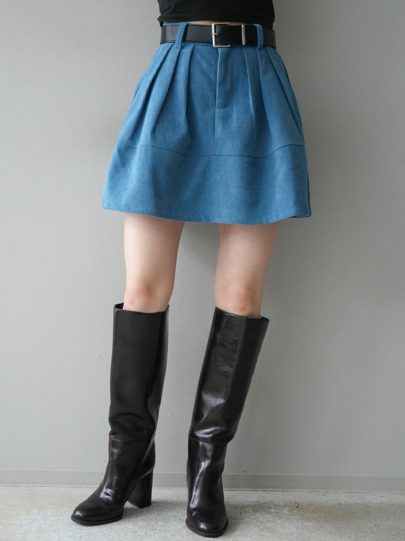 [予約]ベルト付インパンコーデュロイタックフレアスカート/blue