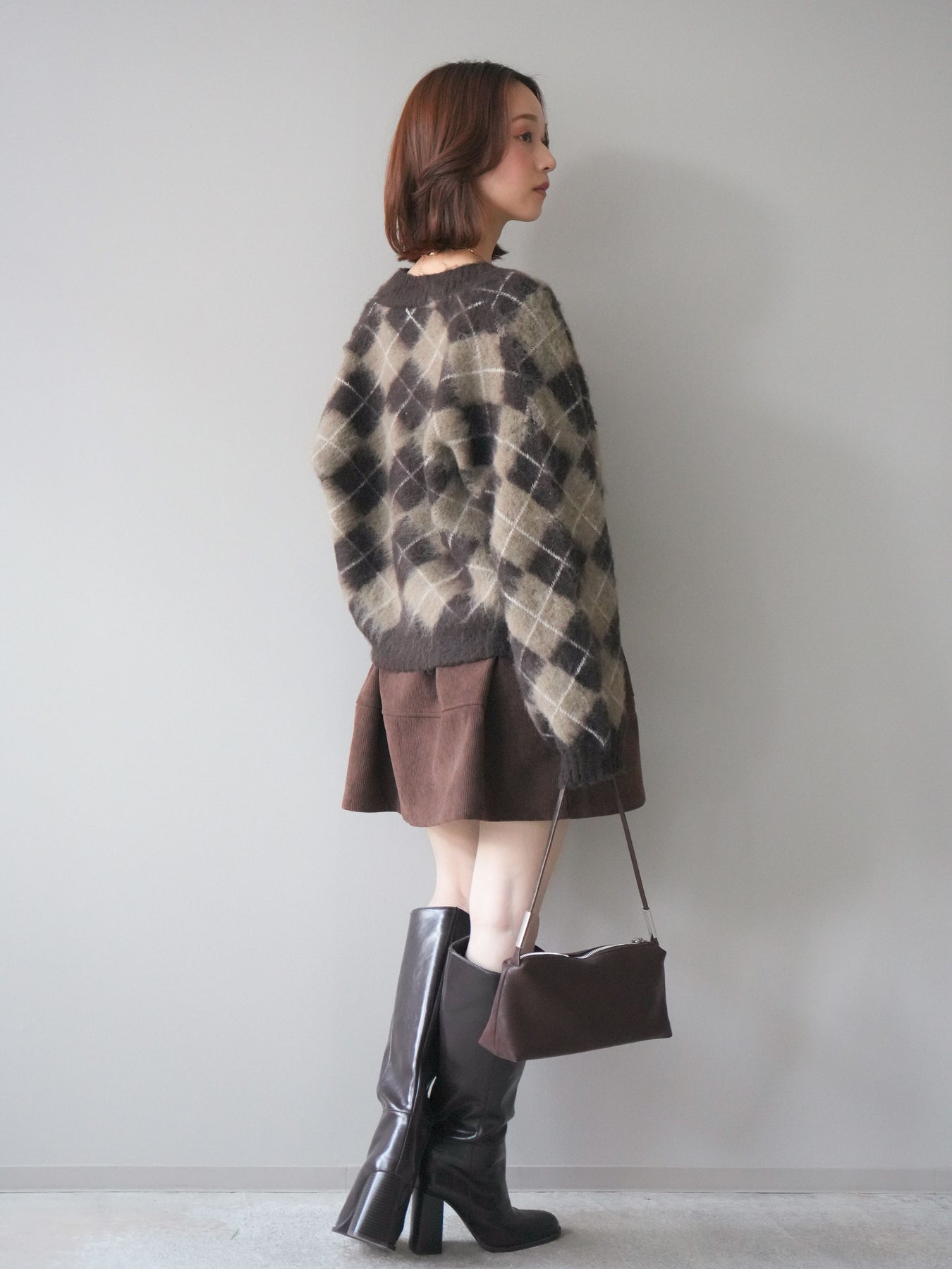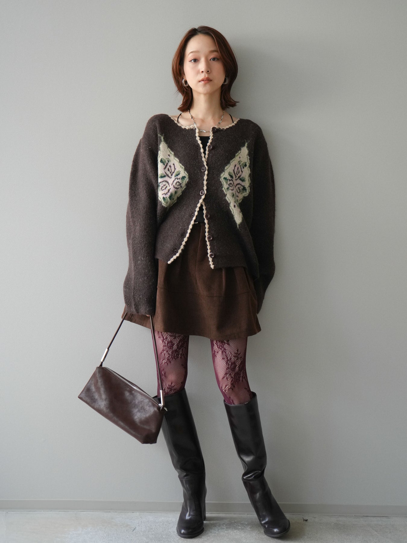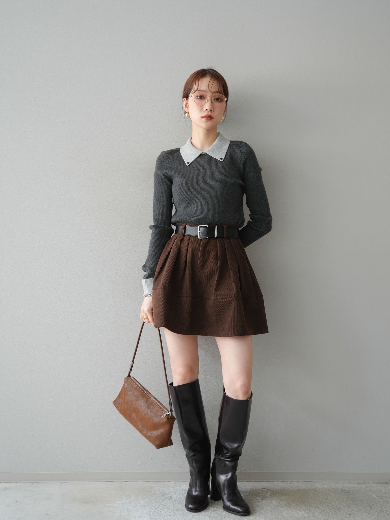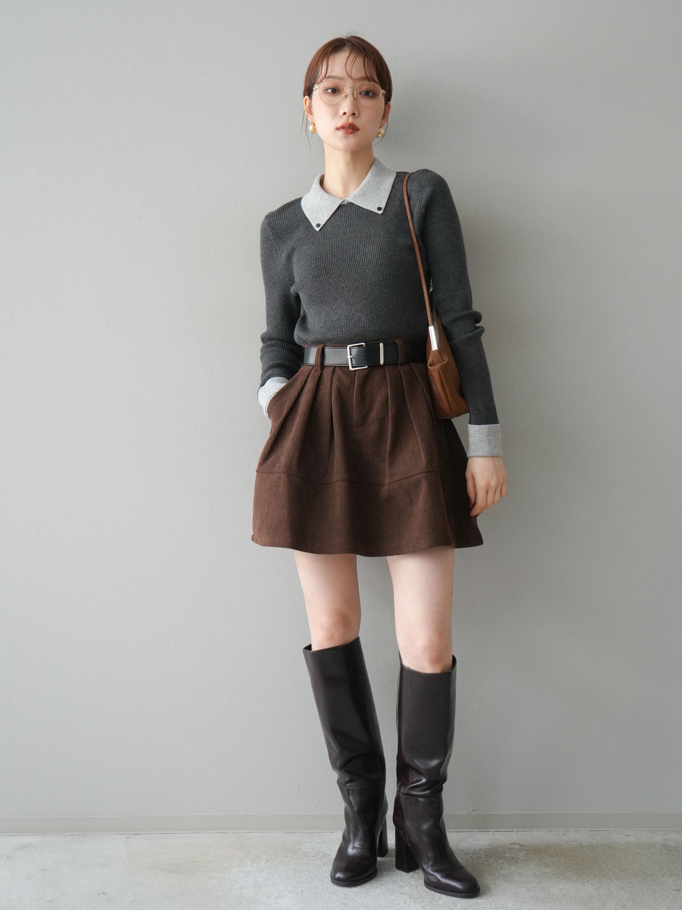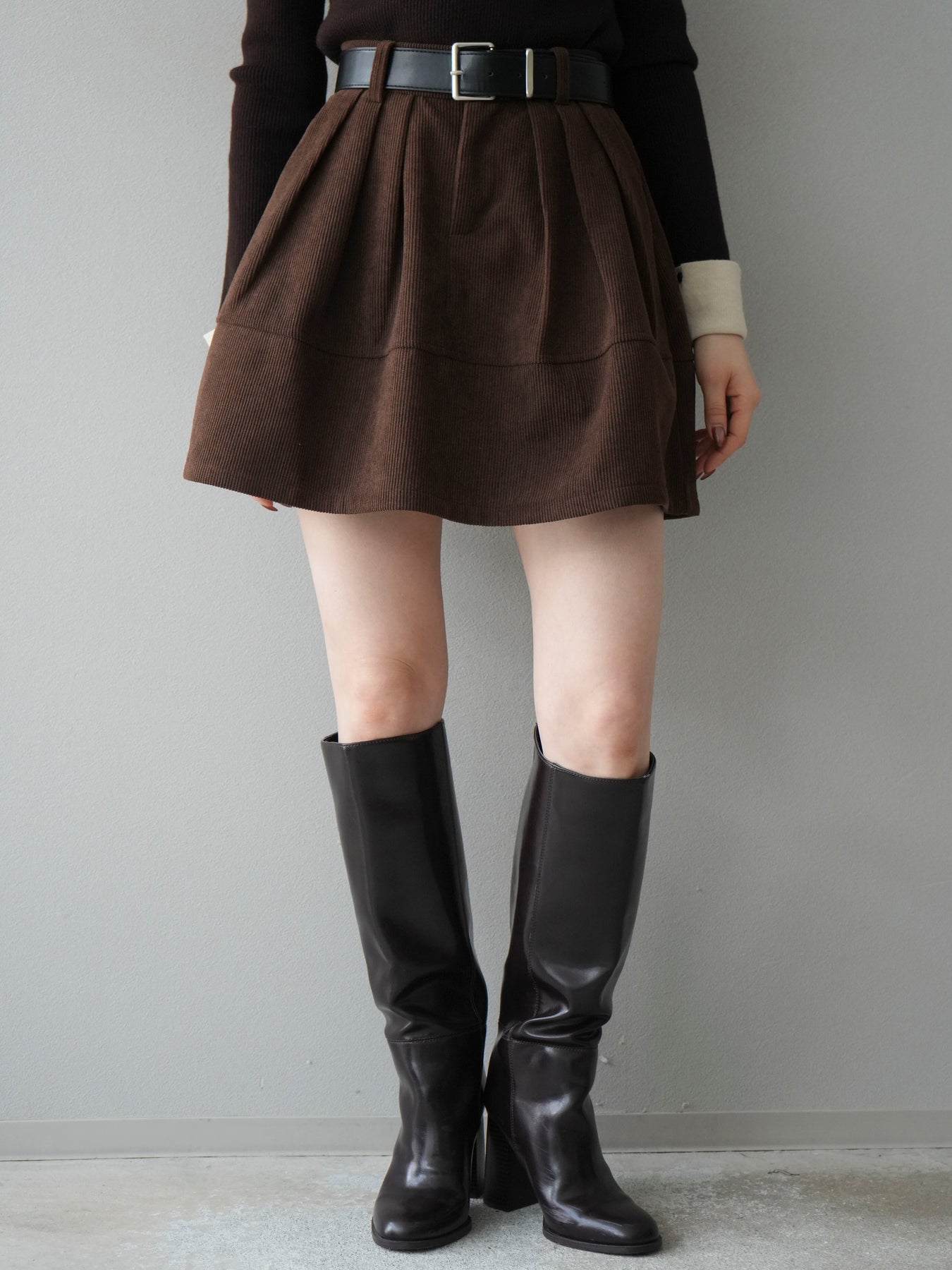 [予約]ベルト付インパンコーデュロイタックフレアスカート/brown