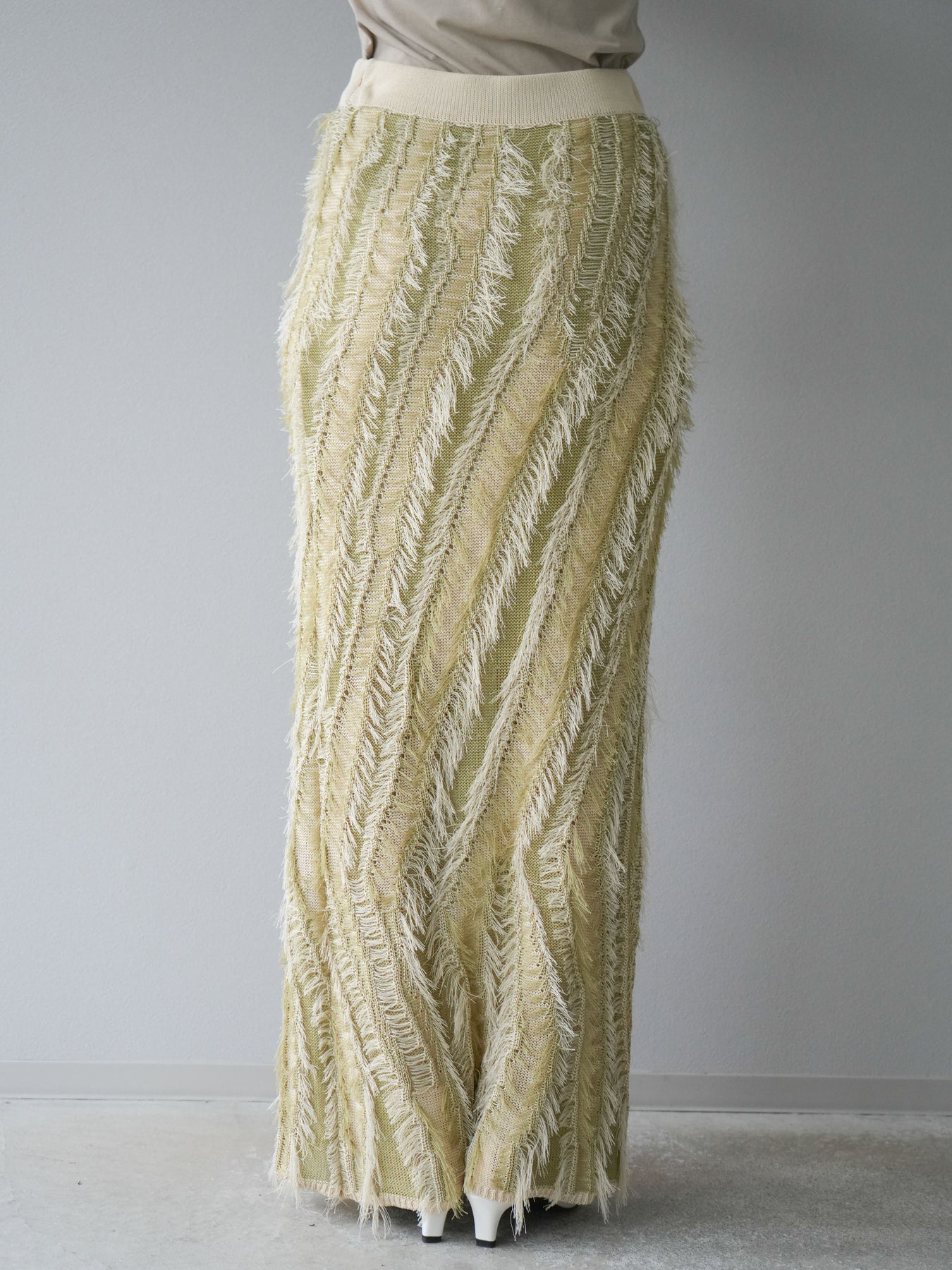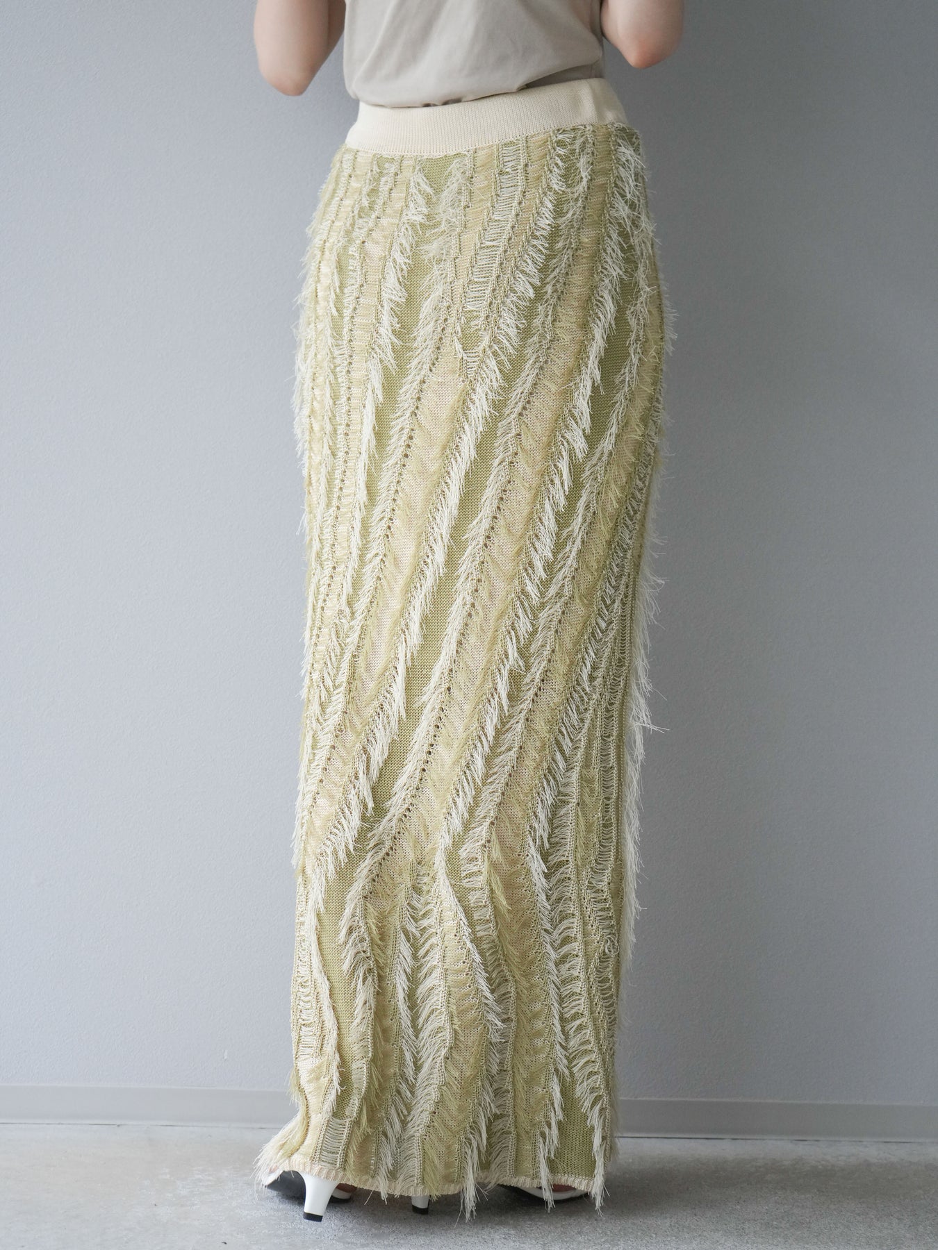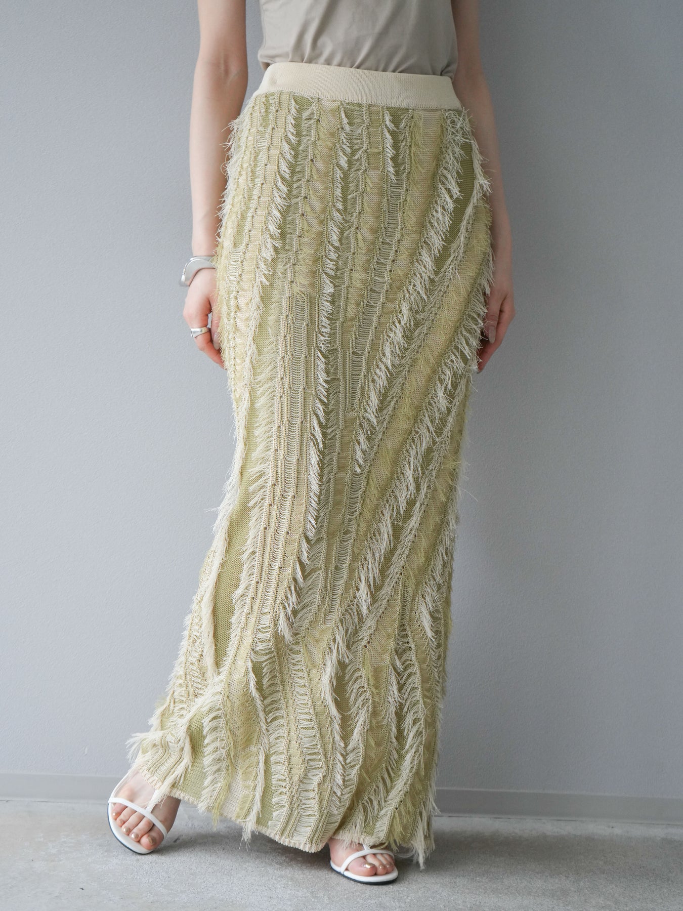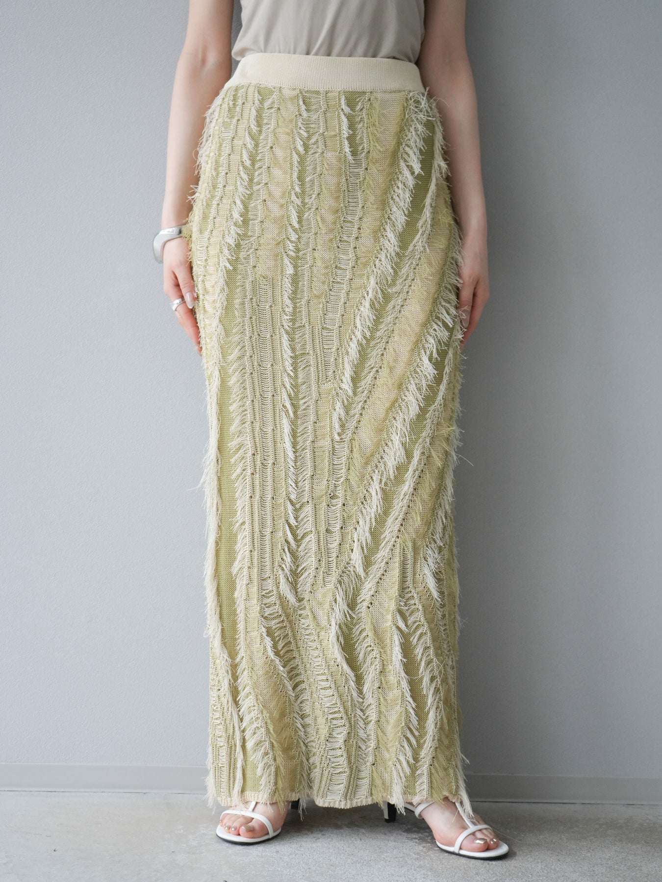 [予約]ミックスヤーンフリンジタイトスカート/グリーン
