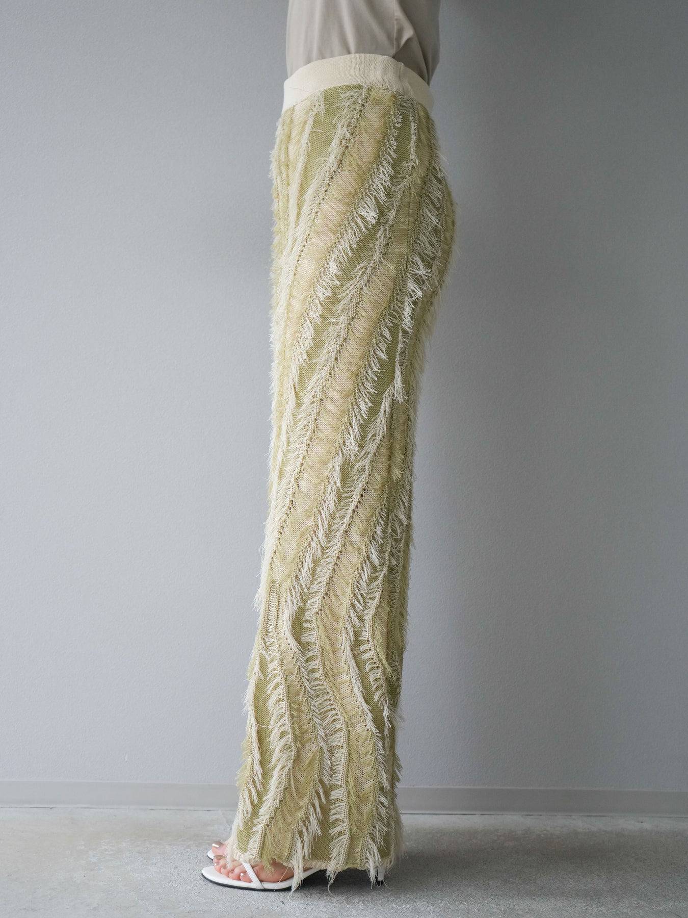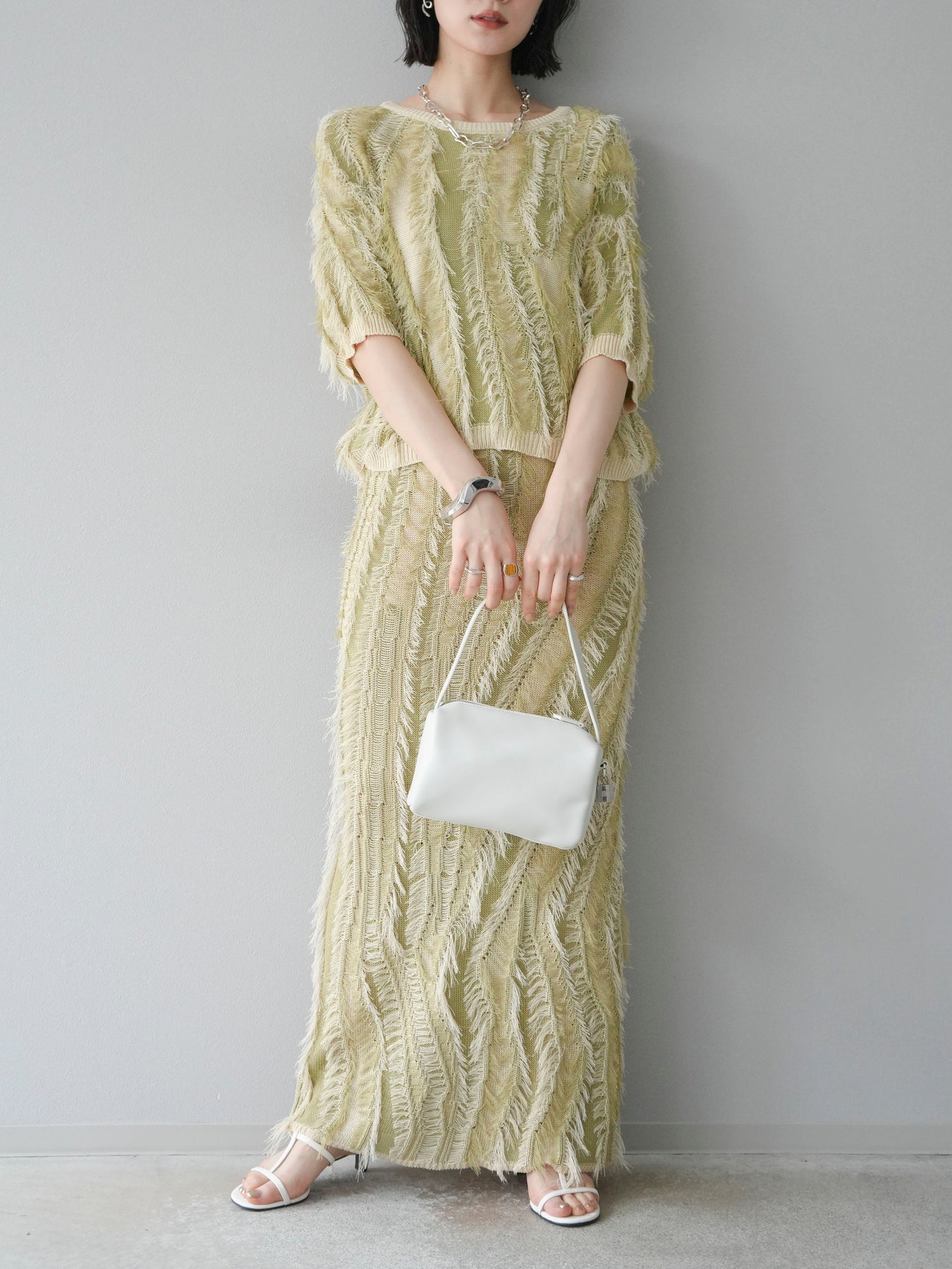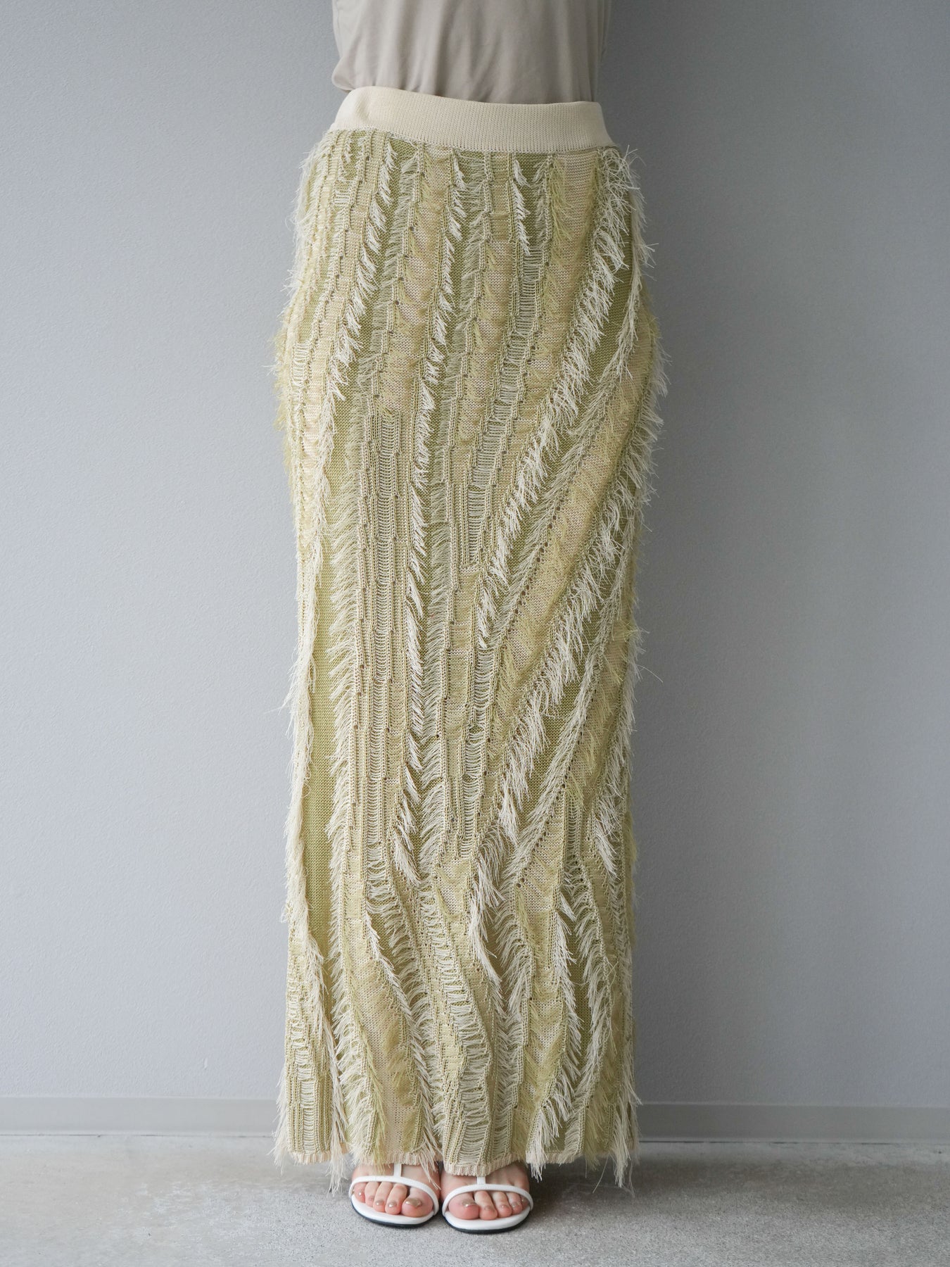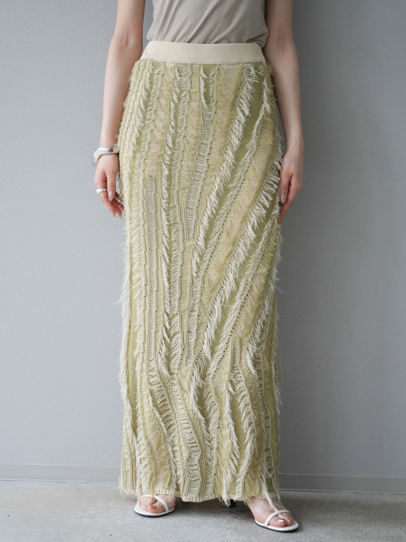 [予約]ミックスヤーンフリンジタイトスカート/グリーン