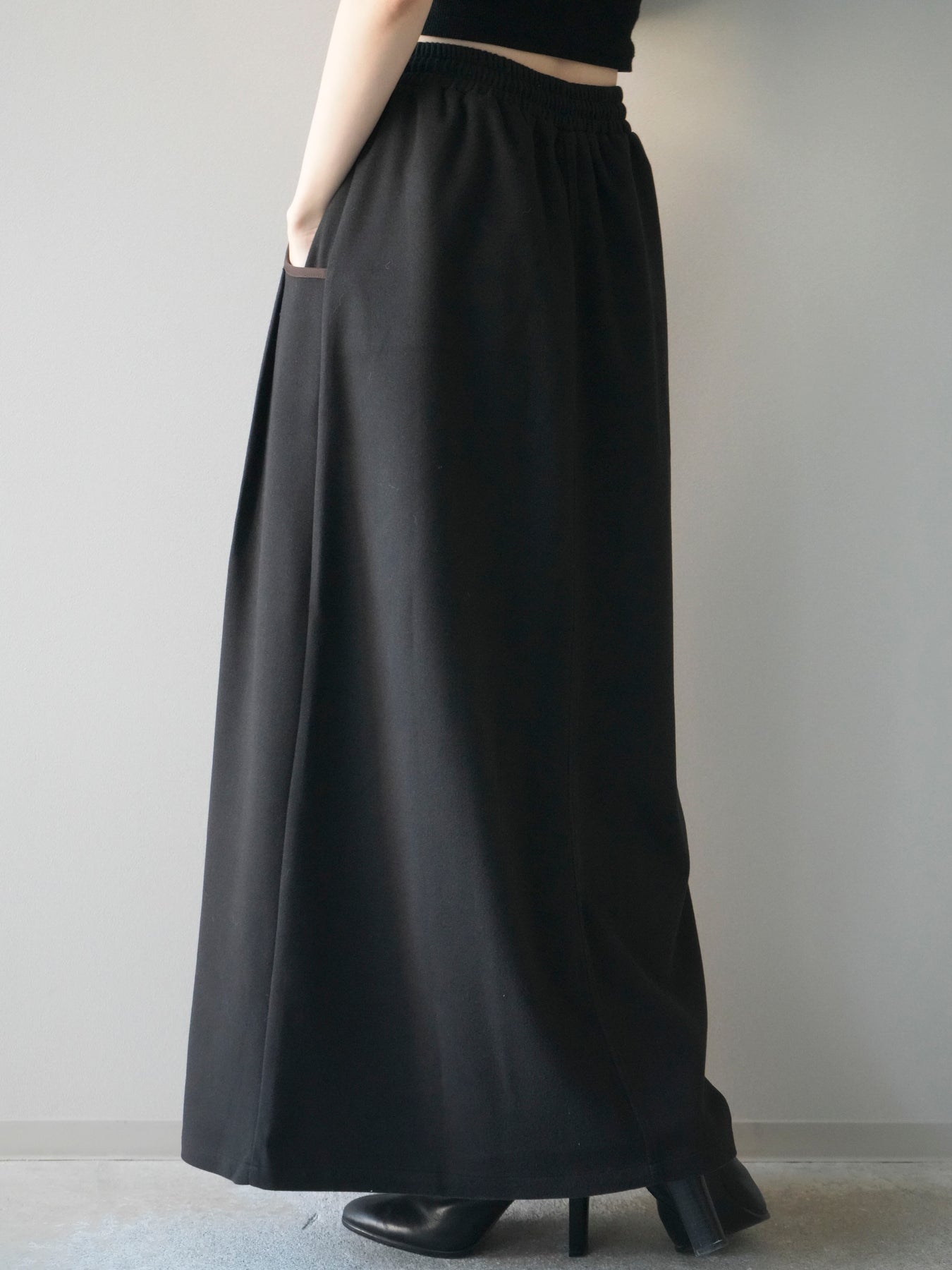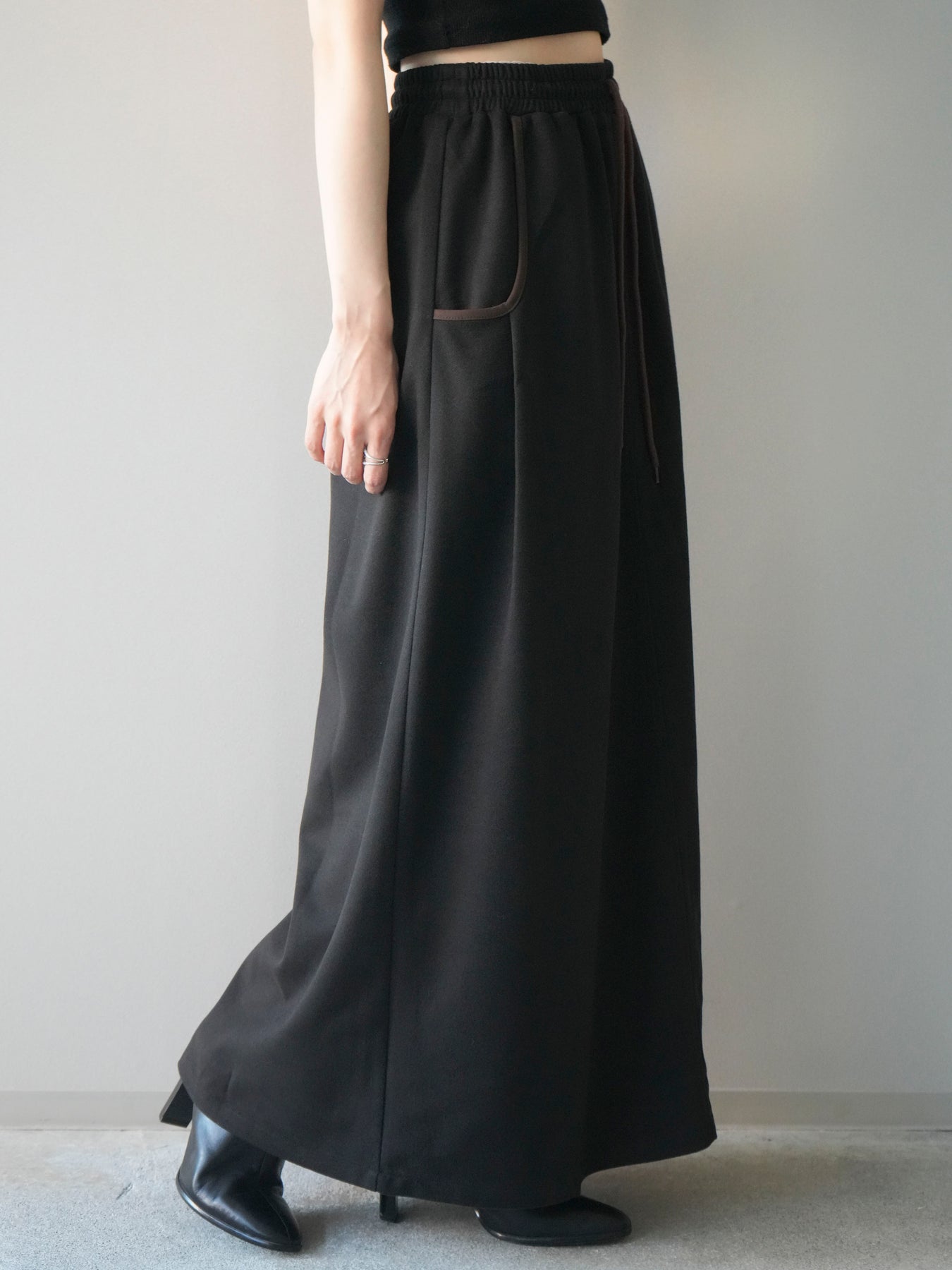 [予約]配色パイピングIラインスカート/black