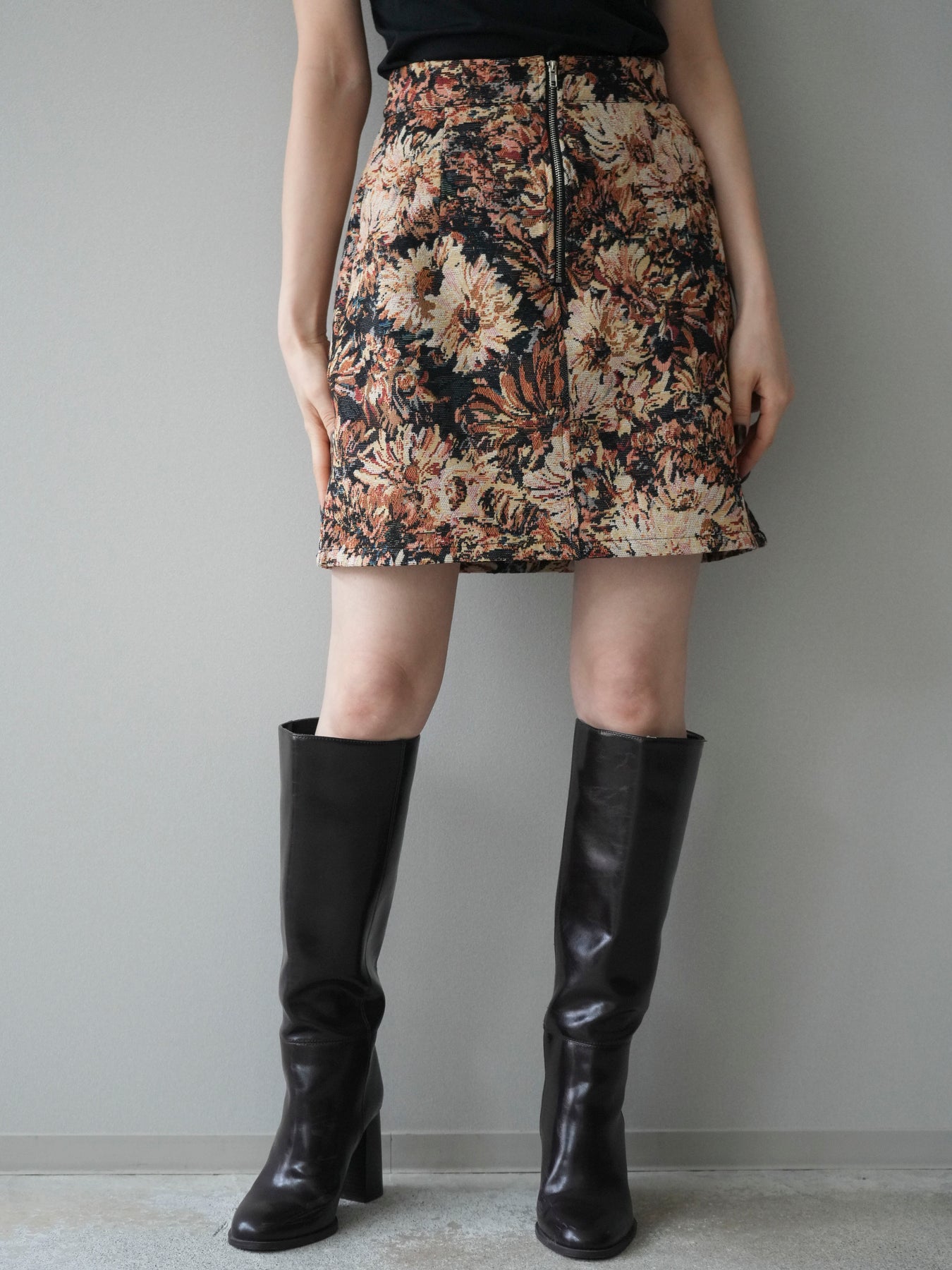 個性豊かな柄が目を惹くアソートデザインのミニスカート。 フロントのZIPディテールがアクセントになり、スタイリングに程よいスパイスをプラスします。 すっきりとした台形シルエットで脚のラインをきれいに見せ、トップスをインした着こなしもバランス良く決まる一枚。 季節感のある素材感で、ニットやジャケットなどとの相性も抜群です。 柄によって印象が異なり、スタイリングの幅を広げてくれる主役級スカートです。