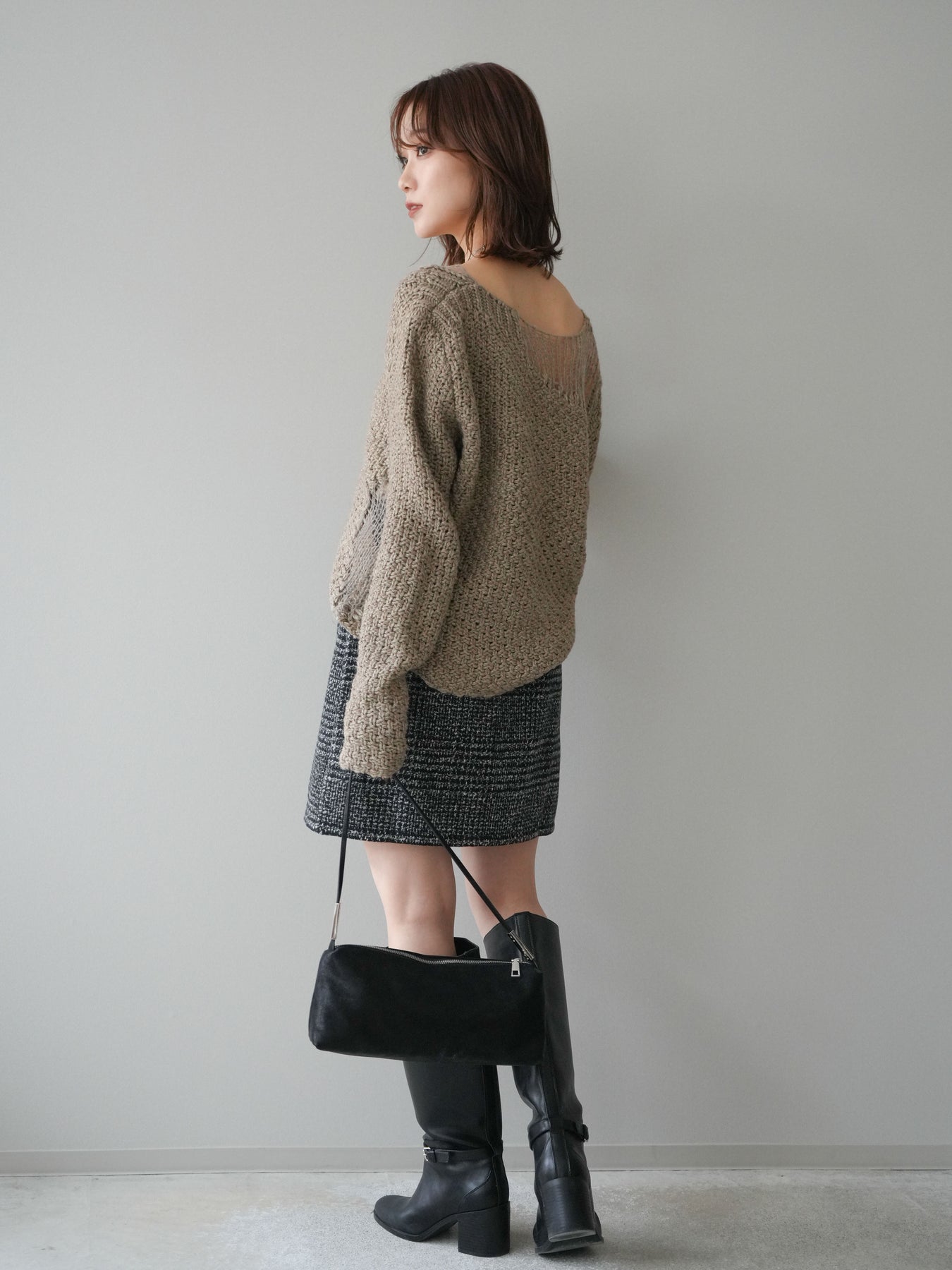 ・お手入れ方法:水温30℃以下手洗いでのお洗濯をお薦めします。素材の特性上、洗濯の際に色落ち・縮みが生じる恐れがありますので単独で・短時間でのお洗濯をお薦めします。裏返してネットに入れ手洗いコースで洗濯、洗濯後は形を整えてから干してください。※タンブラー乾燥は控えてください。濡れたままの状態で擦れると、色落ち色移りすることがあります。つけ置き洗いや雨や汗で濡れたまま放置は避け、速やかに処理してください。着用中の摩擦や汗、水濡れ、濃淡差があるものとの重ね着にご注意ください。また、素材の特性上伸びやすい為ハンガーの使用はお控えいただき畳んで保管ください。