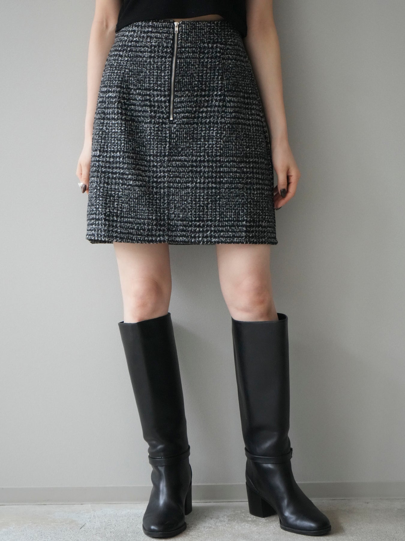 個性豊かな柄が目を惹くアソートデザインのミニスカート。 フロントのZIPディテールがアクセントになり、スタイリングに程よいスパイスをプラスします。 すっきりとした台形シルエットで脚のラインをきれいに見せ、トップスをインした着こなしもバランス良く決まる一枚。 季節感のある素材感で、ニットやジャケットなどとの相性も抜群です。 柄によって印象が異なり、スタイリングの幅を広げてくれる主役級スカートです。