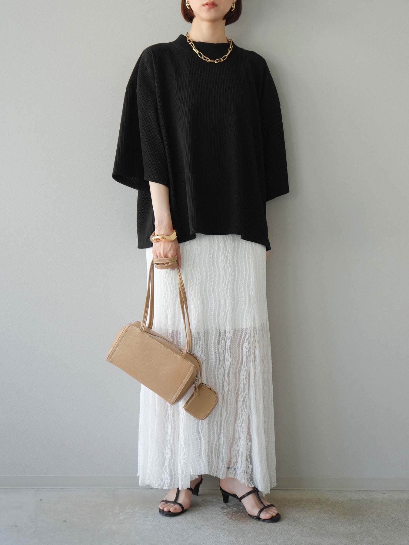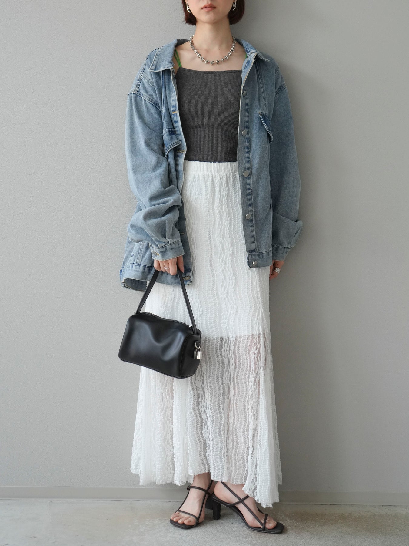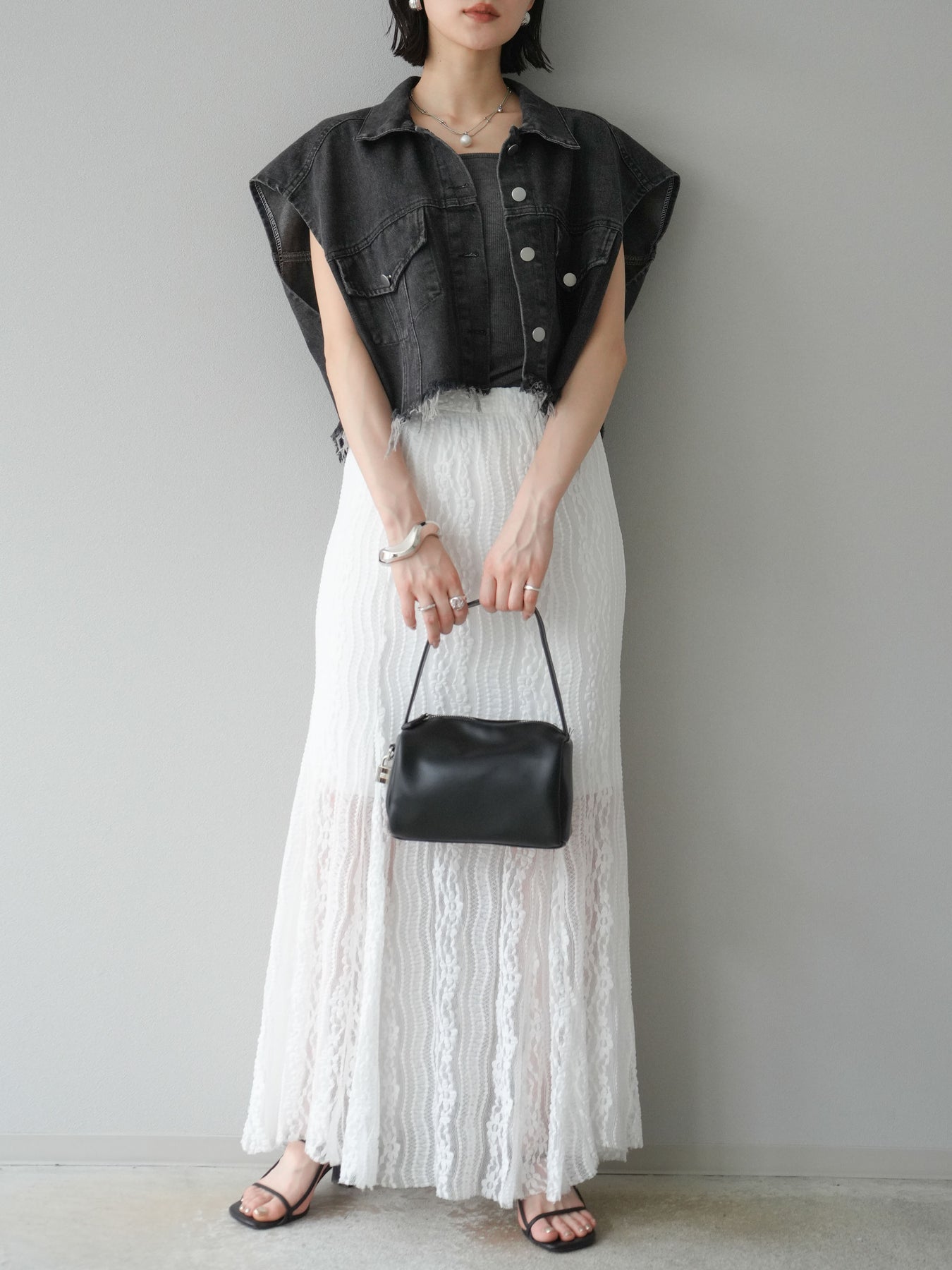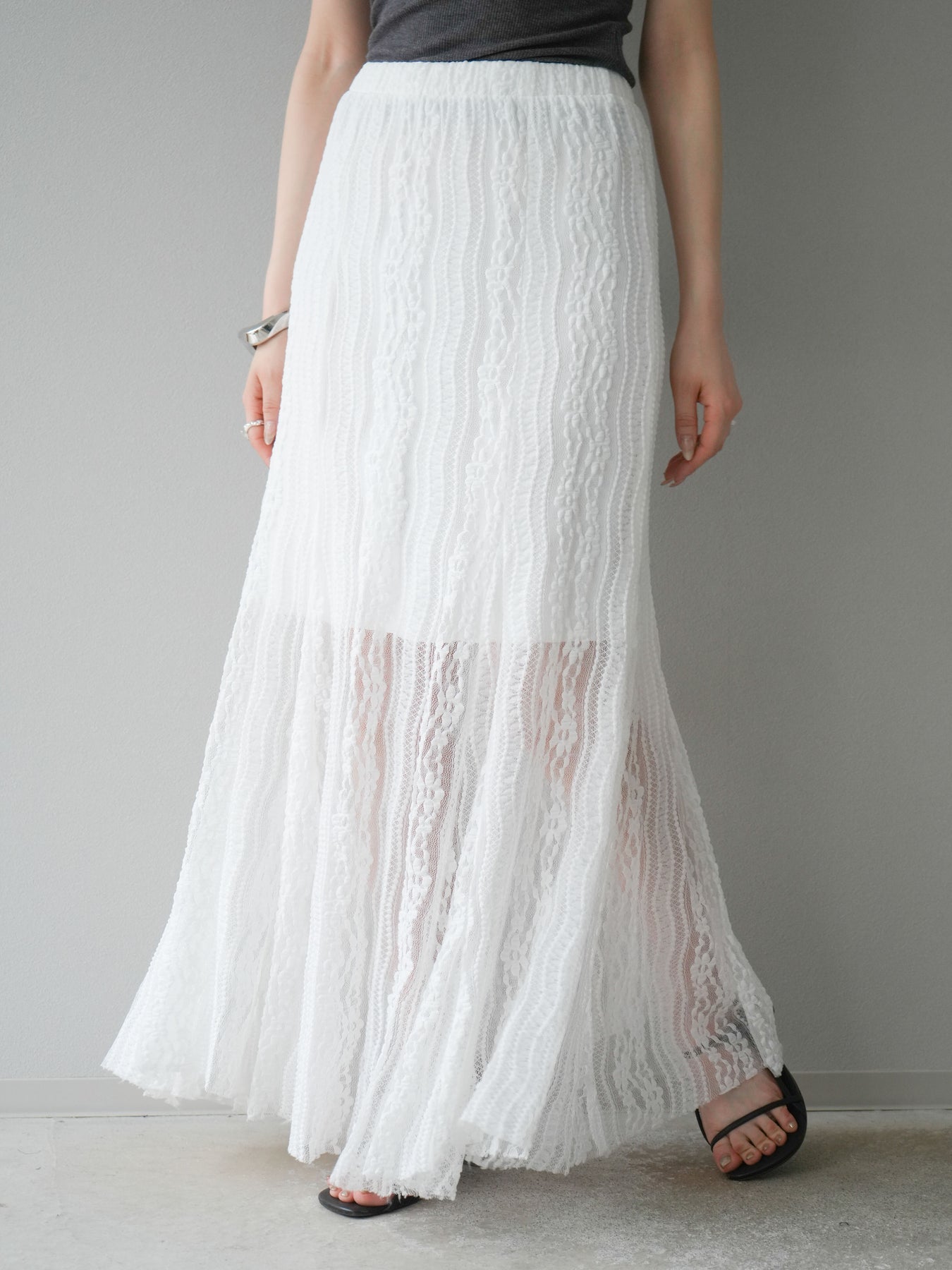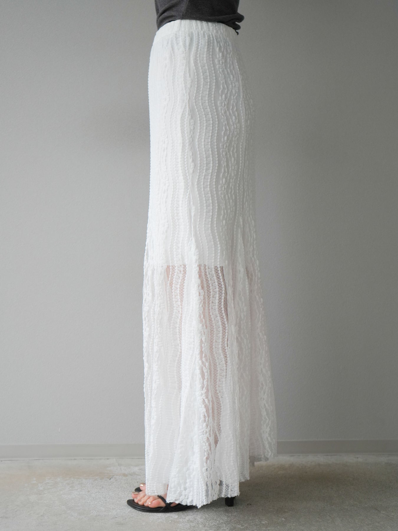 繊細なレース素材を使用したナローデザインのスカート。リラックス感のあるウエストゴム仕様で、軽やかな着心地を提供します。レースの美しいディテールが女性らしさを引き立て、シンプルながらも華やかな印象を与えます。モダンでありながらエレガントな一枚で、様々なトップスと合わせやすいアイテムです。 ※ボトムス、キャミソール(インナー)以外の商品は一律でインナーは付属していません