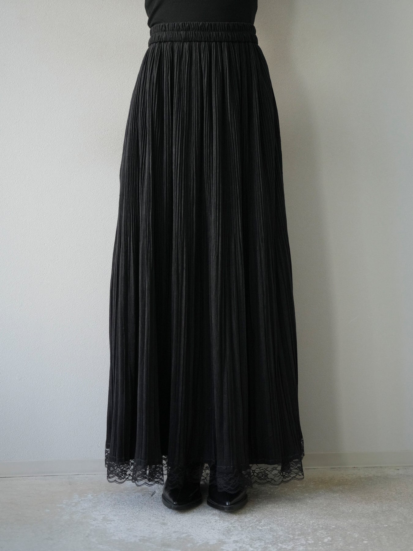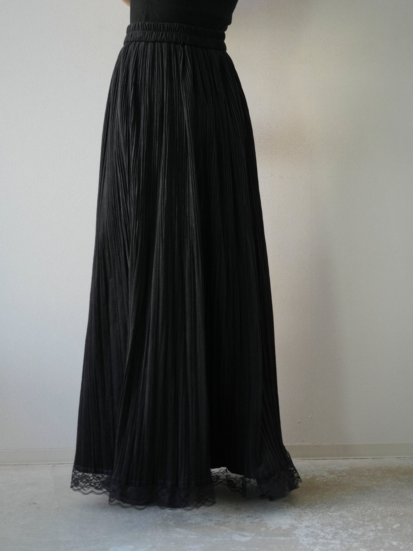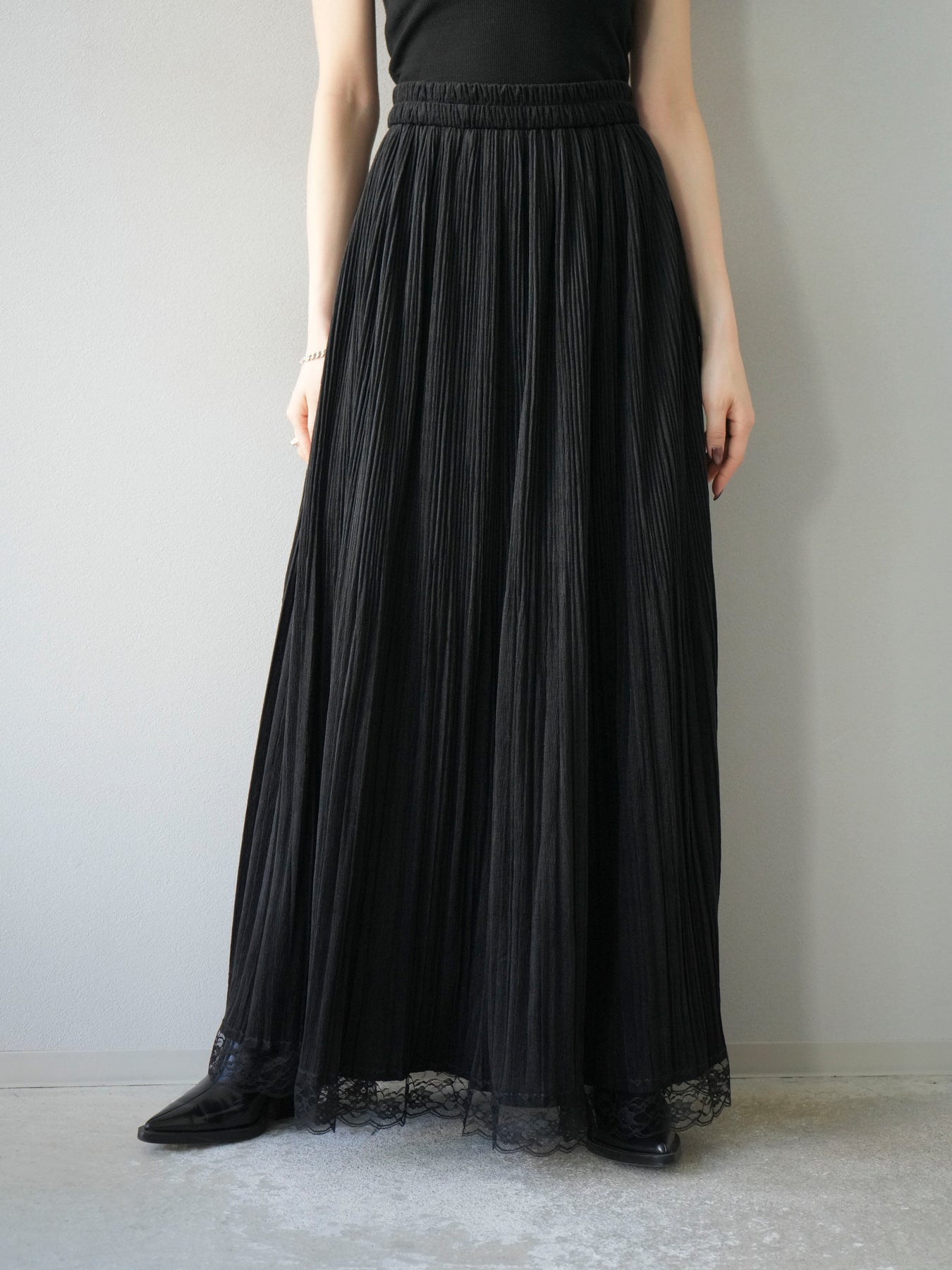 [予約]裾レーススウェードプリーツマキシスカート/ブラック