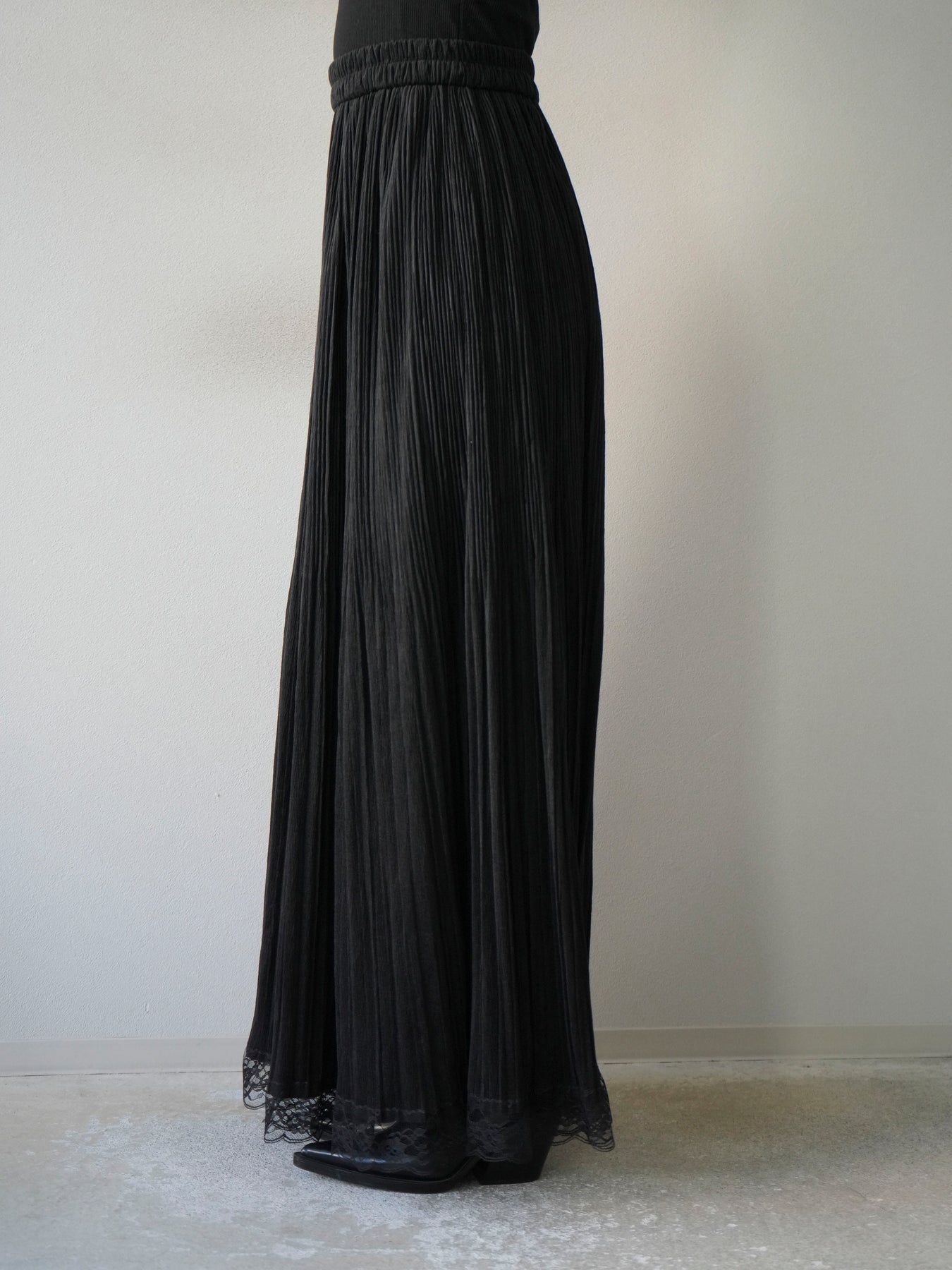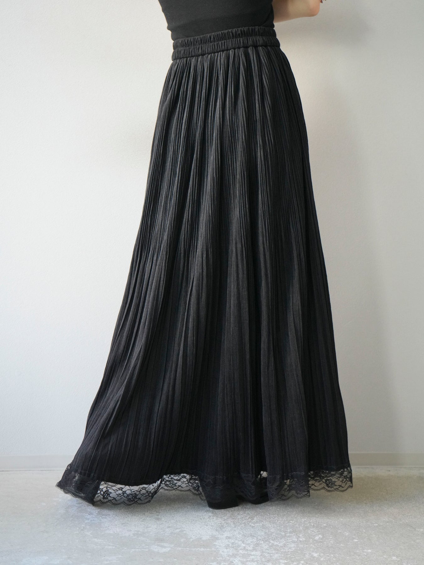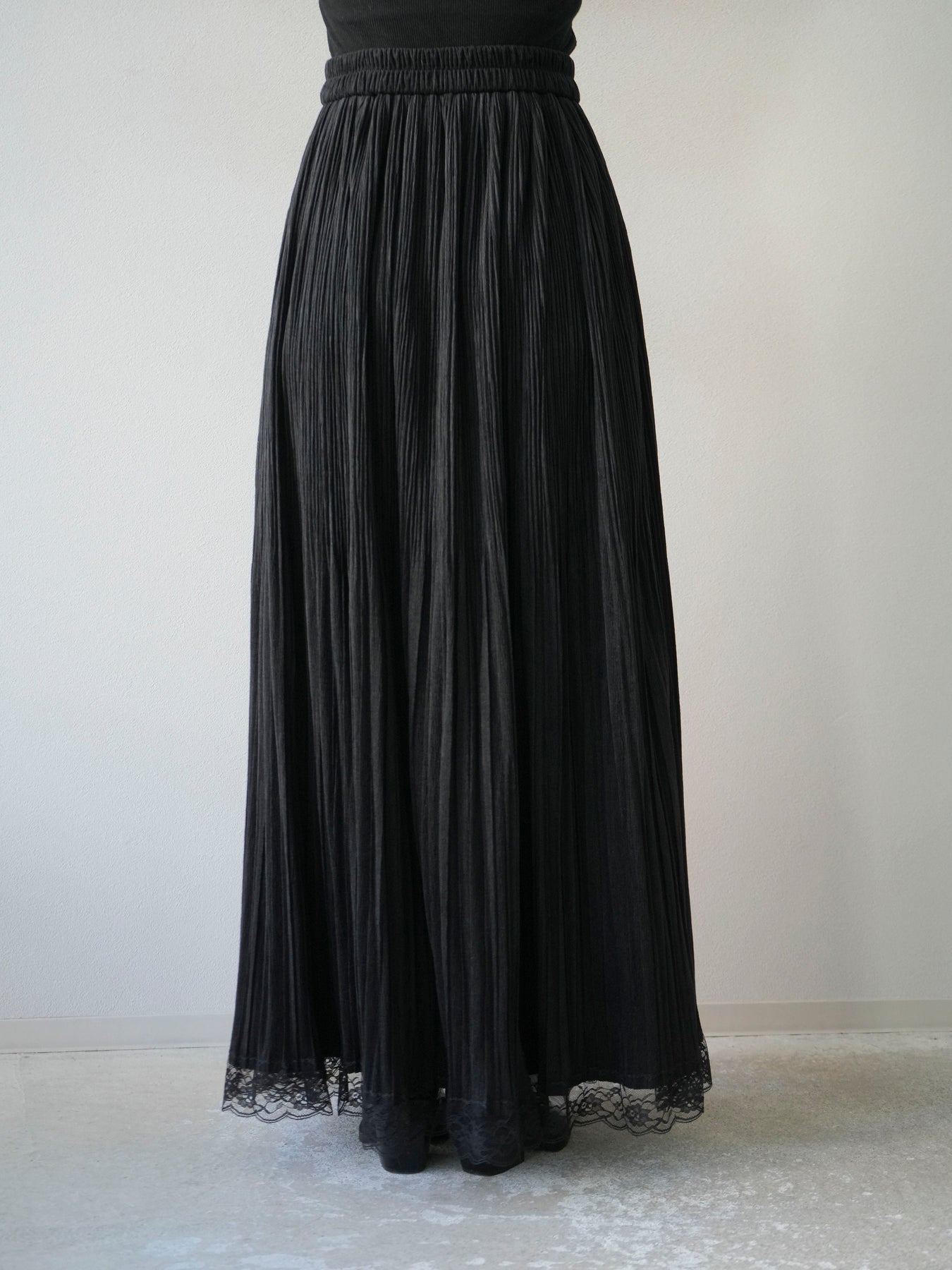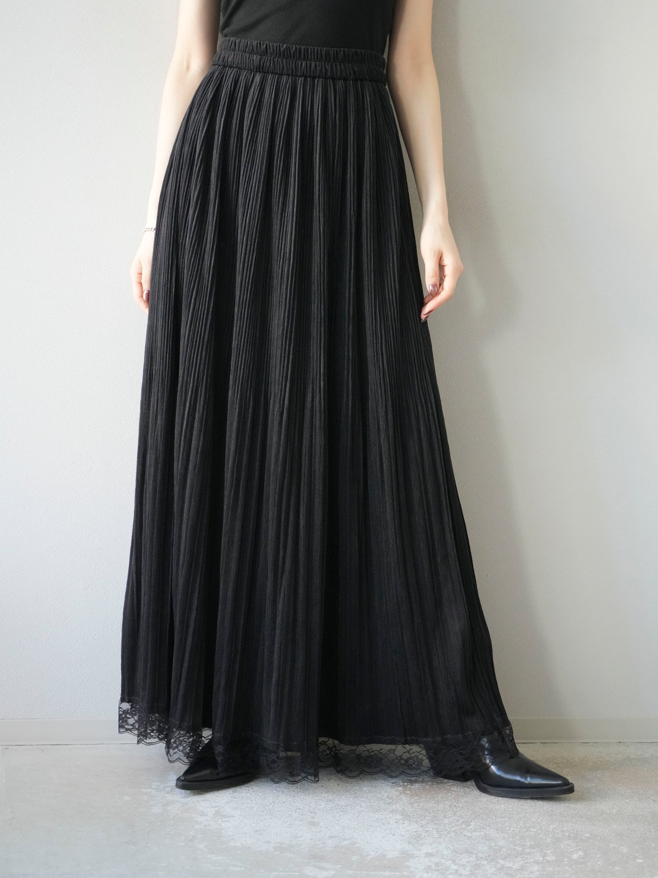 [予約]裾レーススウェードプリーツマキシスカート/ブラック