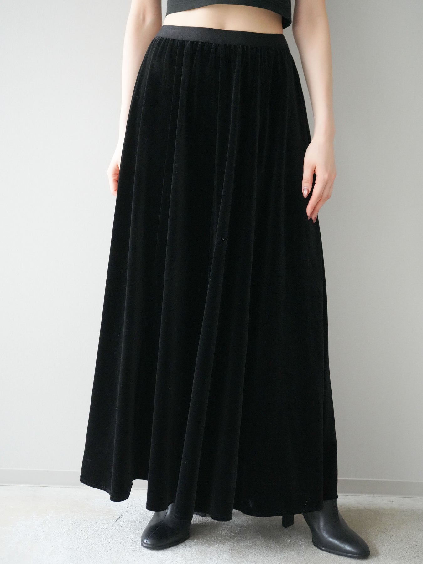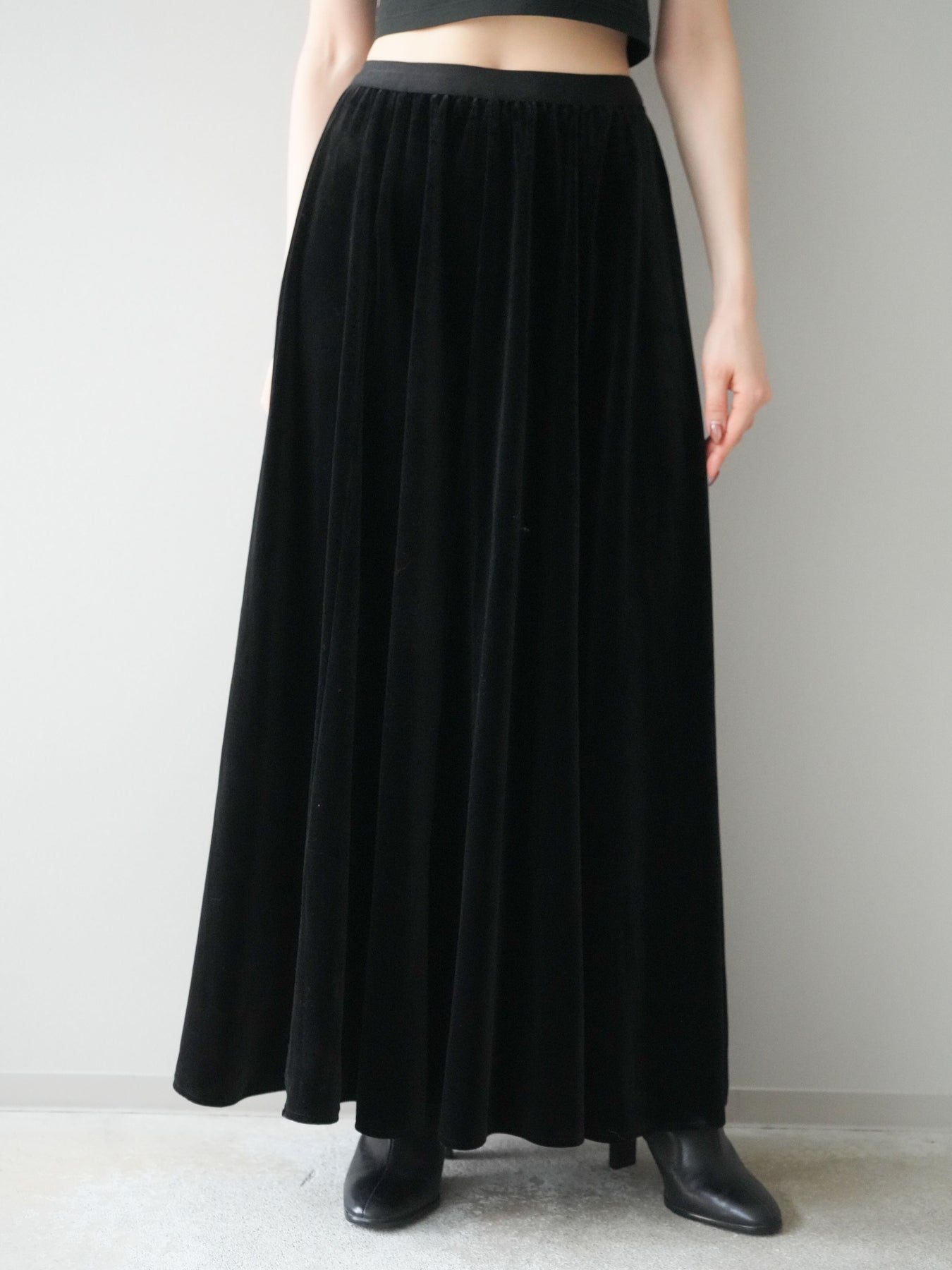 [予約]ベロアフレアスカート/black