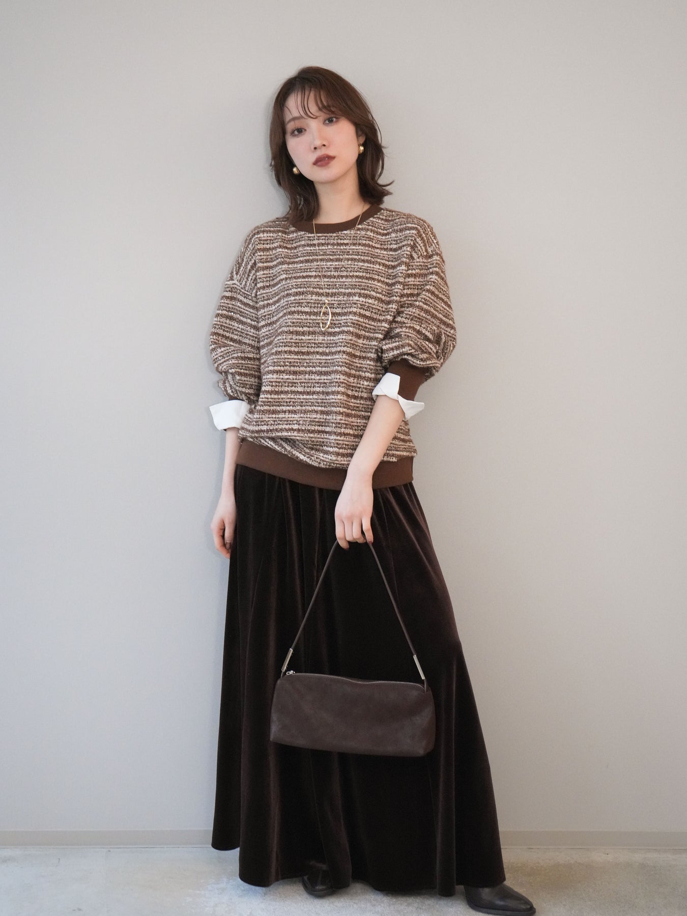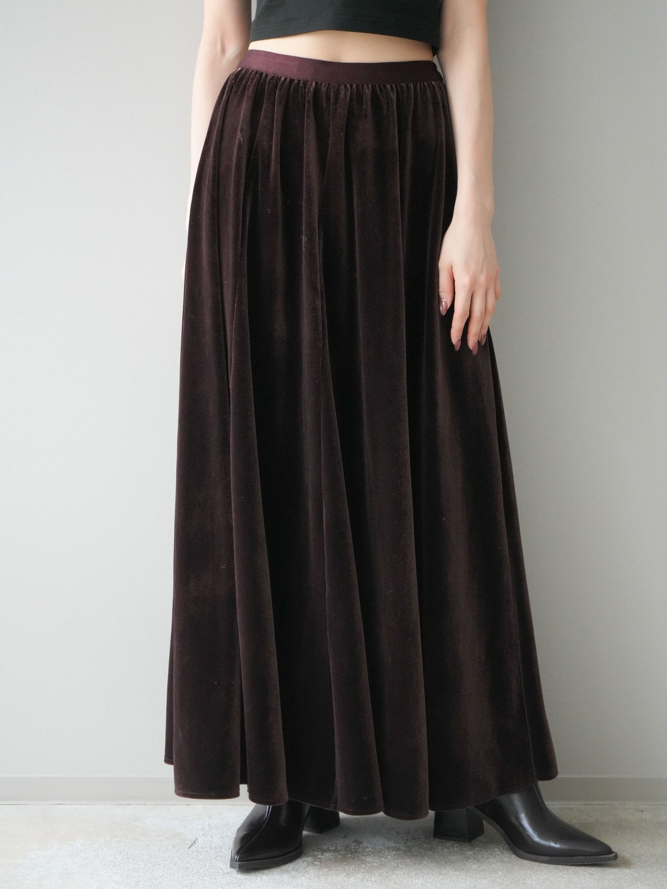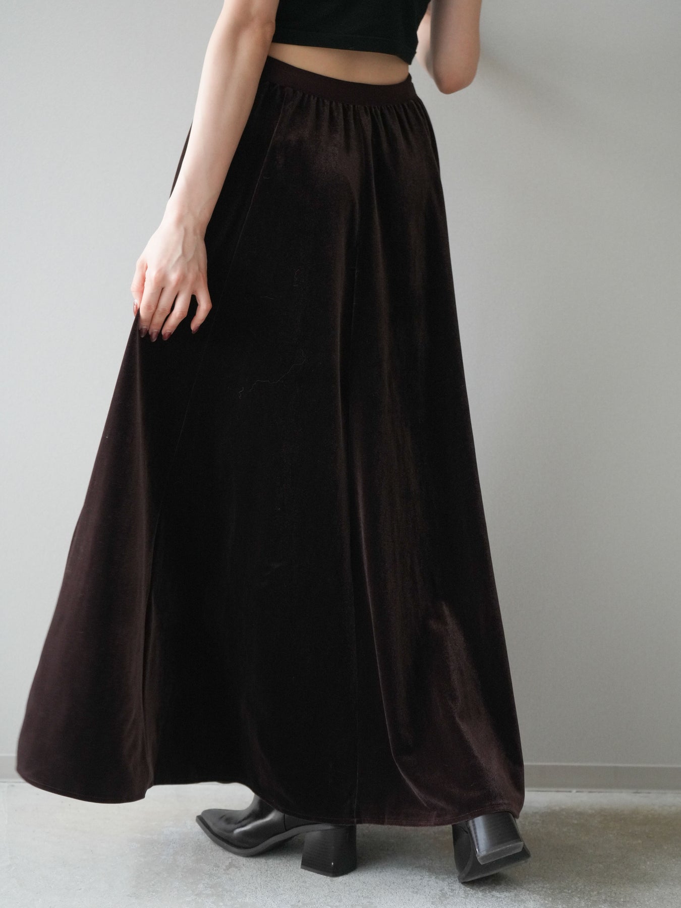 [予約]ベロアフレアスカート/brown