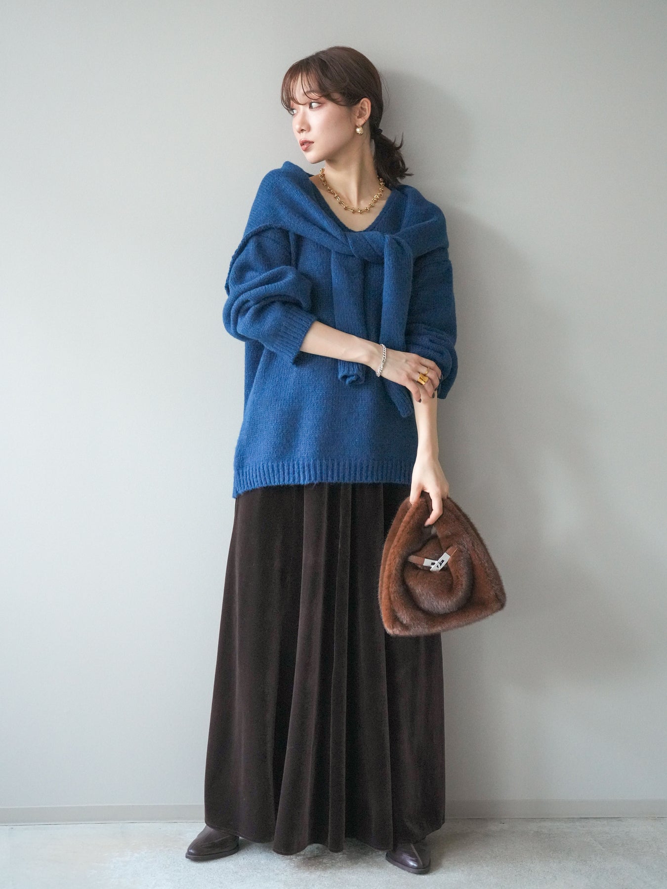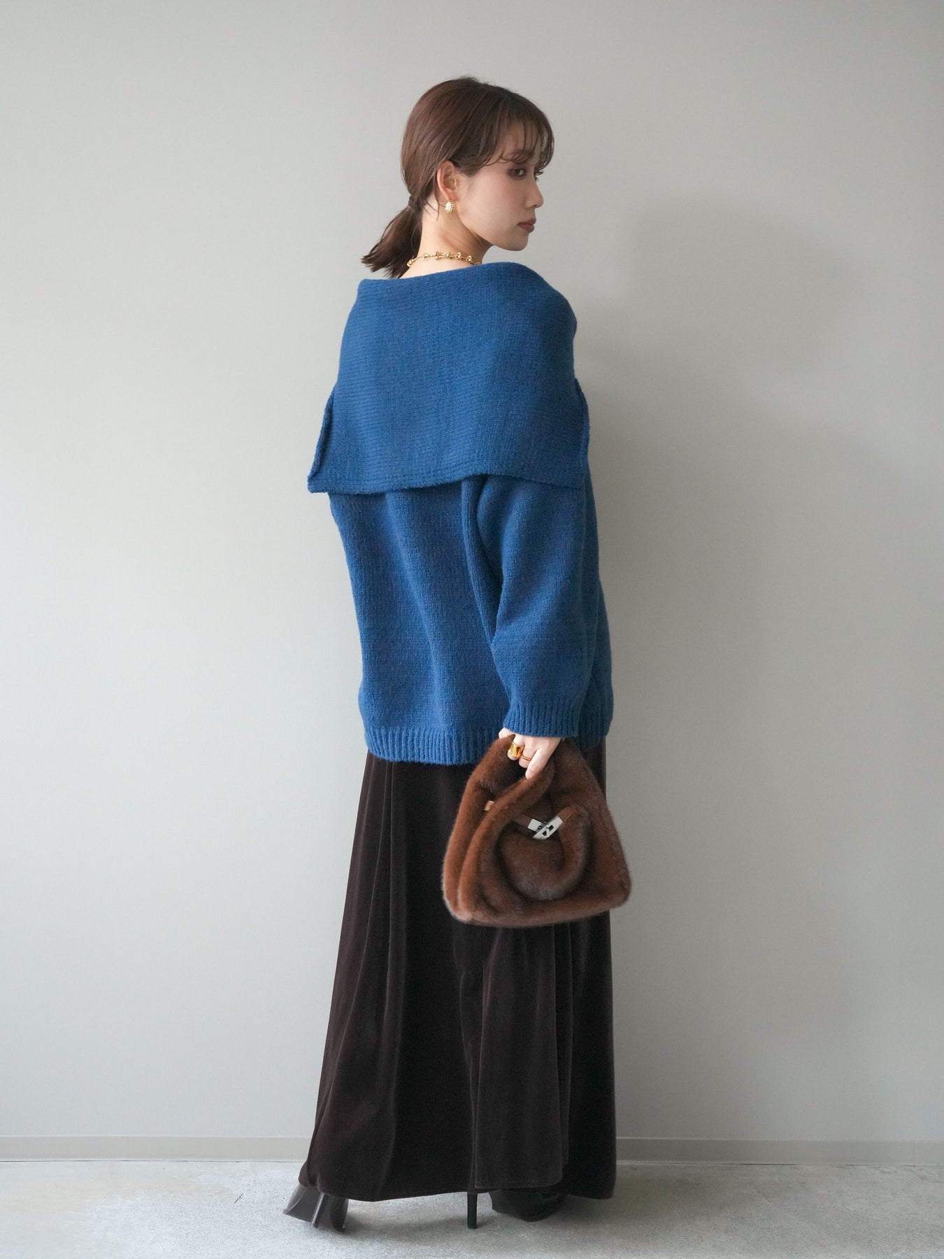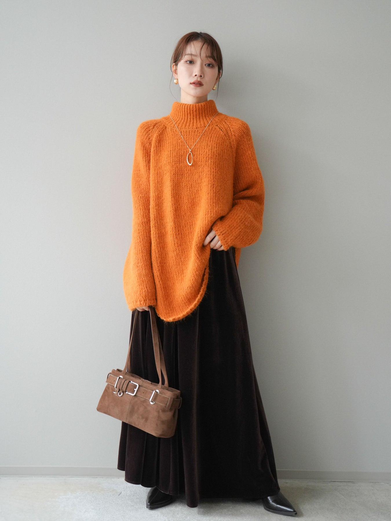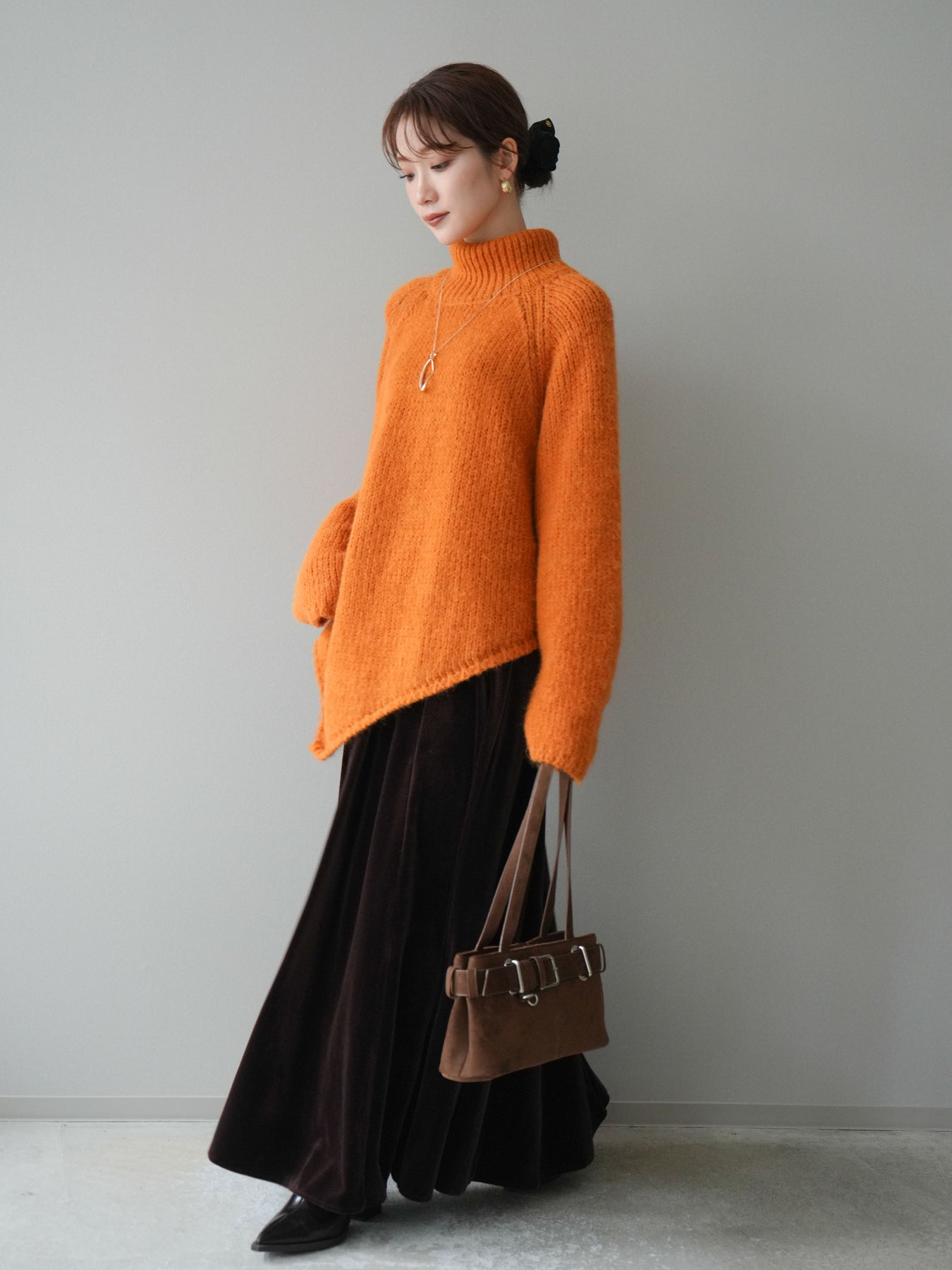 [予約]ベロアフレアスカート/brown