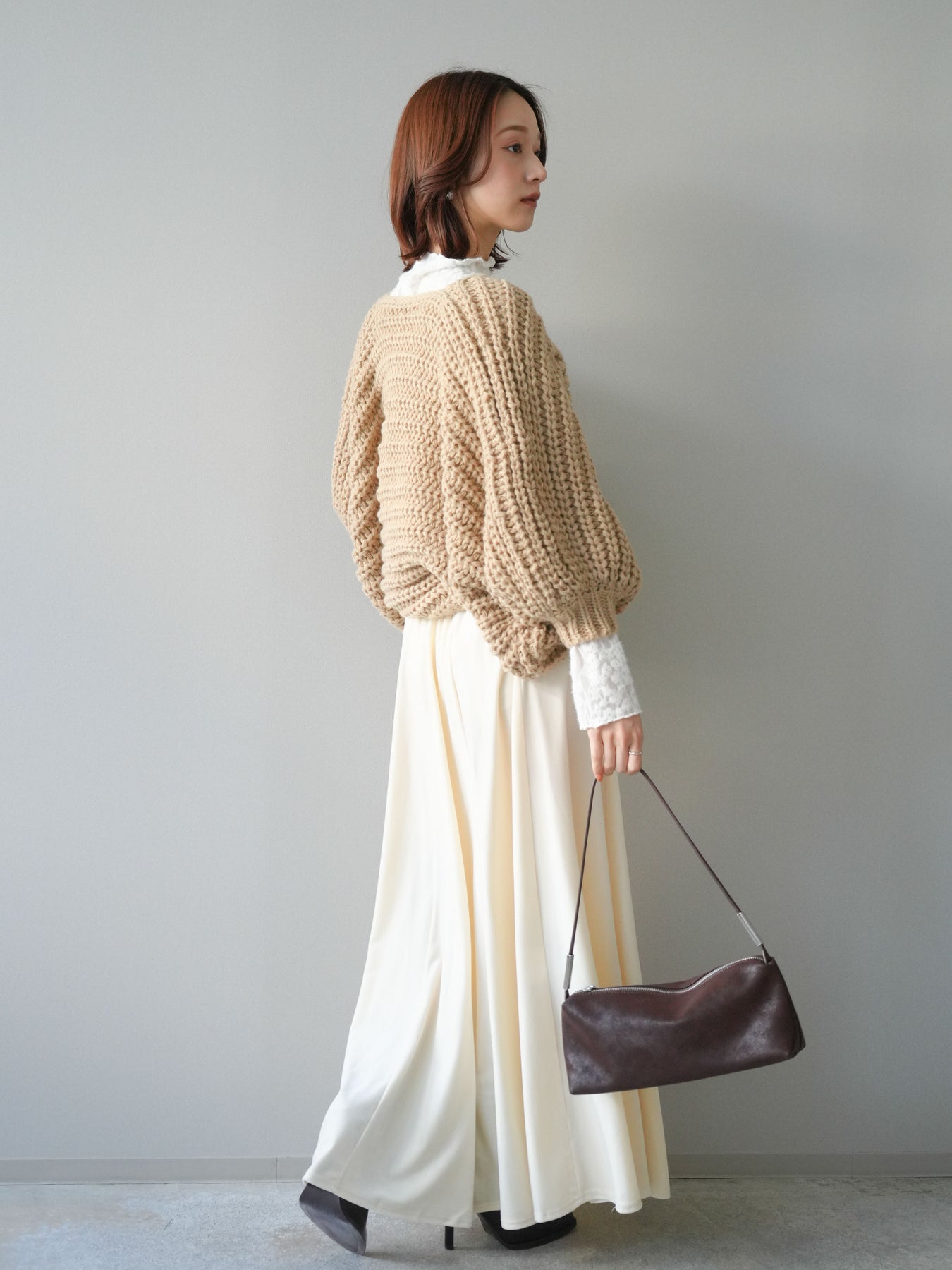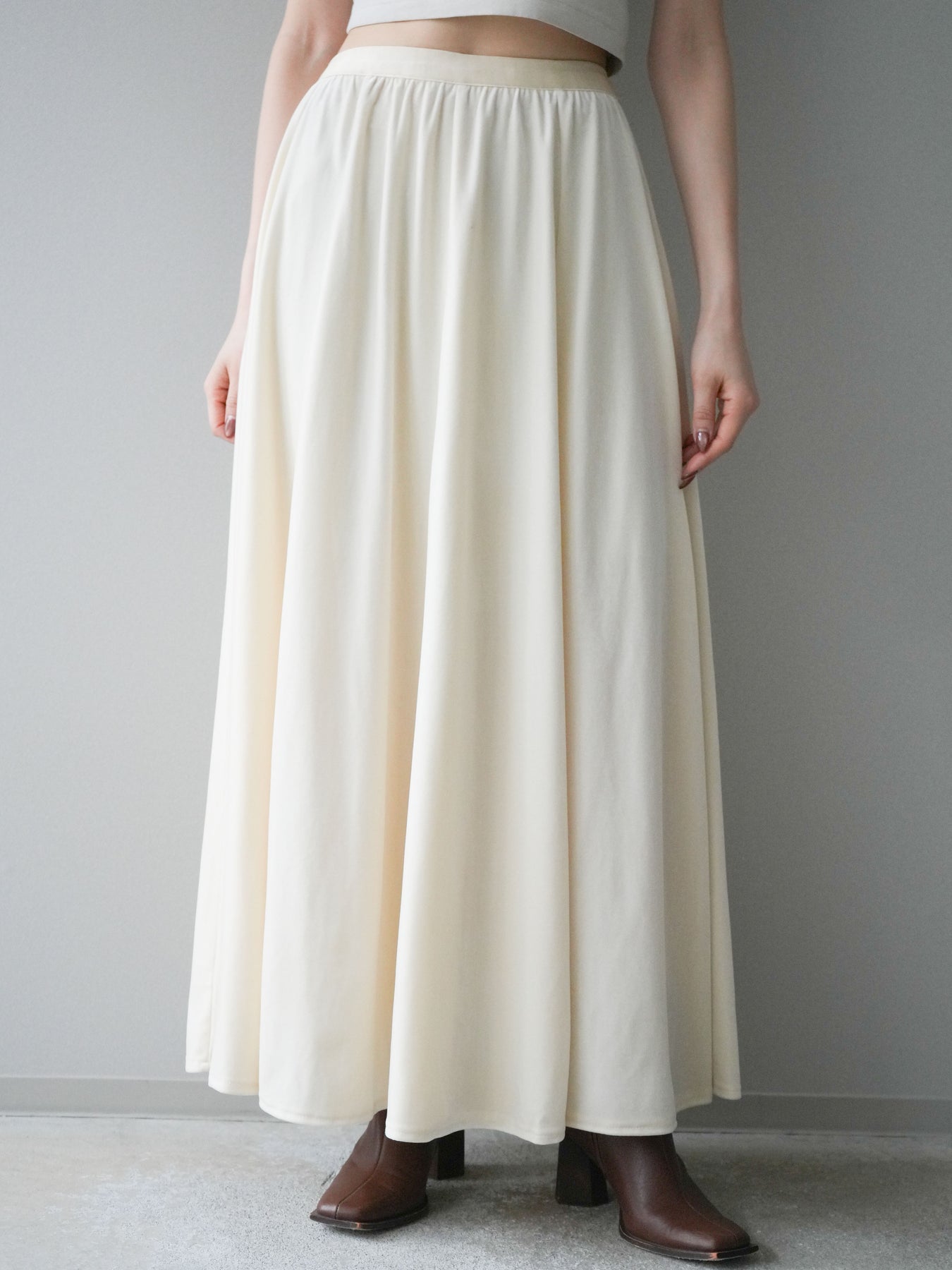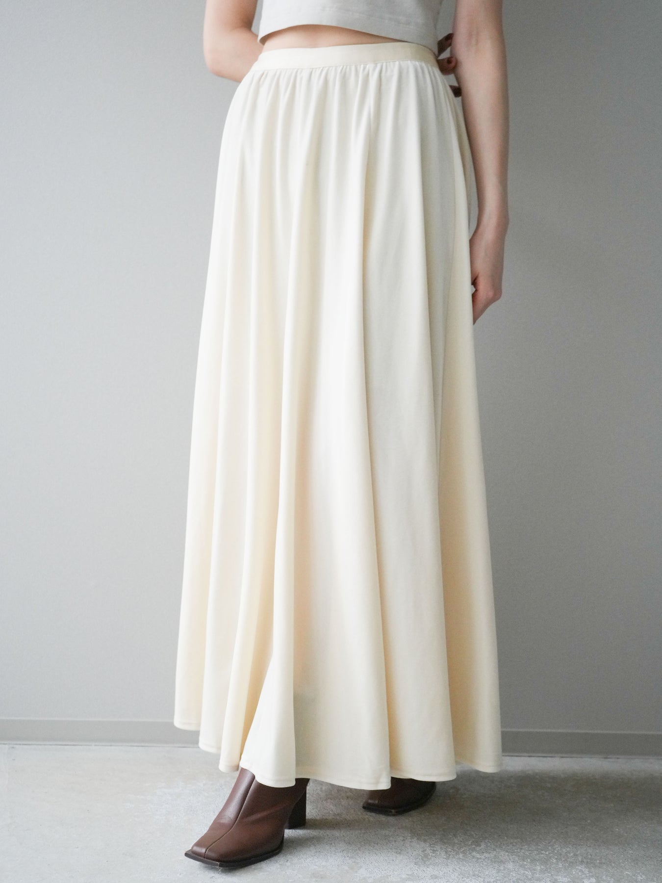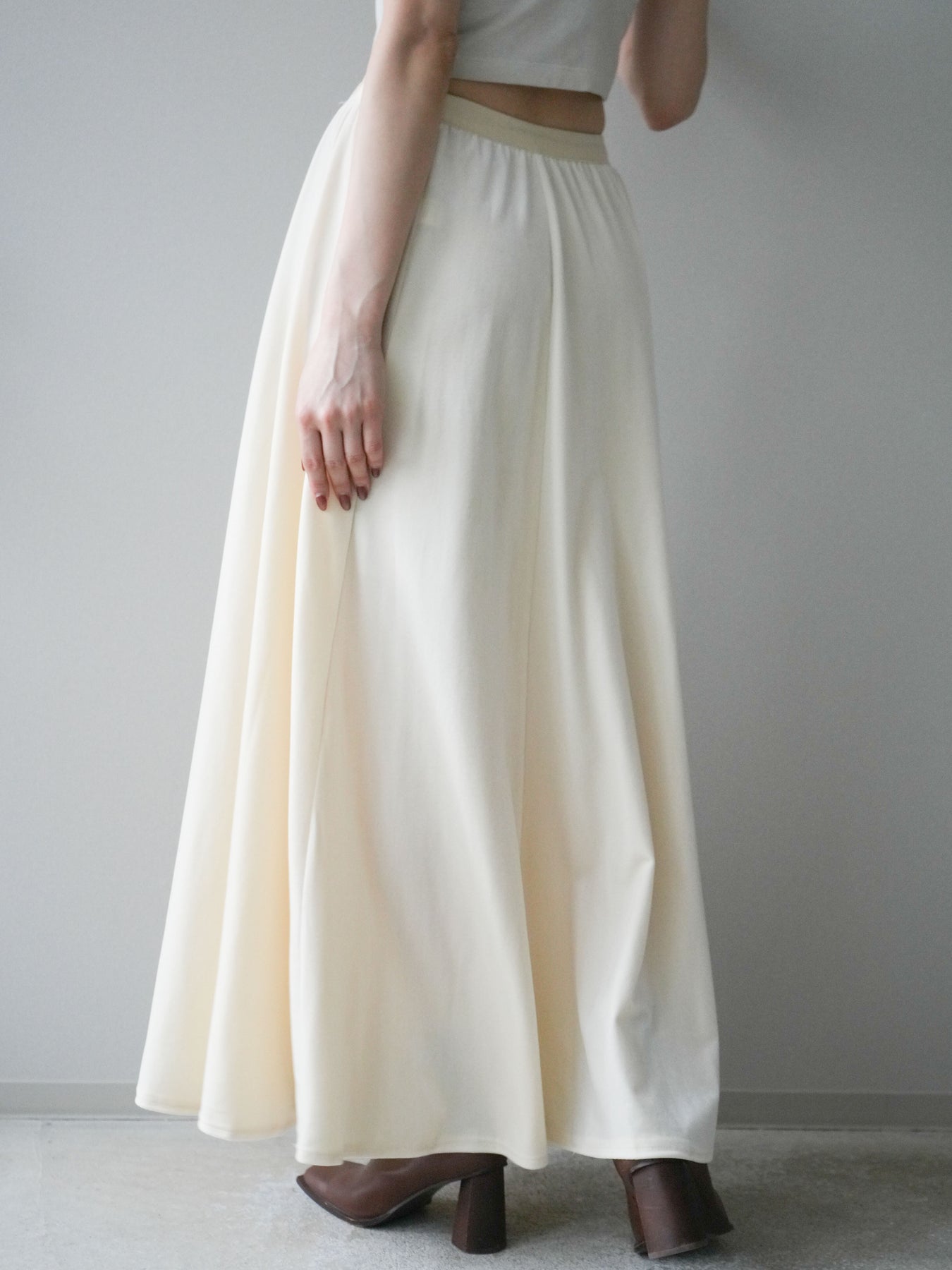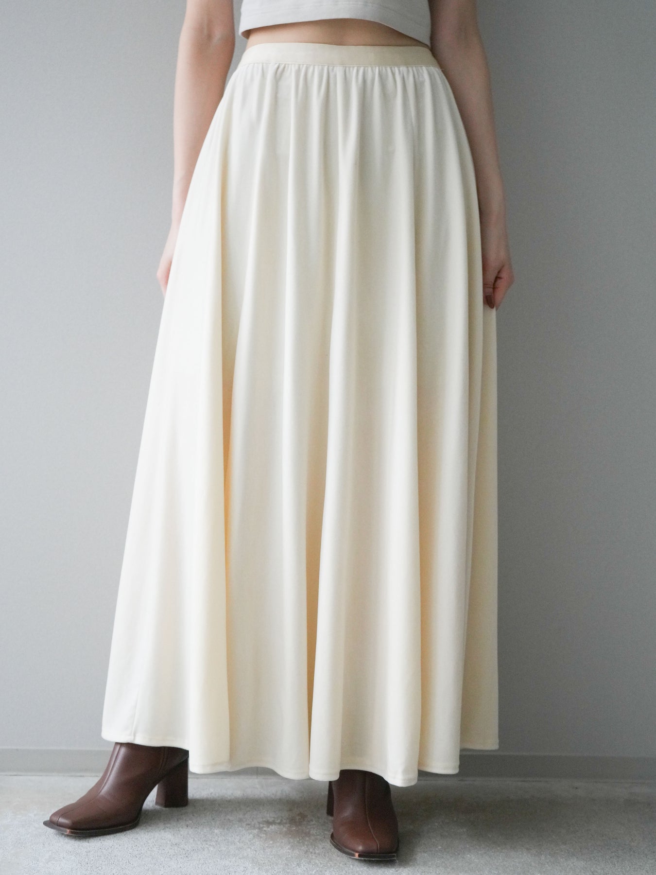 上品な光沢感が魅力のベロア素材を使用したフレアスカート。 柔らかくしなやかな質感が美しいドレープを生み、動くたびに華やかな印象を与えます。 ウエストは総ゴム仕様でリラックス感がありながらも、自然な落ち感でシルエットをすっきりと演出。 シンプルなデザインながらも存在感があり、ニットやブラウスなど幅広いトップスと好相性です。 デイリーから特別なシーンまで活躍する、シーズンライクな万能スカートです。 ※ボトムス、キャミソール(インナー)以外の商品は一律でインナーは付属していません。