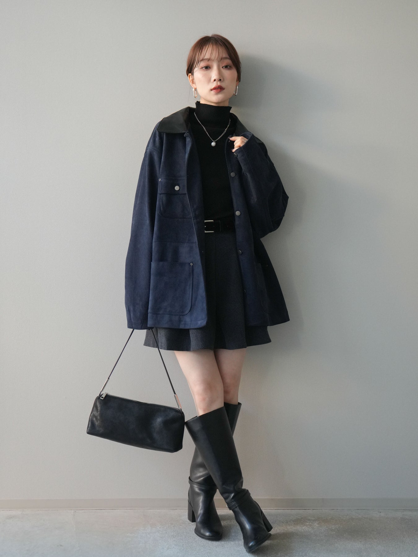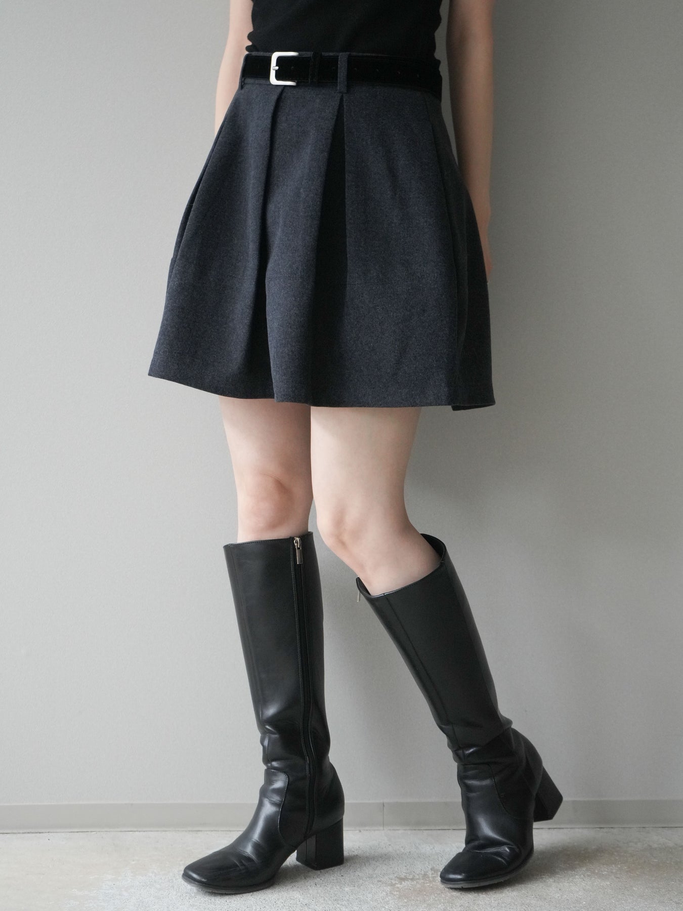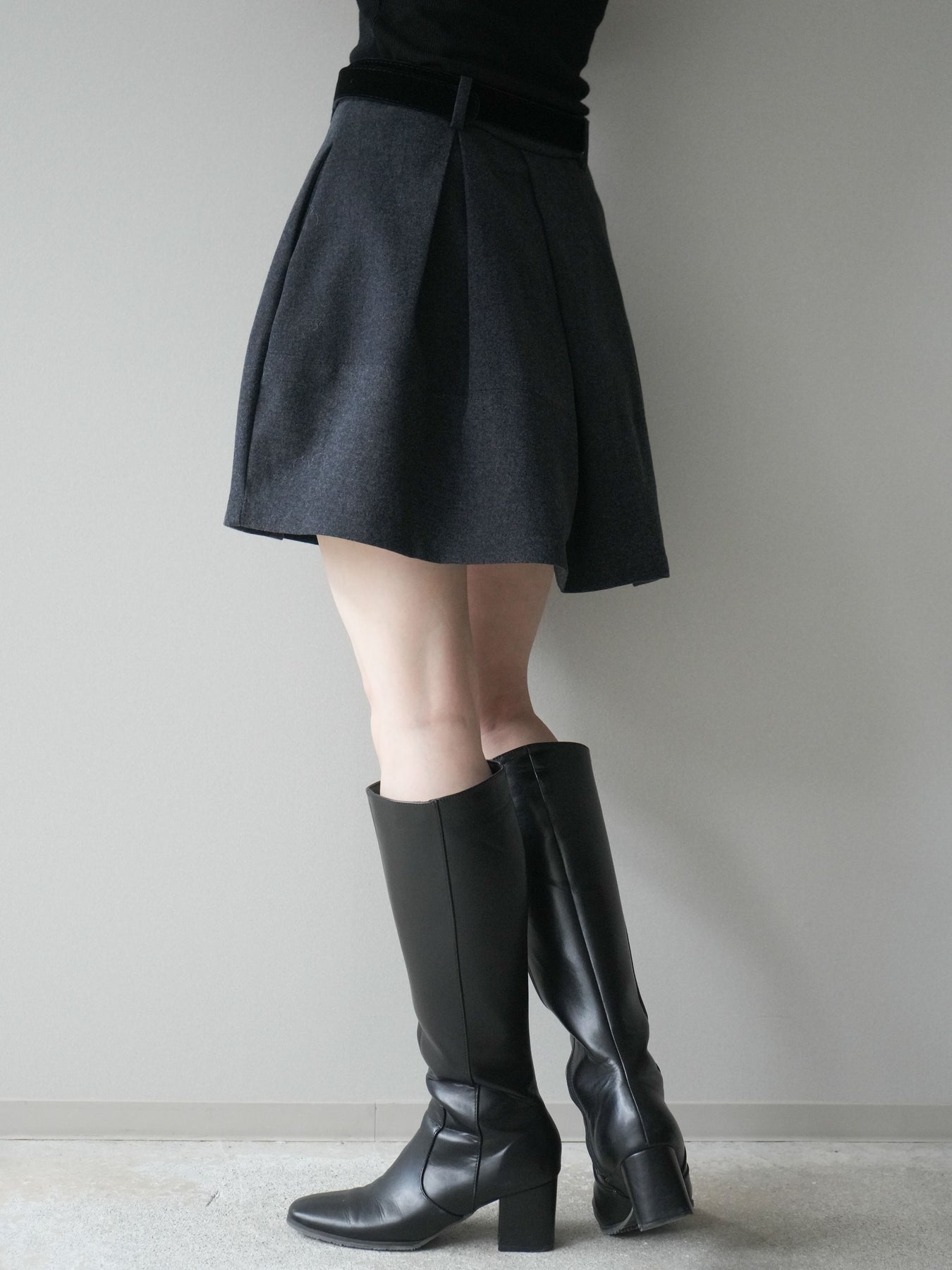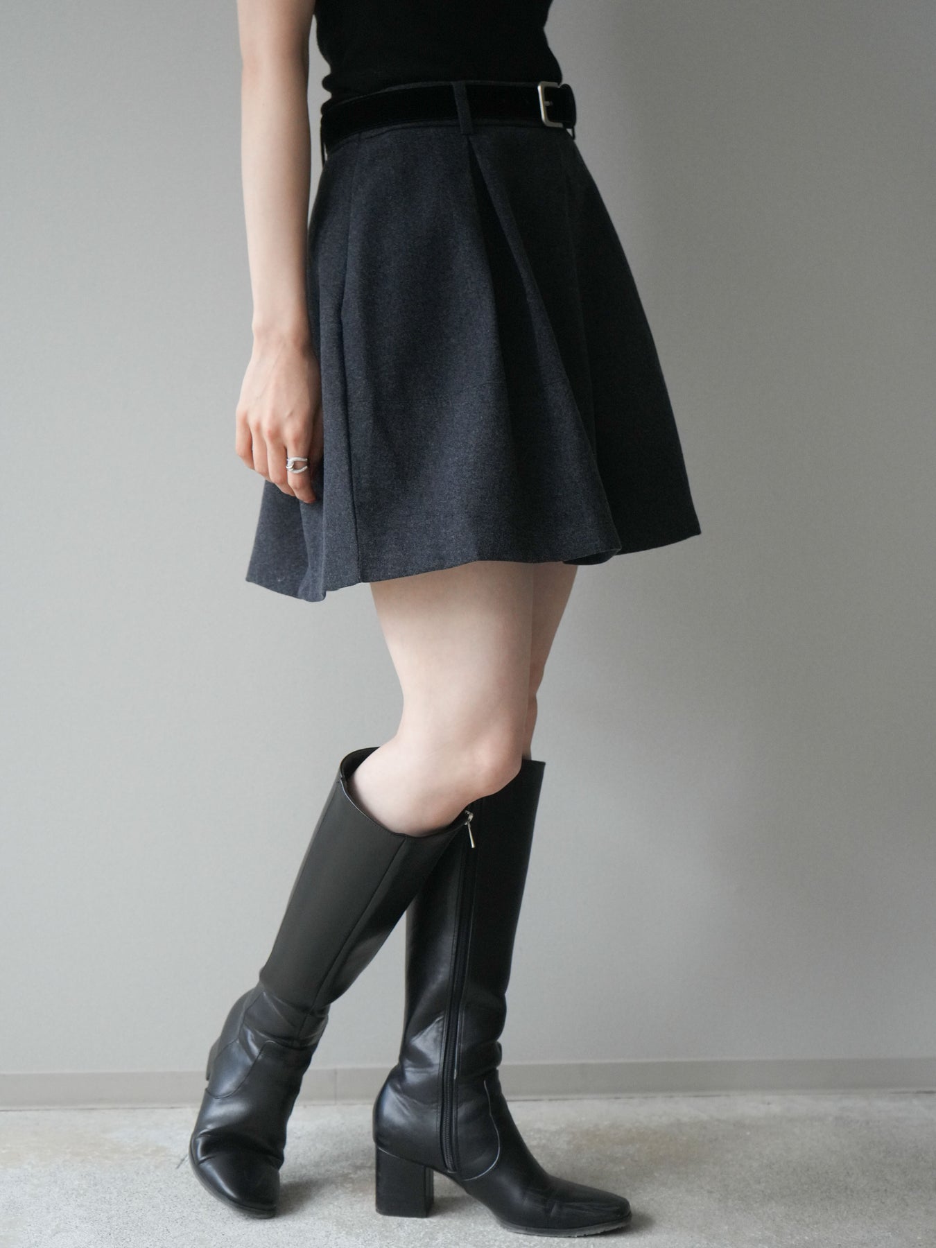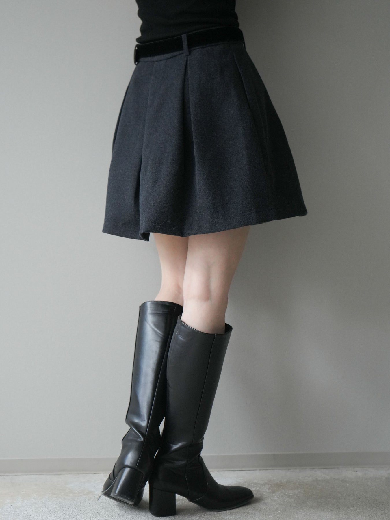 フロントに深めのタックを施し、立体感のあるシルエットに仕上げたミニスカート。ほどよいハリのある素材が美しいAラインをキープし、脚をすっきりと見せてくれます。ウエストには上品なベルトをセットし、スタイリングのアクセントになるだけでなく、スタイルアップ効果もプラス。ブーツやパンプスなど幅広いシューズと相性が良く、シンプルなトップスを合わせるだけで大人らしいバランスに仕上がる万能アイテムです。