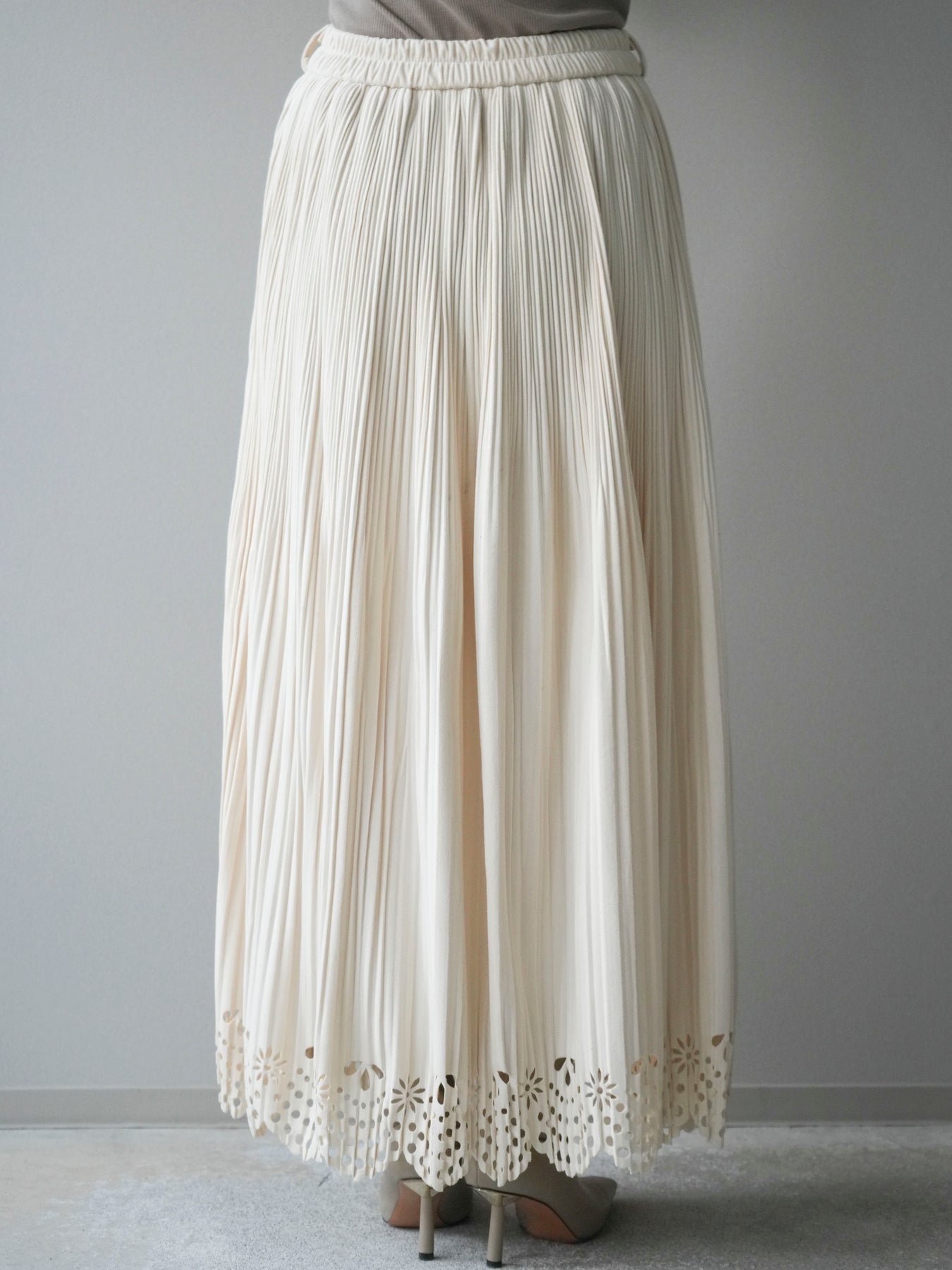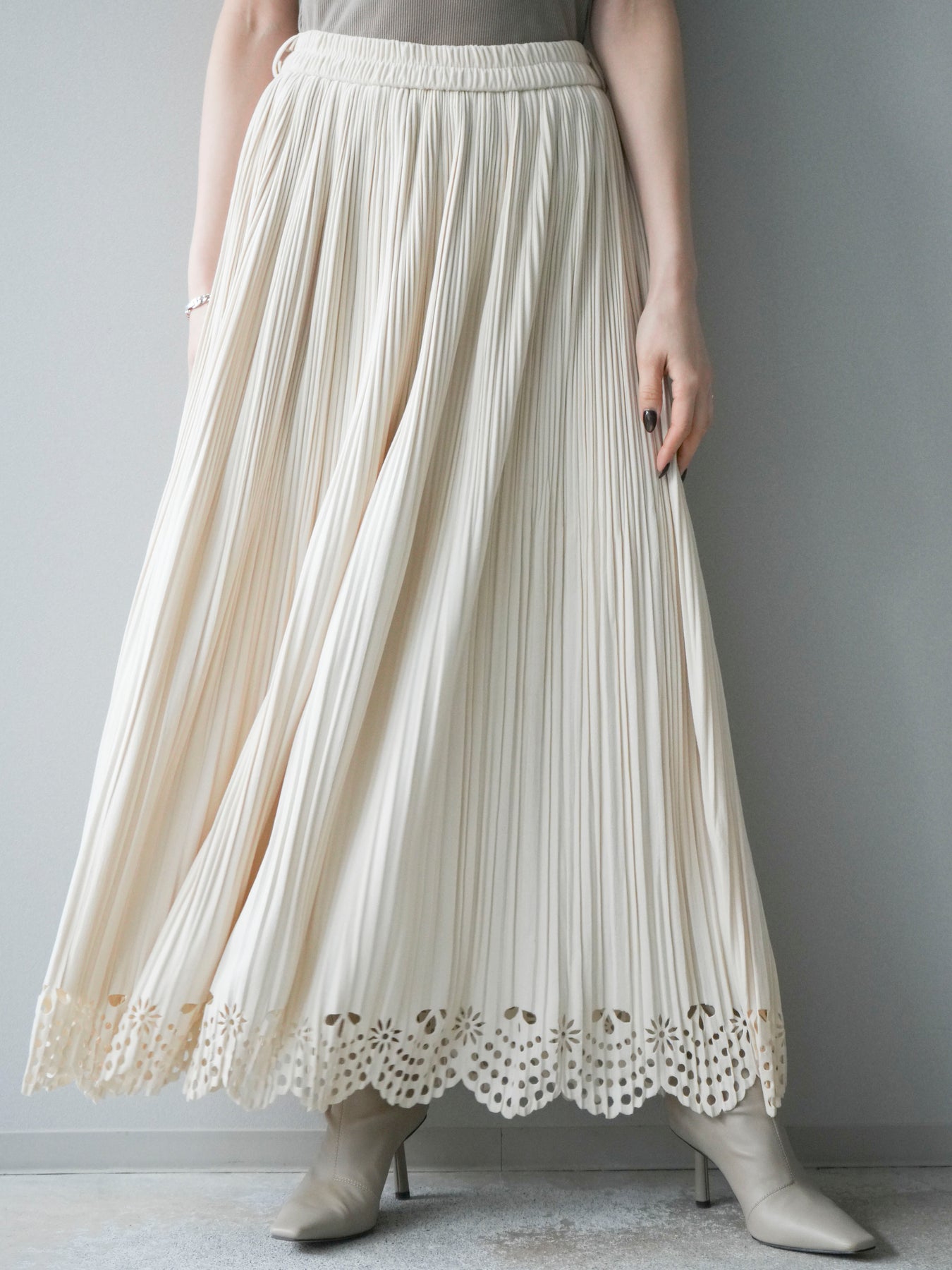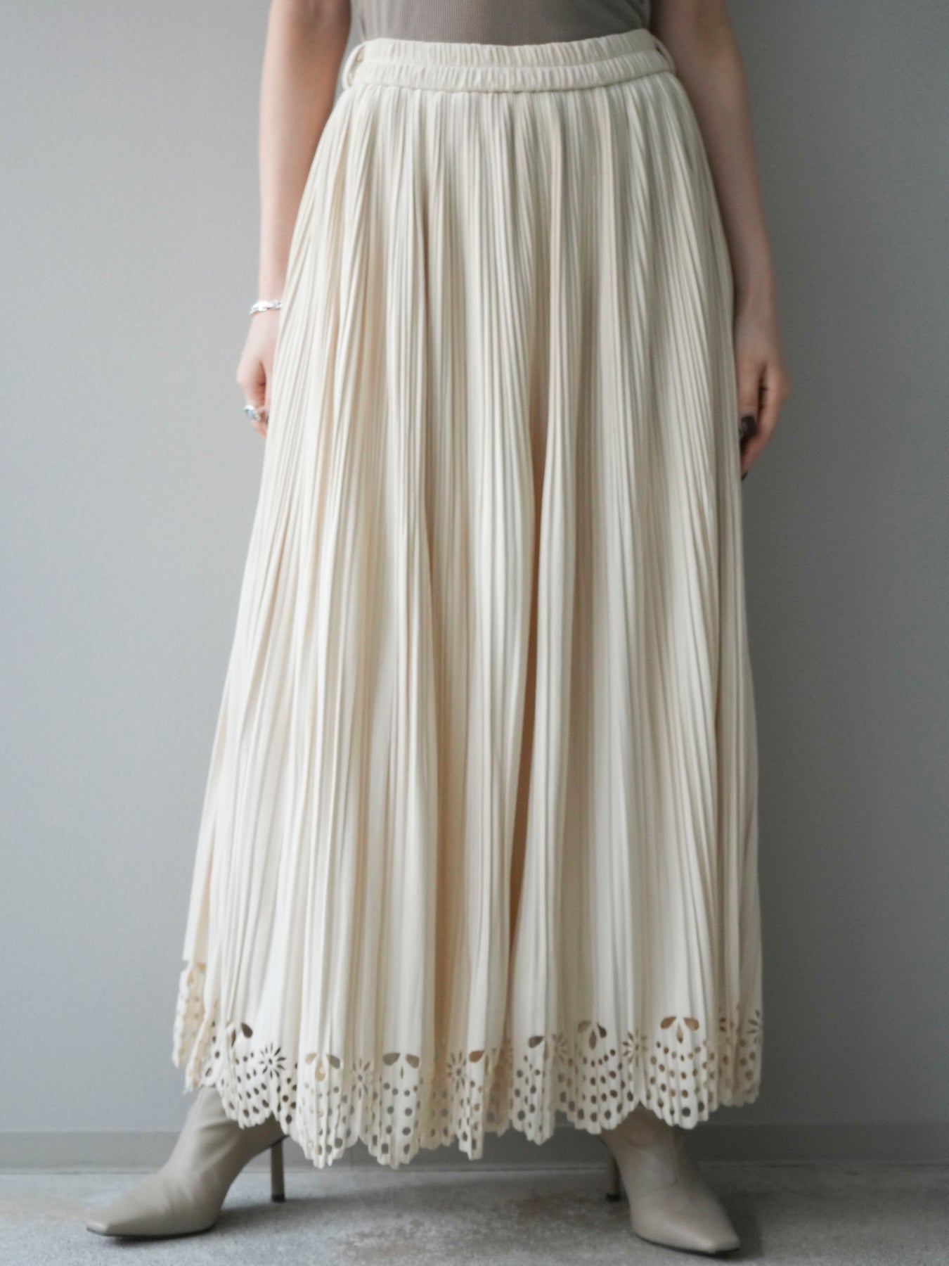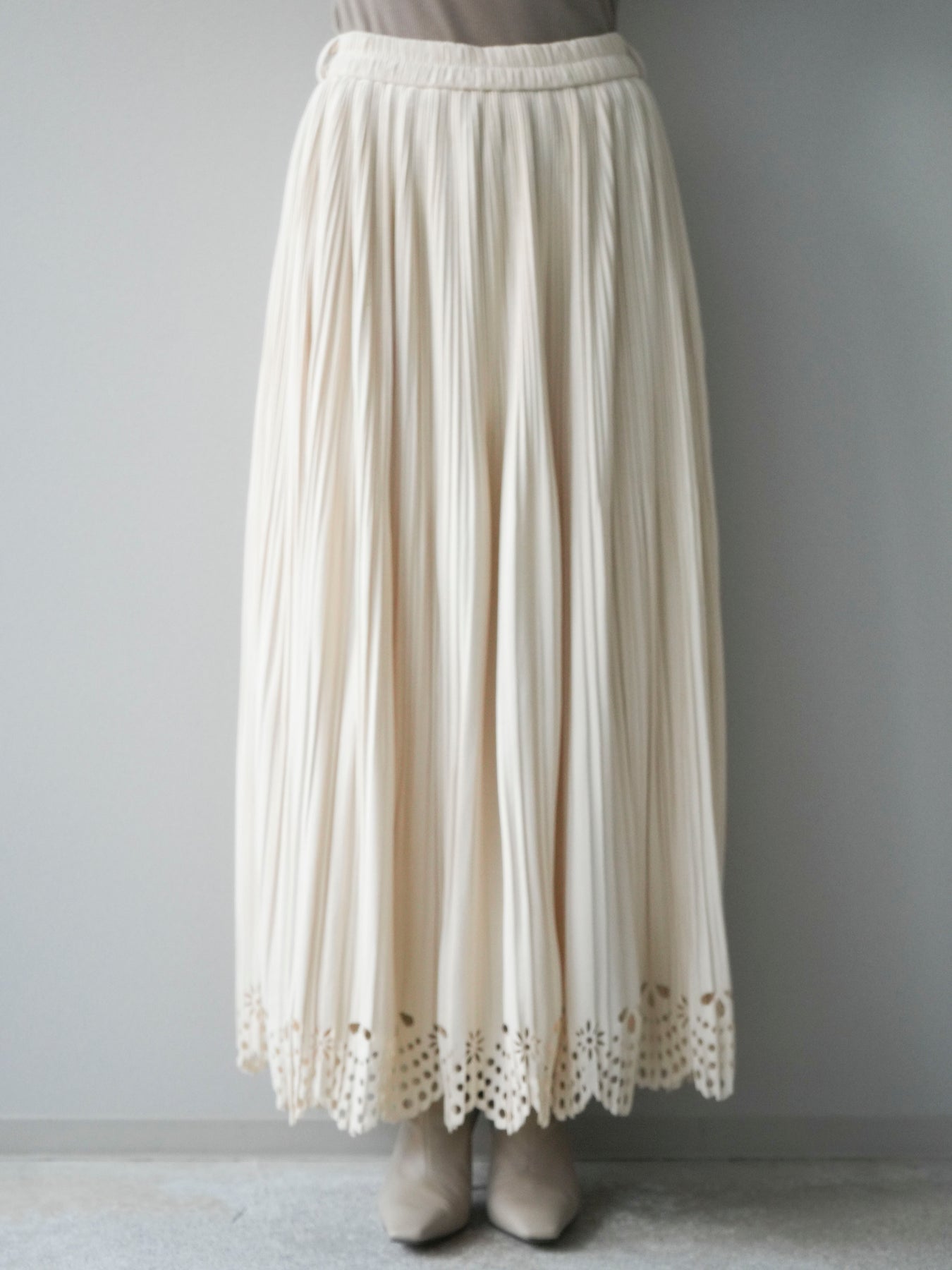 [予約]パンチングデザインスエードプリーツスカート/ivory