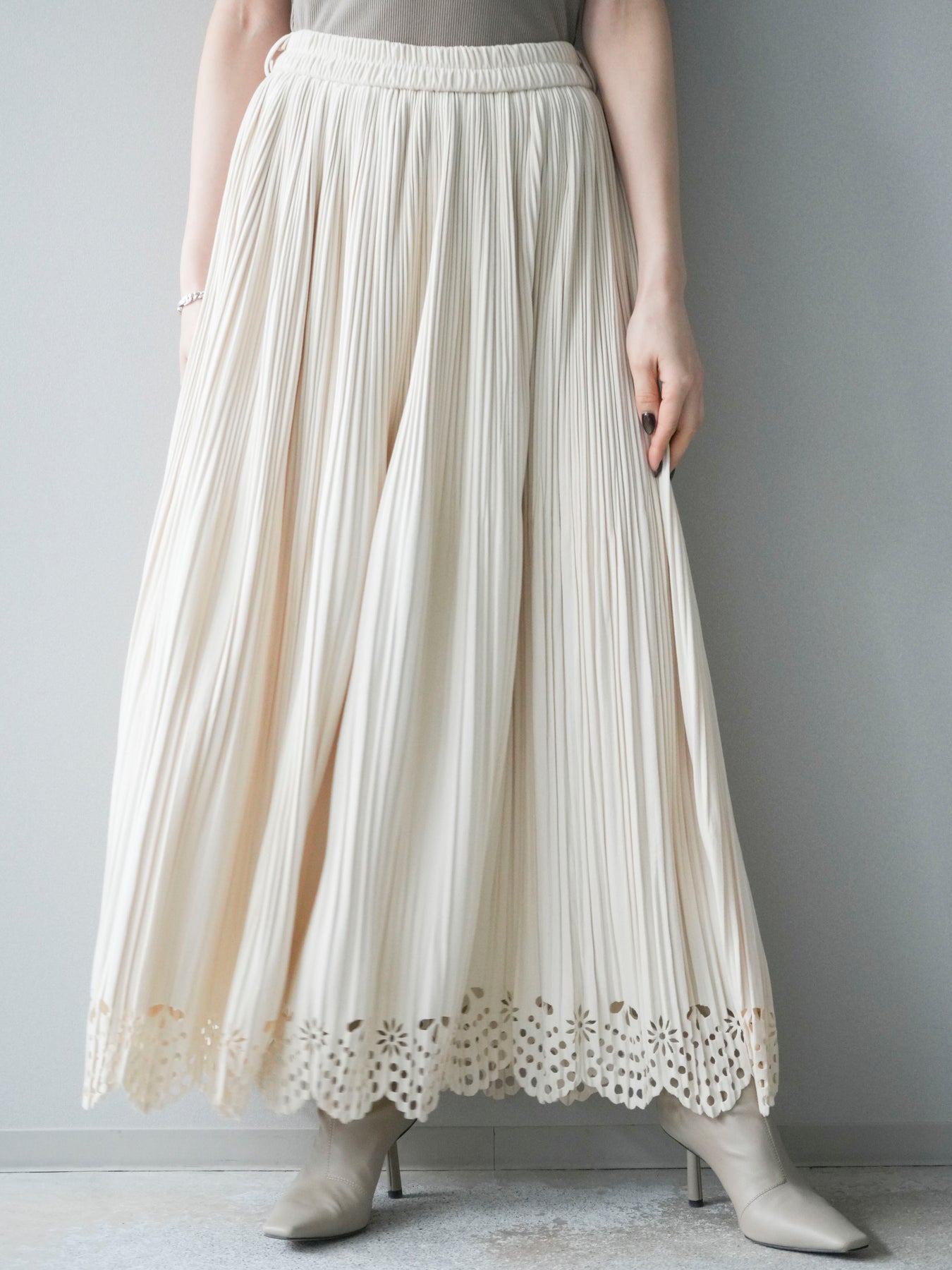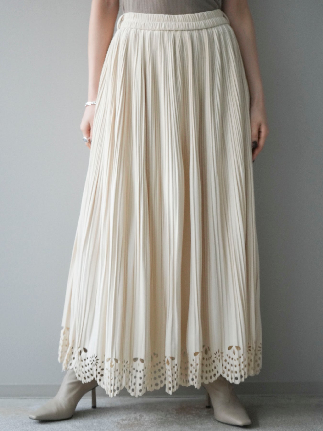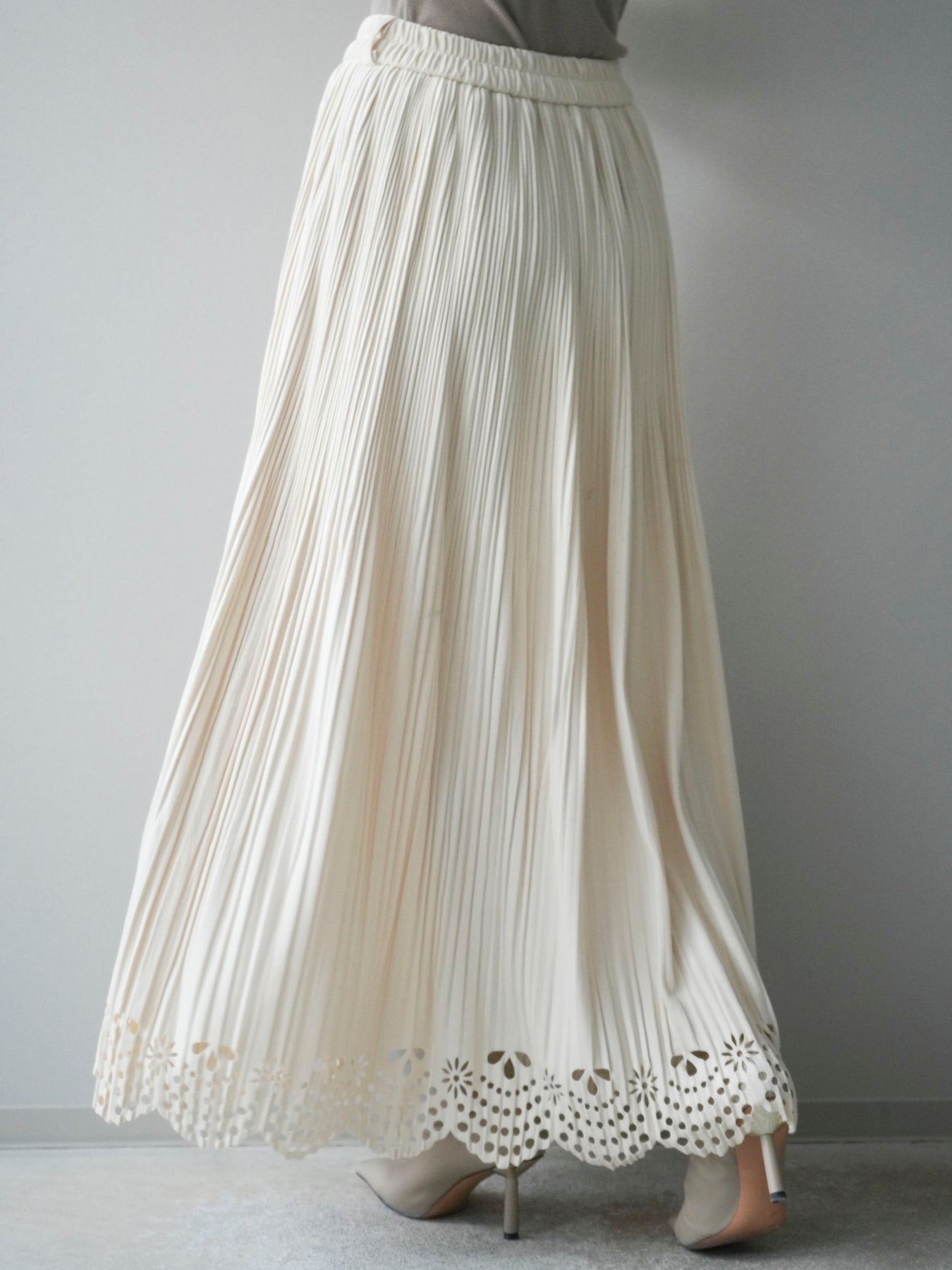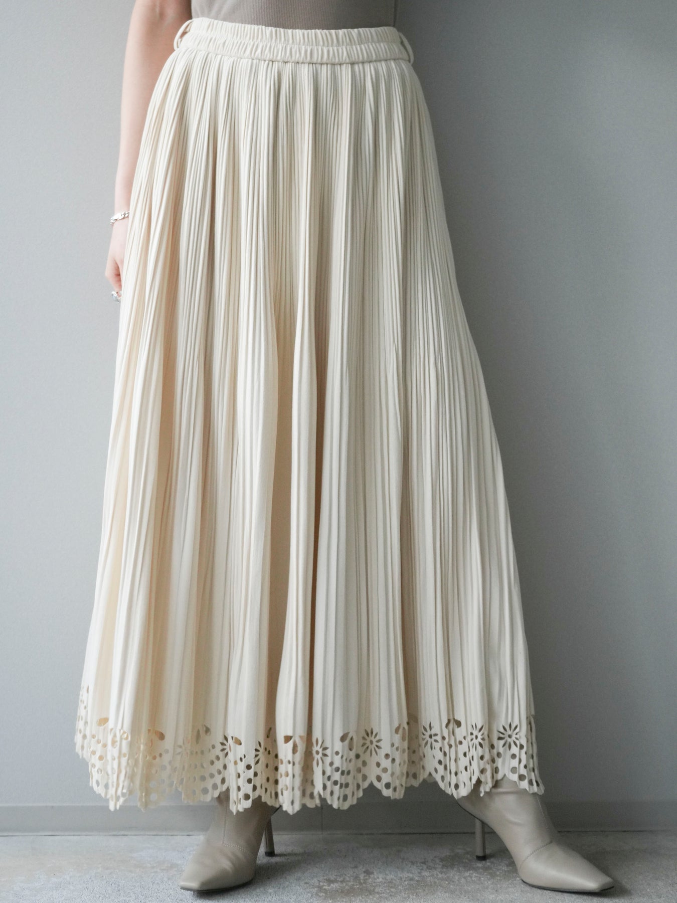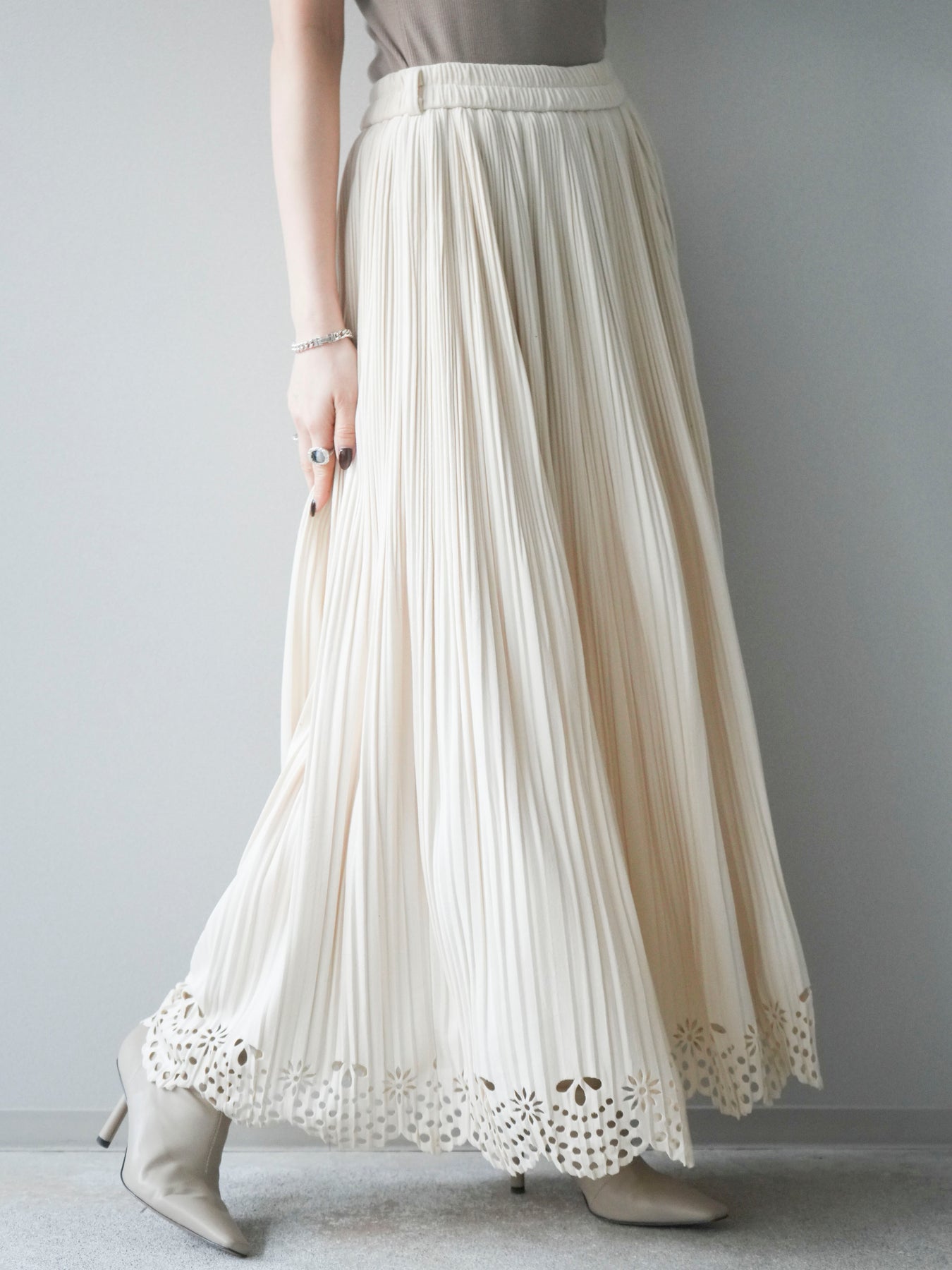 [予約]パンチングデザインスエードプリーツスカート/ivory