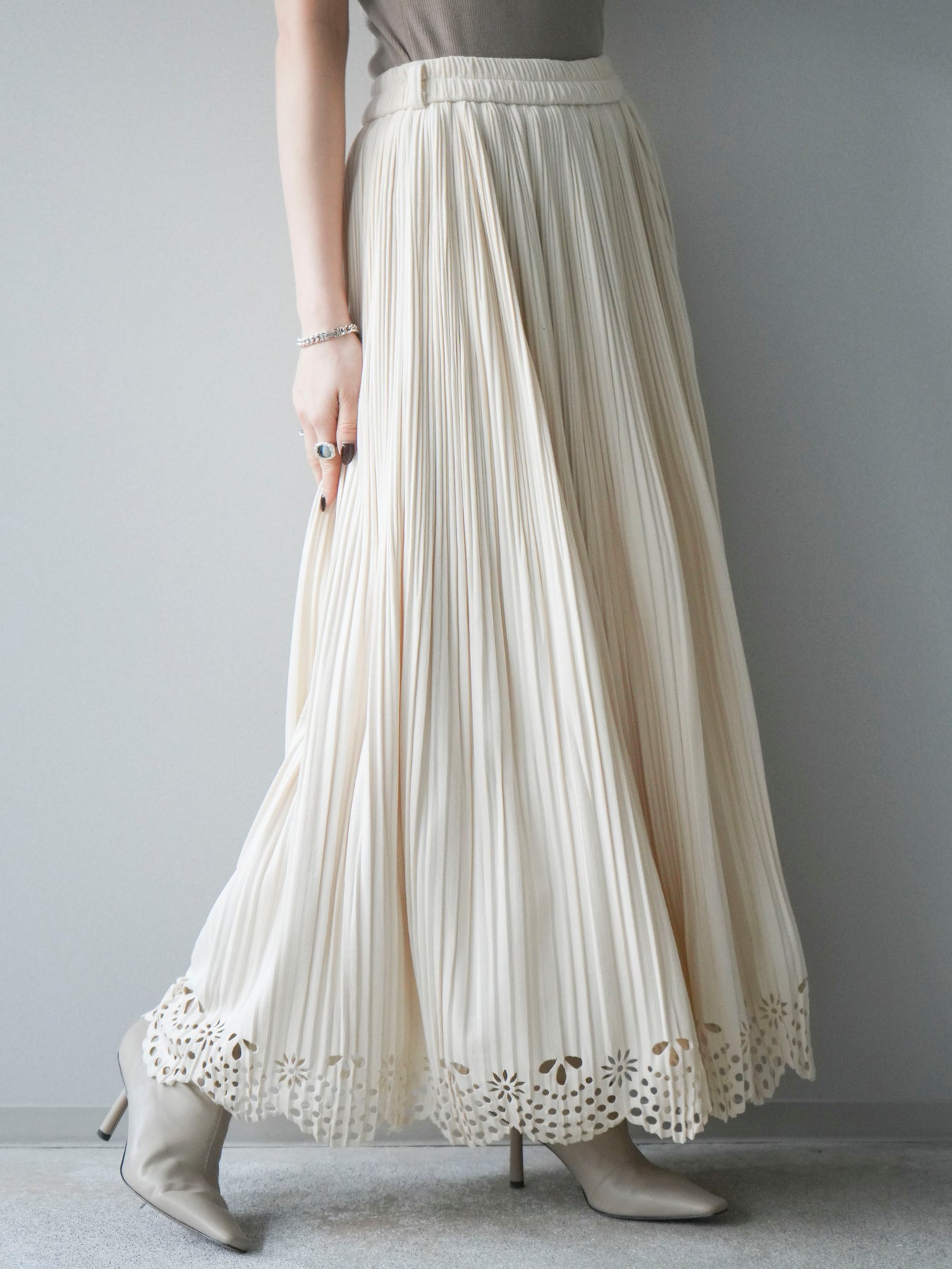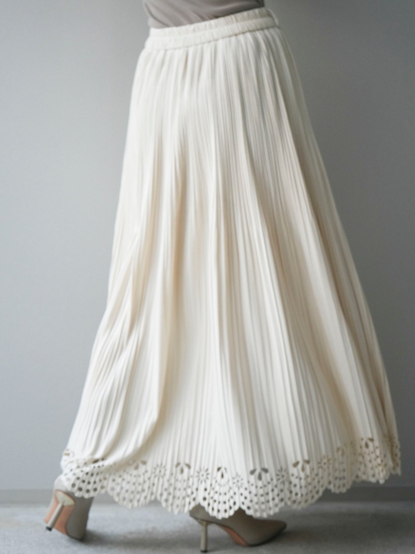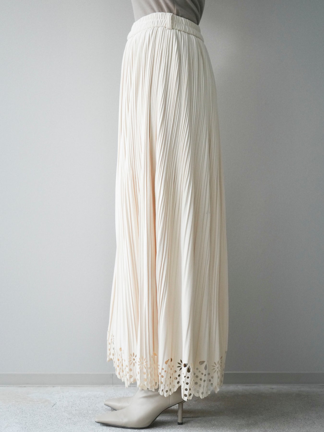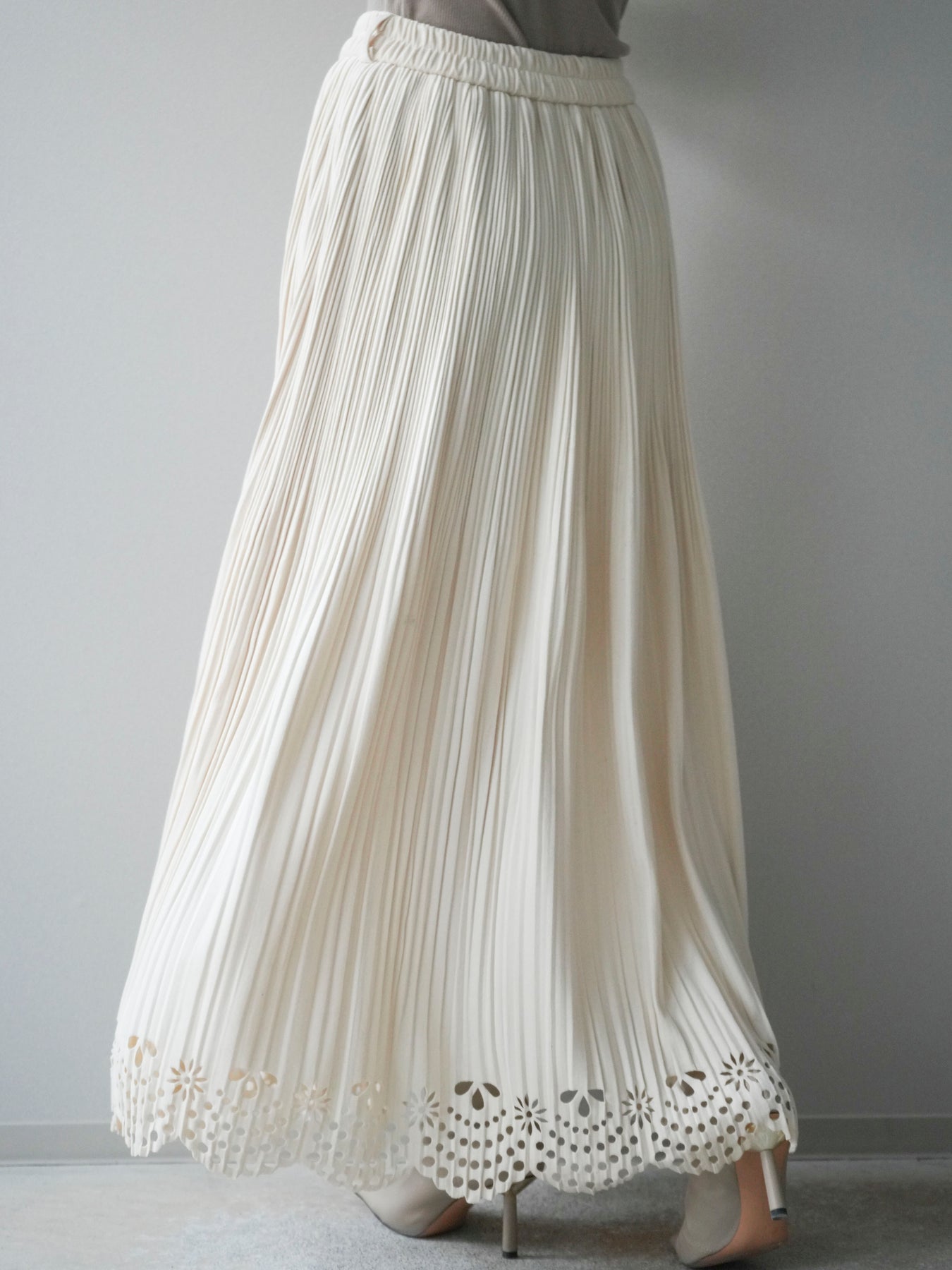 [予約]パンチングデザインスエードプリーツスカート/ivory