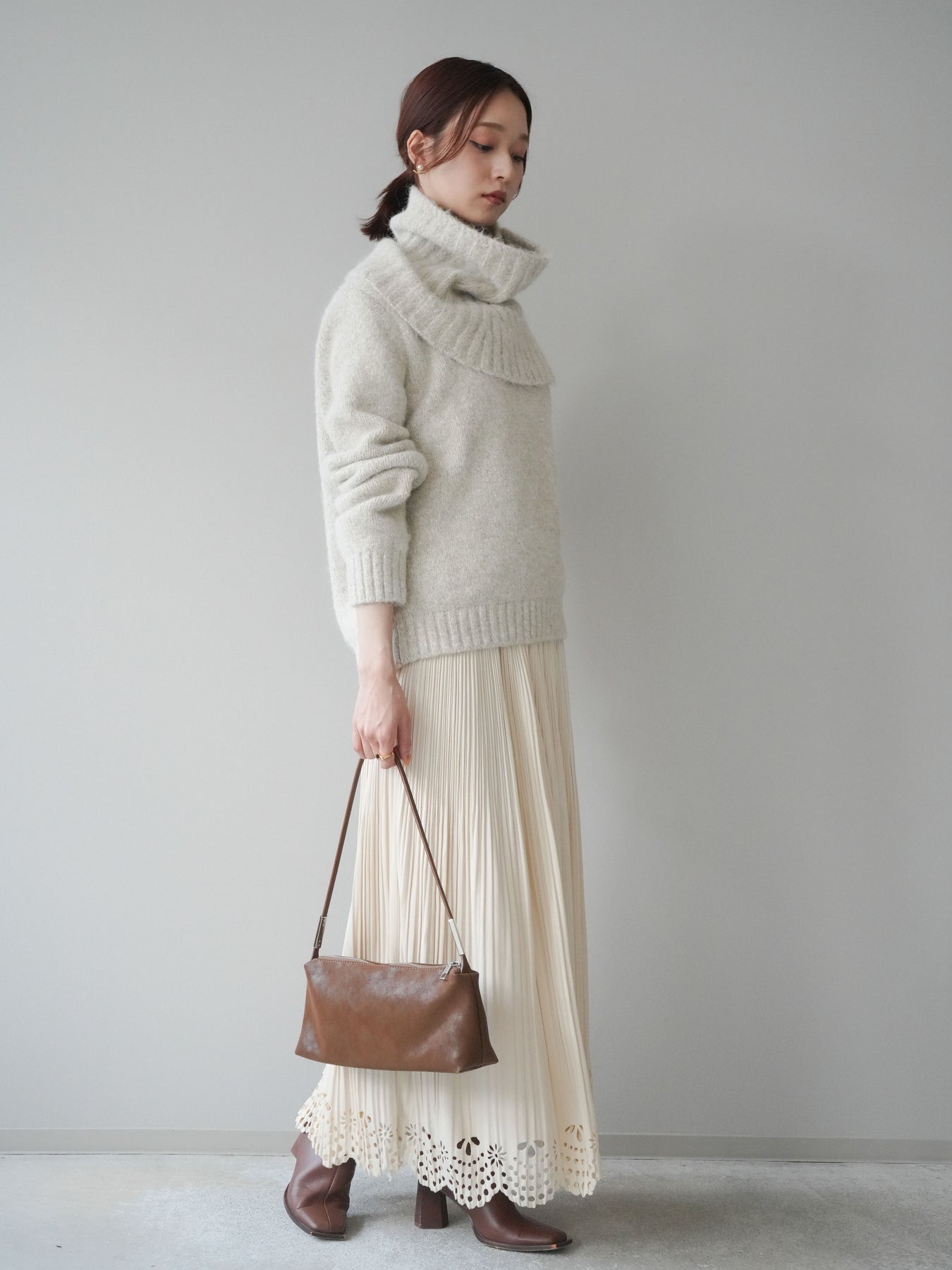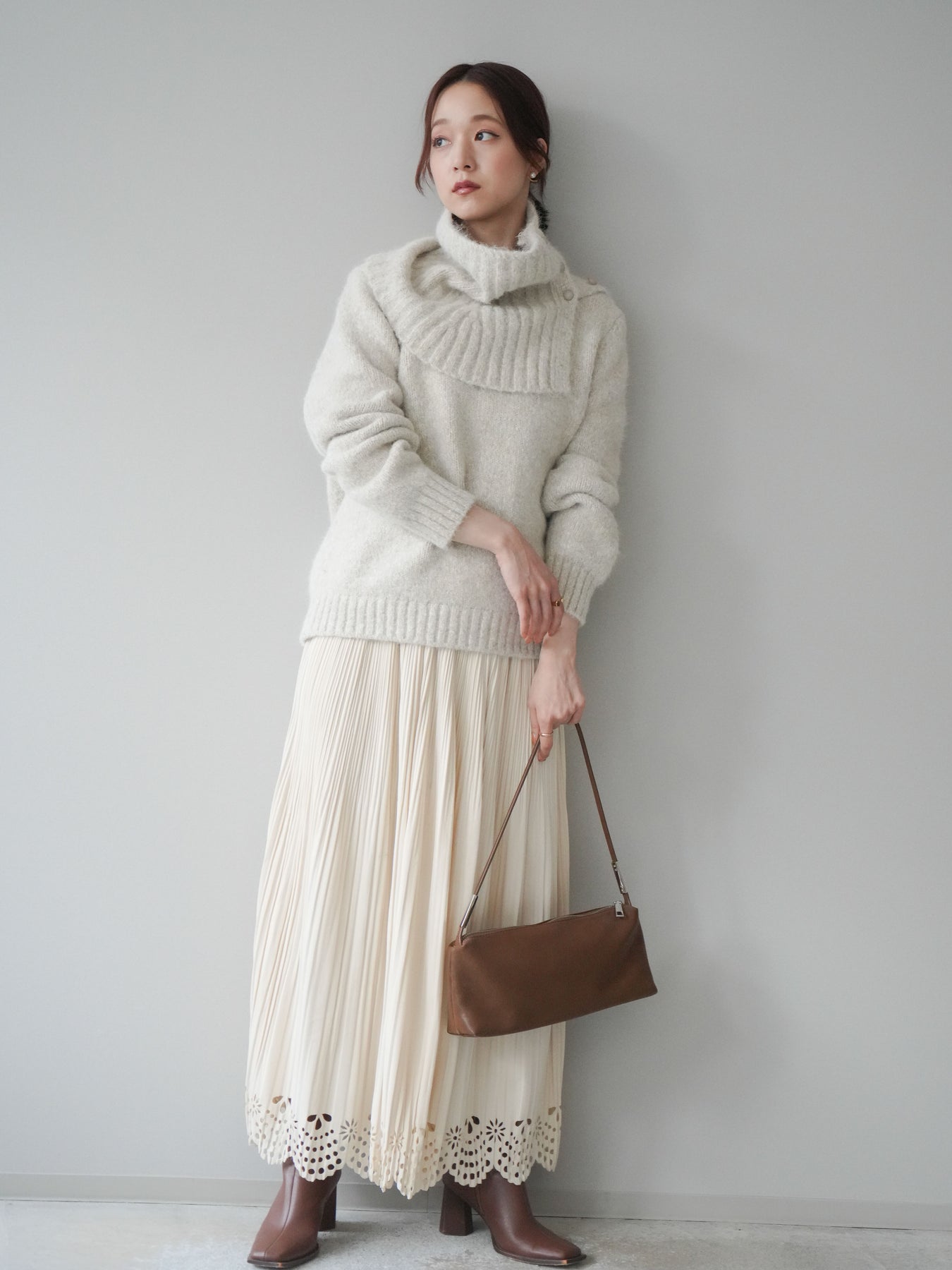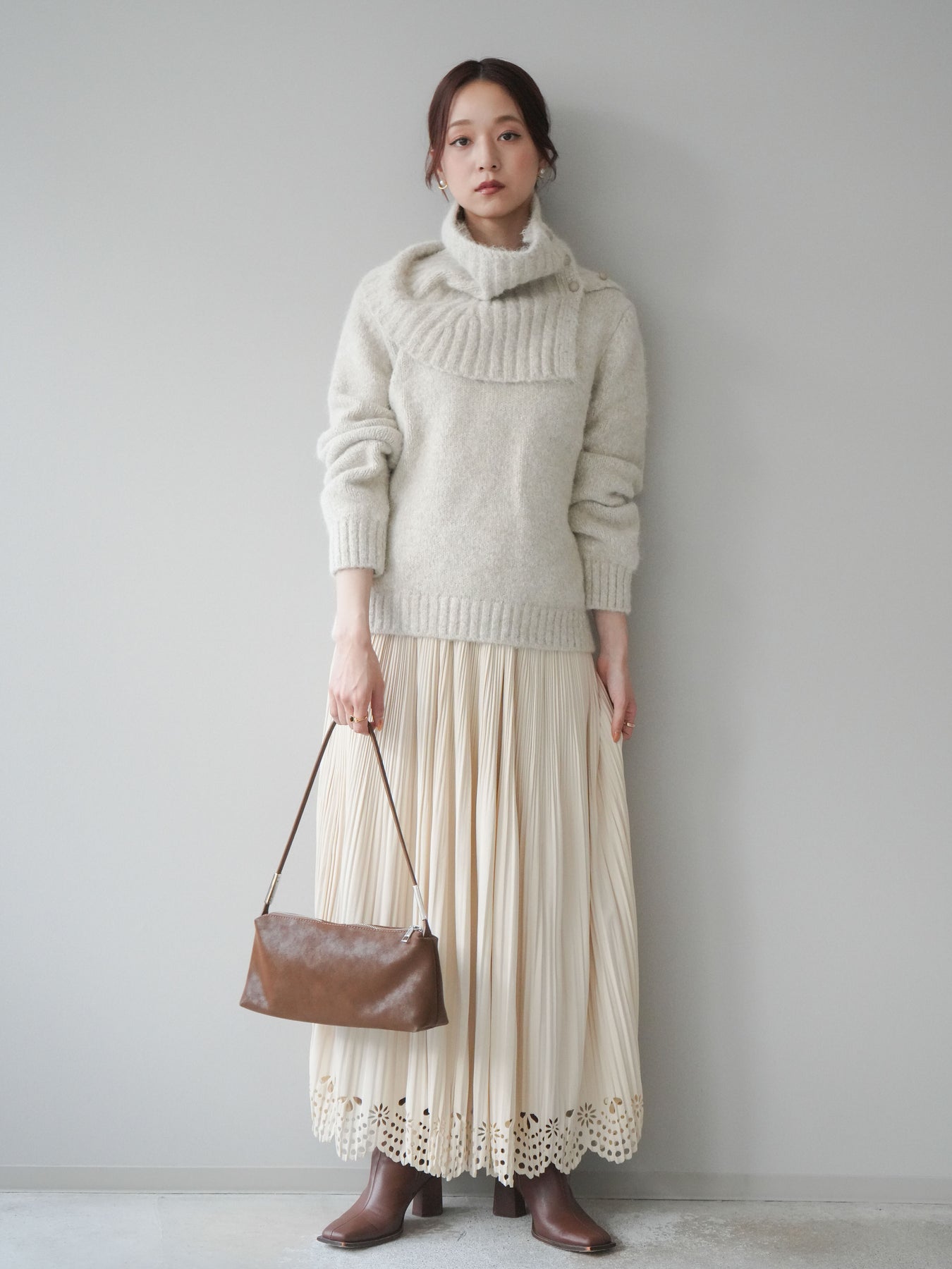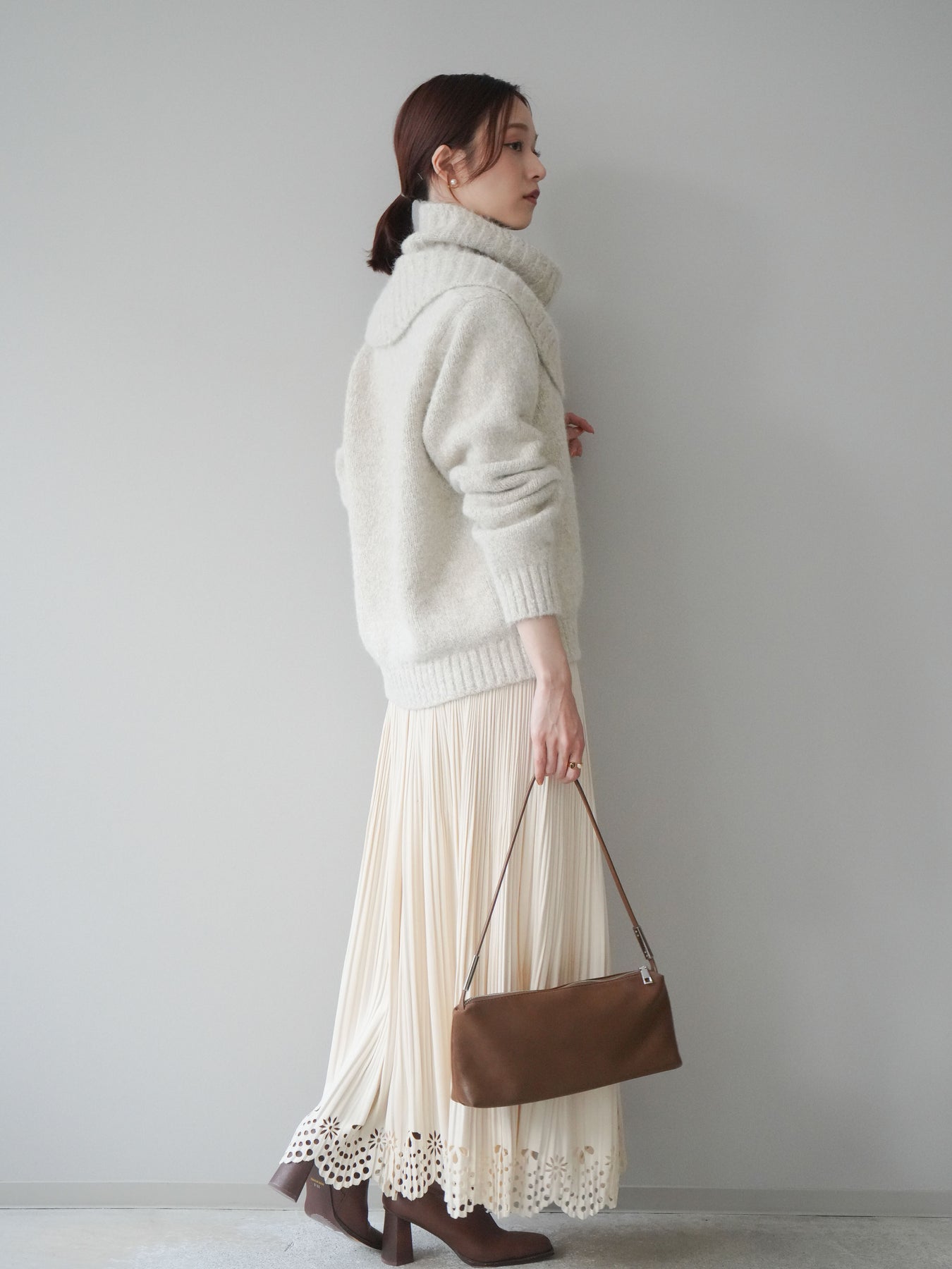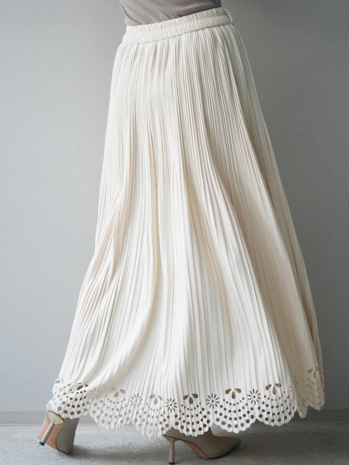 [予約]パンチングデザインスエードプリーツスカート/ivory