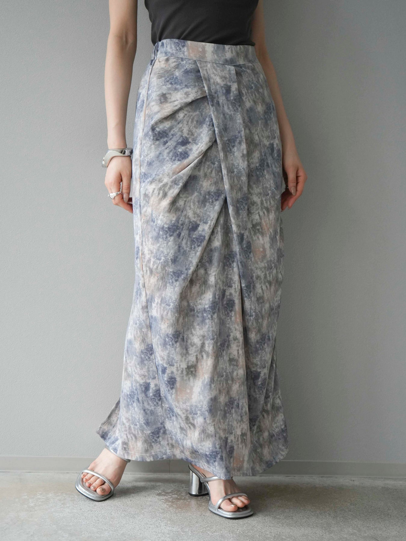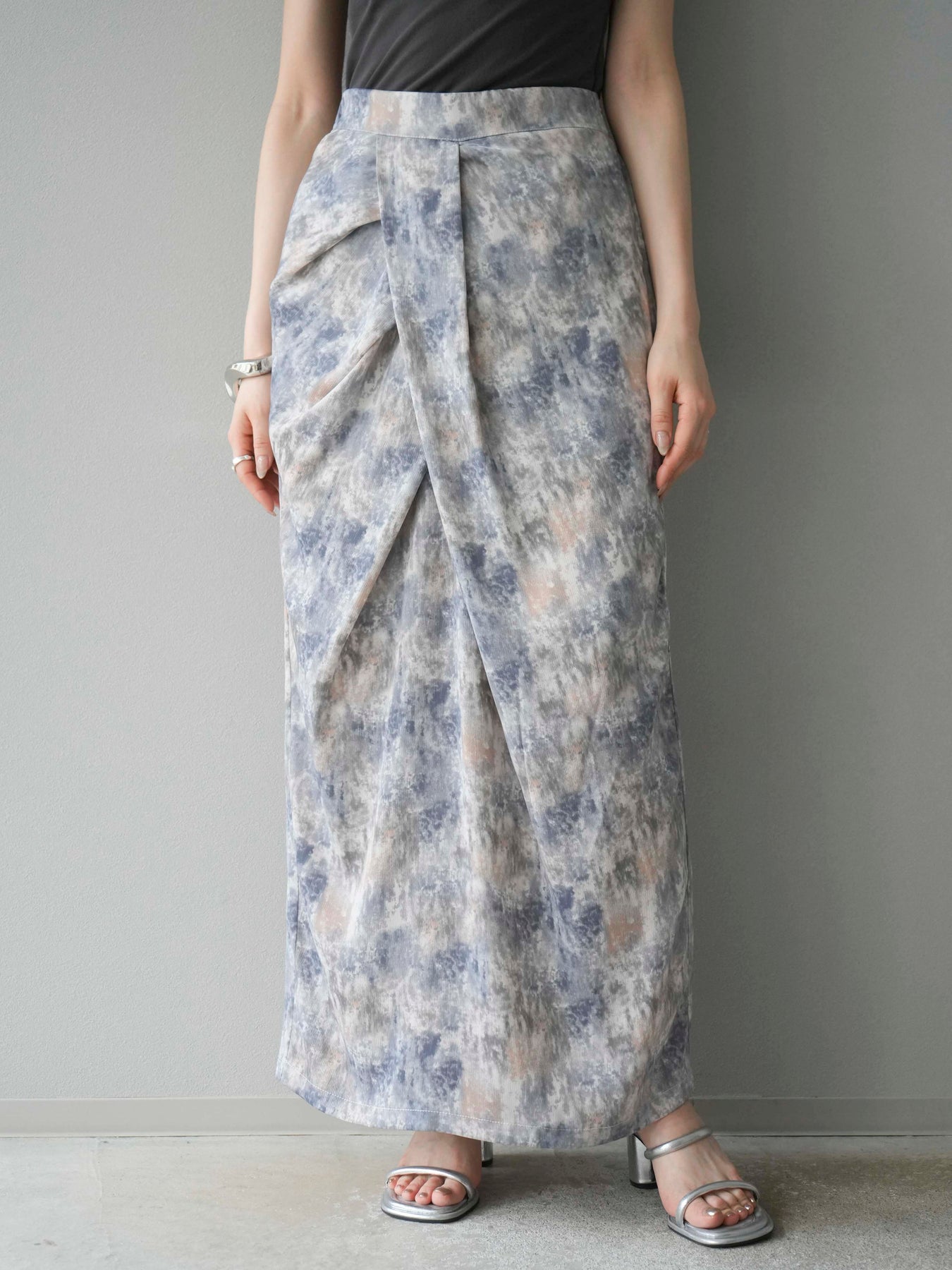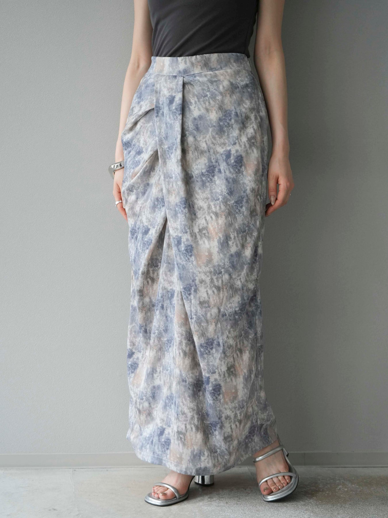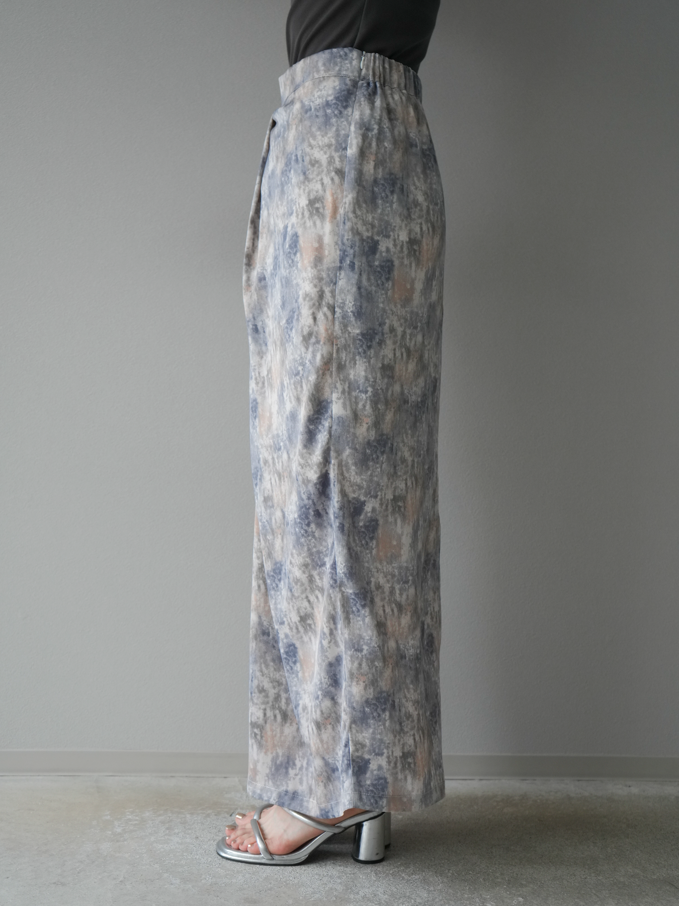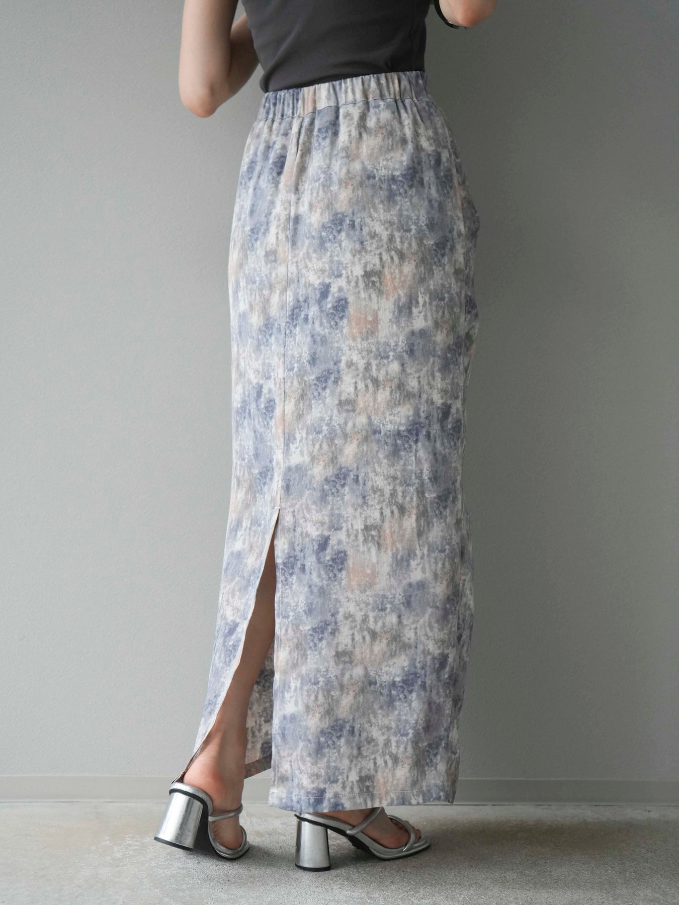 水彩アート風のプリントが目を惹く、トレンド感満載のIラインスカート。タックディテールで立体感を演出し、縦ラインを強調することでスタイルアップ効果も期待できます。柔らかく落ち感のある素材で、女性らしいしなやかなシルエットに。Tシャツやブラウスなど、幅広いトップスと合わせやすく、デイリーからお出かけコーデまで活躍する一枚です。 ※ボトムス、キャミソール(インナー)以外の商品は一律でインナーは付属していません