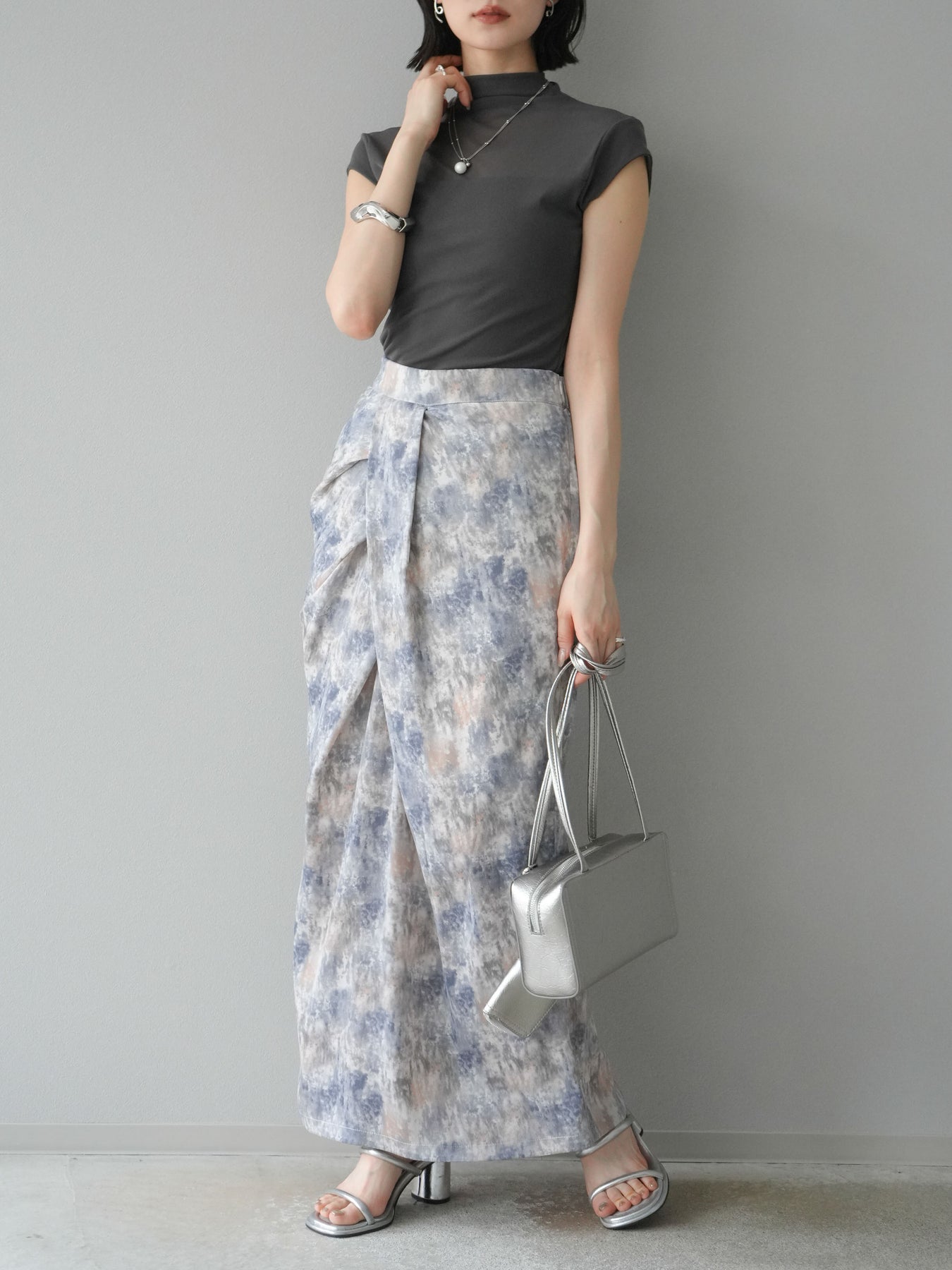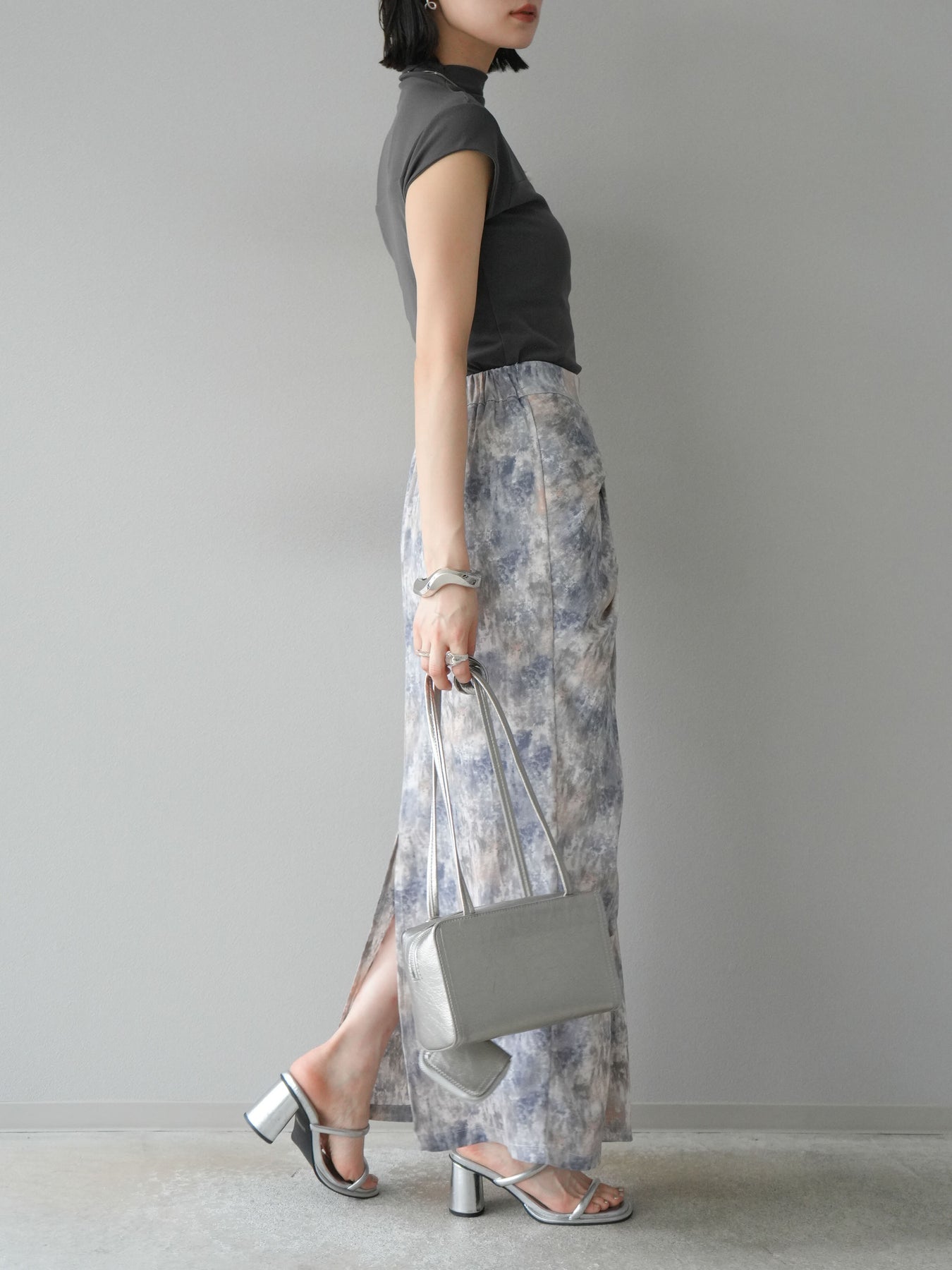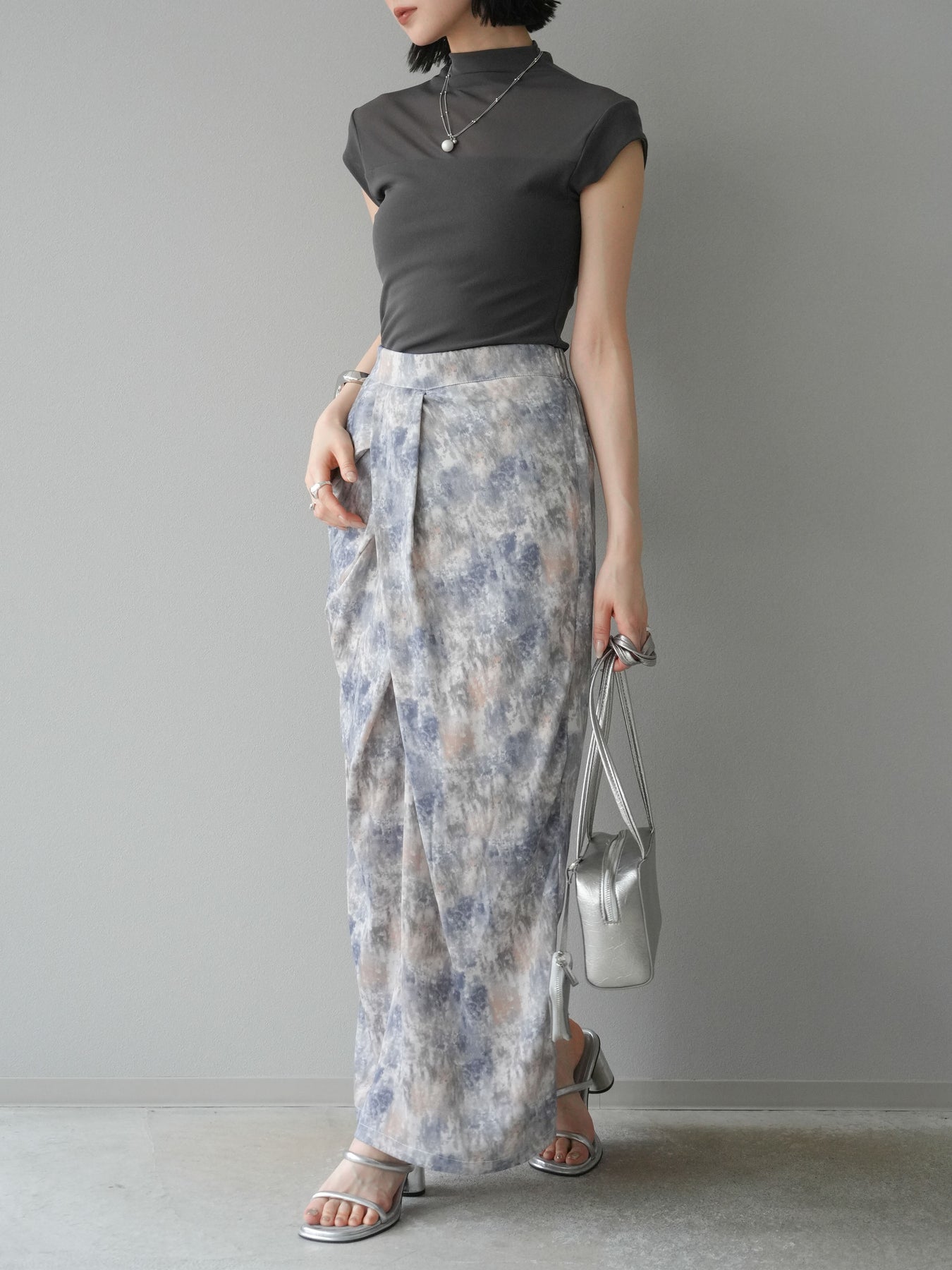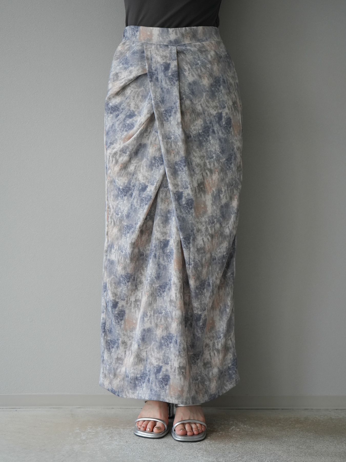 水彩アート風のプリントが目を惹く、トレンド感満載のIラインスカート。タックディテールで立体感を演出し、縦ラインを強調することでスタイルアップ効果も期待できます。柔らかく落ち感のある素材で、女性らしいしなやかなシルエットに。Tシャツやブラウスなど、幅広いトップスと合わせやすく、デイリーからお出かけコーデまで活躍する一枚です。 ※ボトムス、キャミソール(インナー)以外の商品は一律でインナーは付属していません