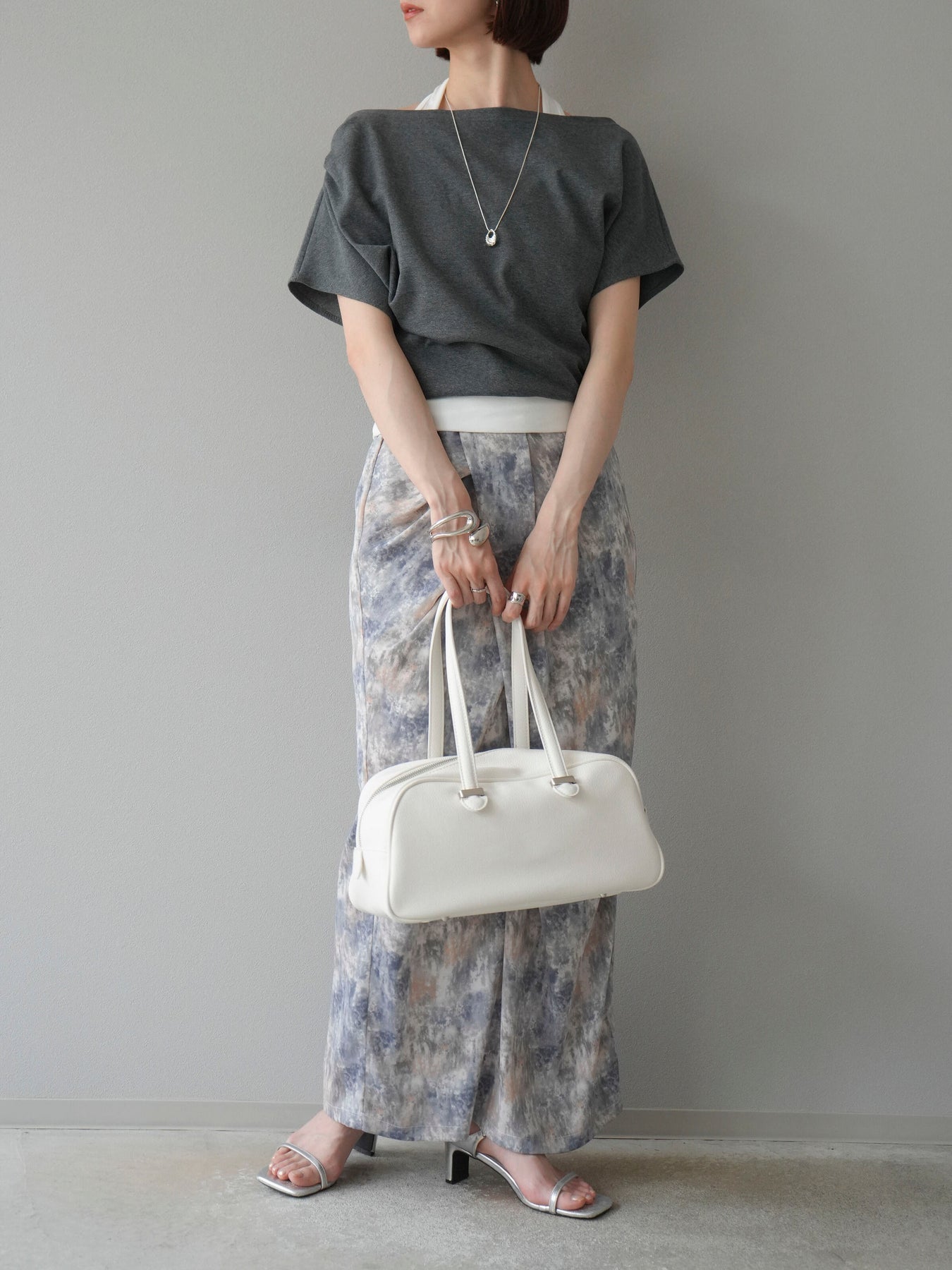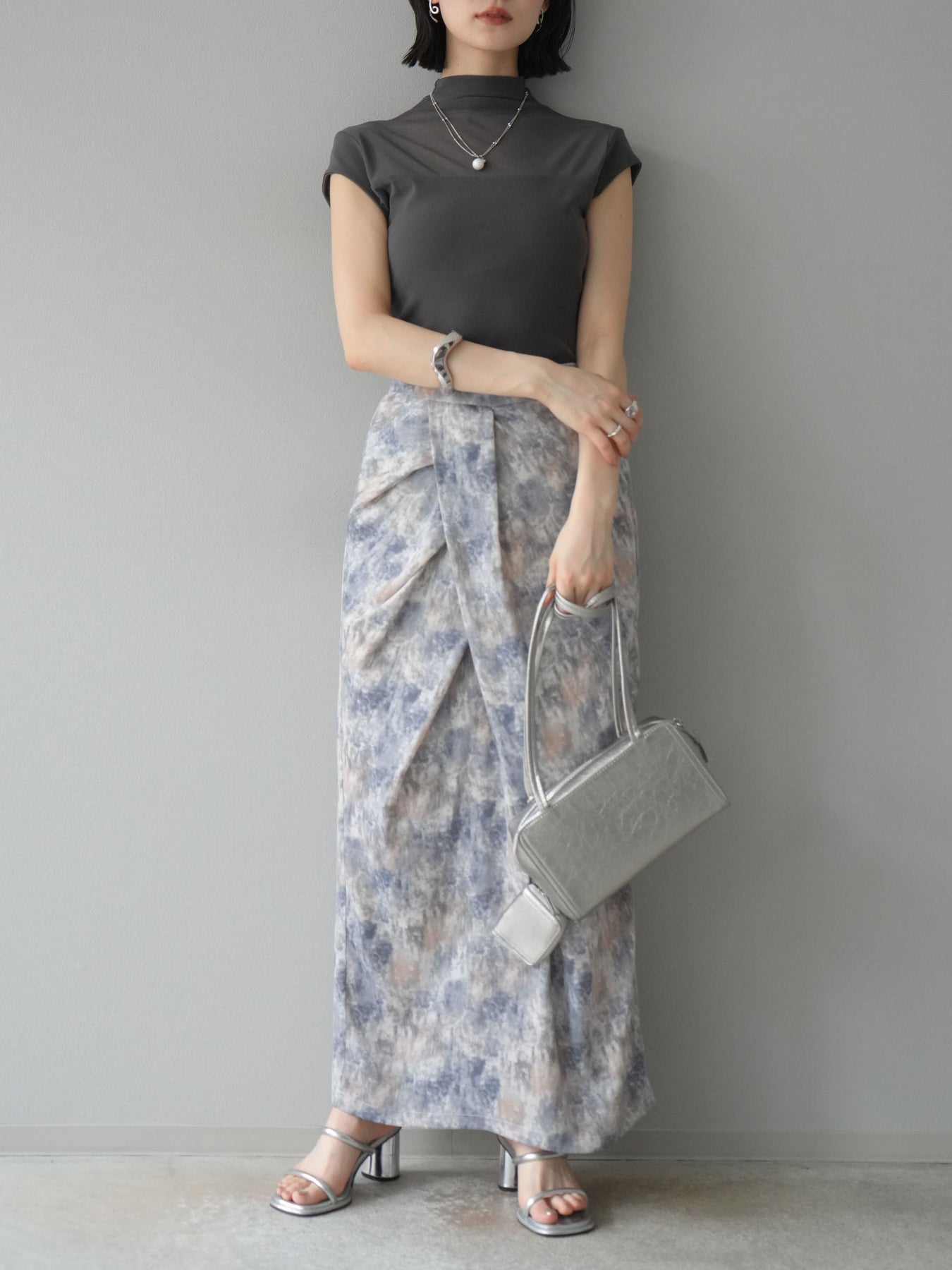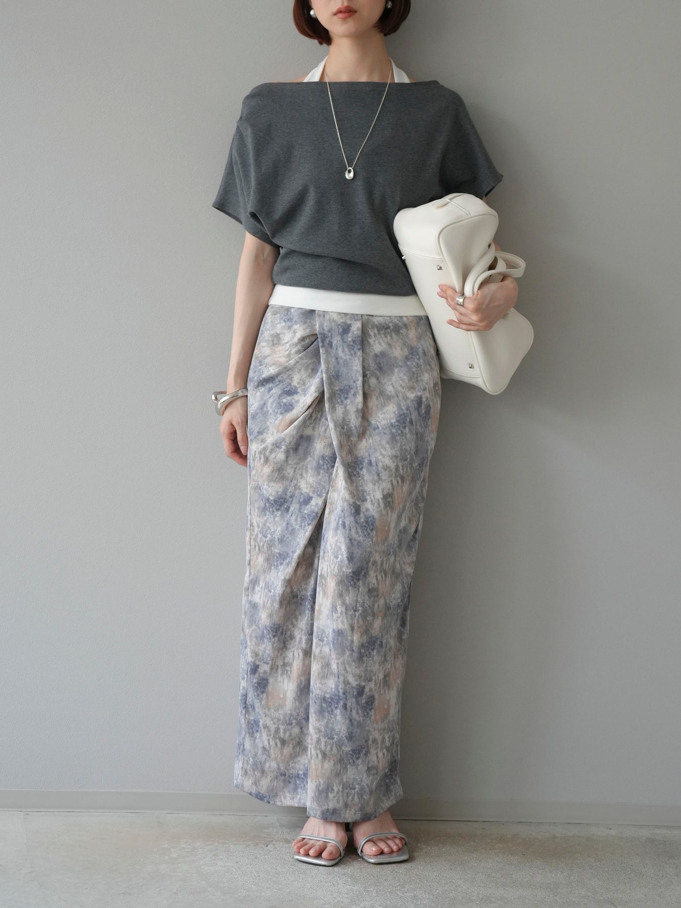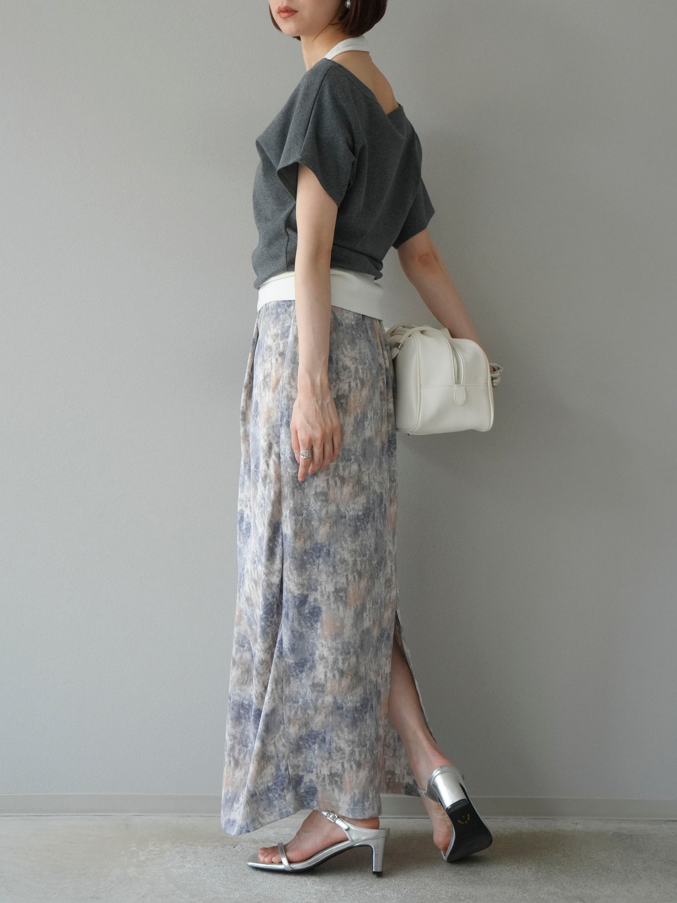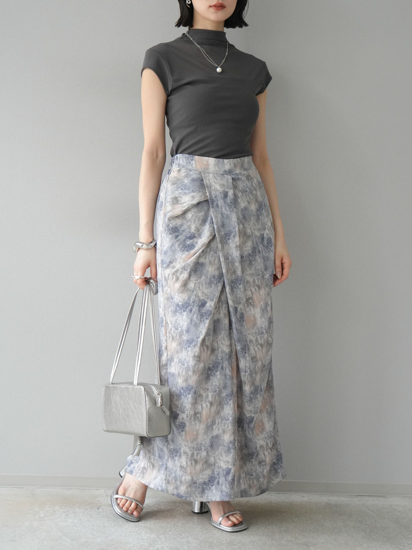 水彩アート風のプリントが目を惹く、トレンド感満載のIラインスカート。タックディテールで立体感を演出し、縦ラインを強調することでスタイルアップ効果も期待できます。柔らかく落ち感のある素材で、女性らしいしなやかなシルエットに。Tシャツやブラウスなど、幅広いトップスと合わせやすく、デイリーからお出かけコーデまで活躍する一枚です。 ※ボトムス、キャミソール(インナー)以外の商品は一律でインナーは付属していません