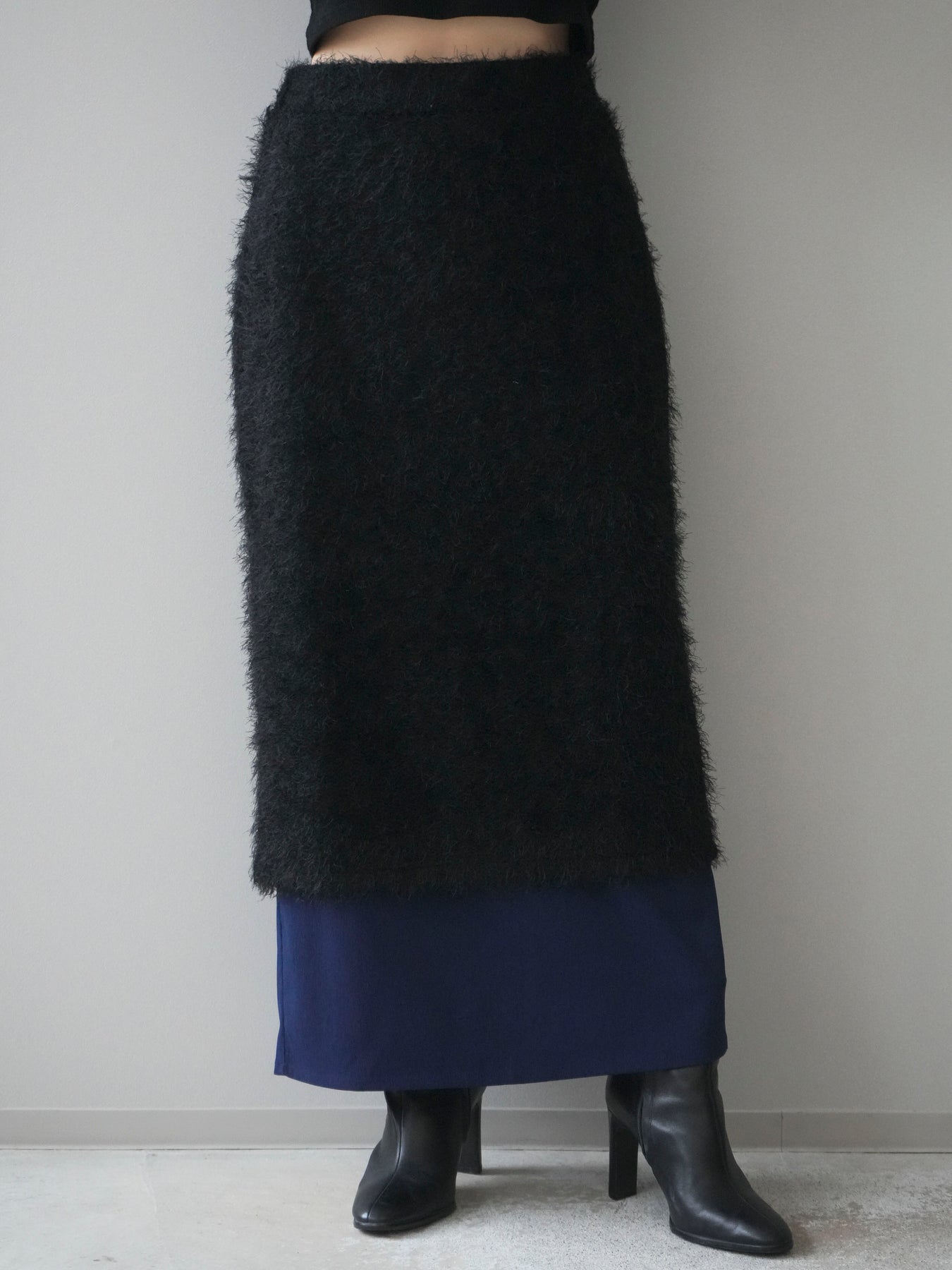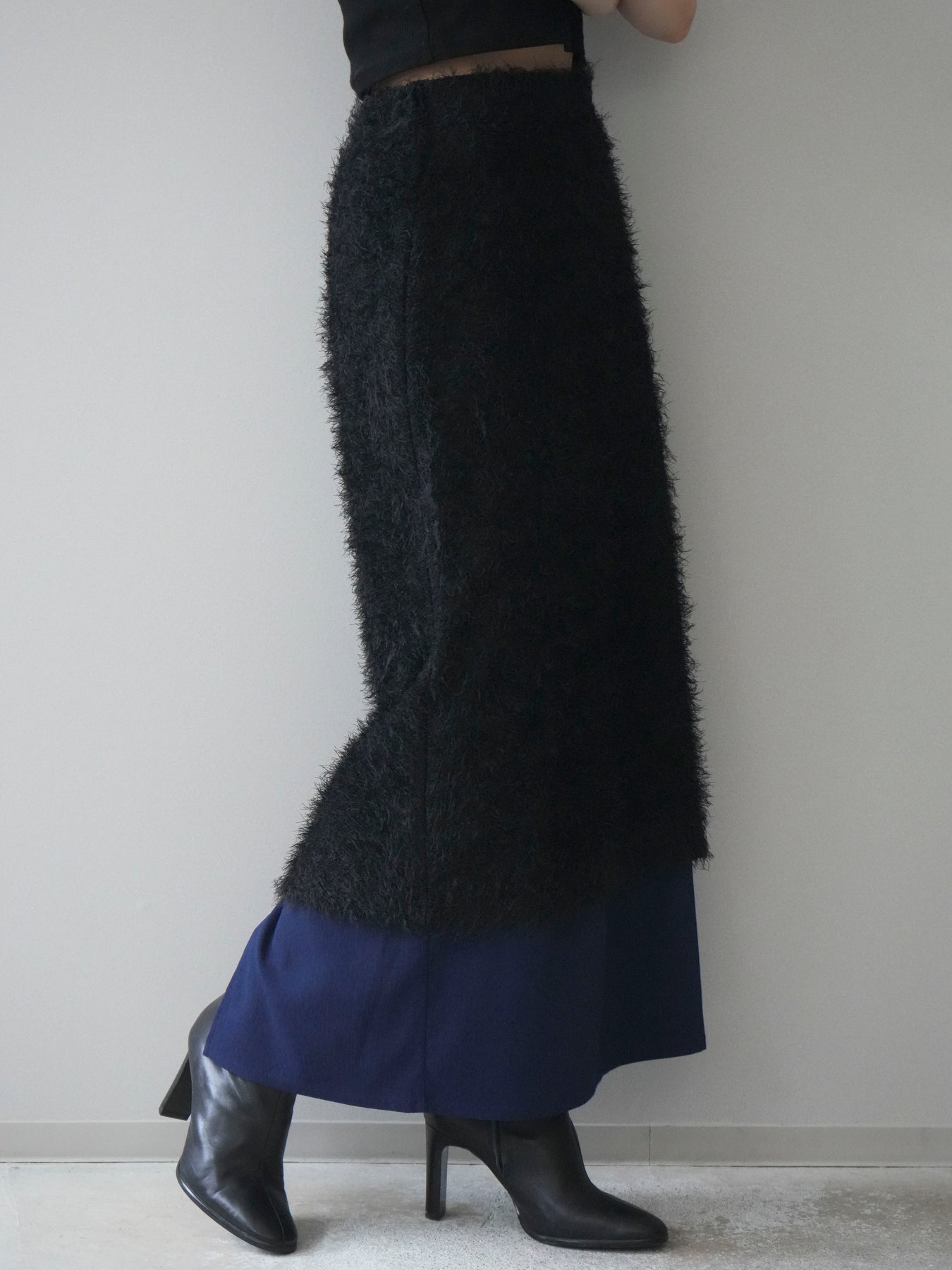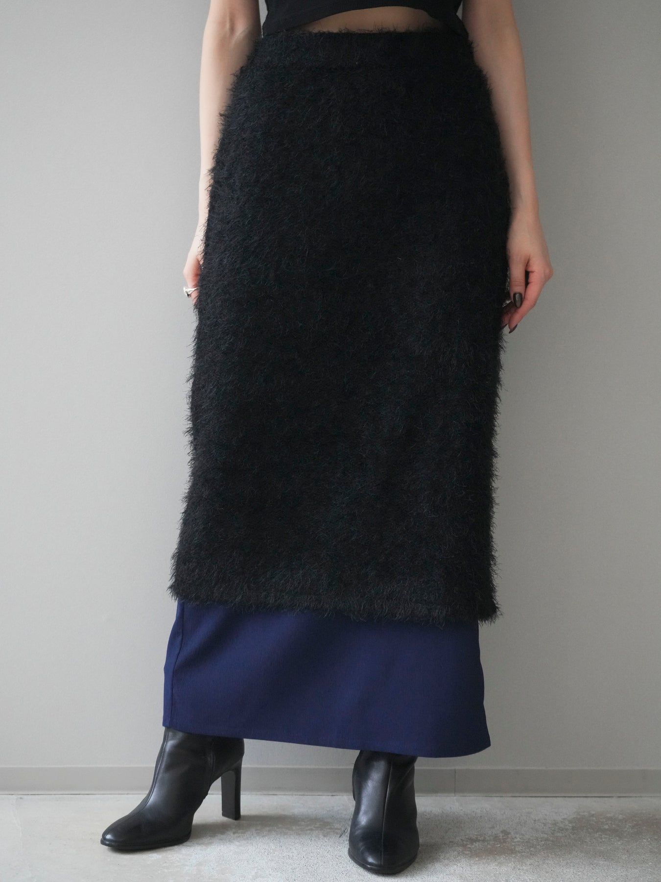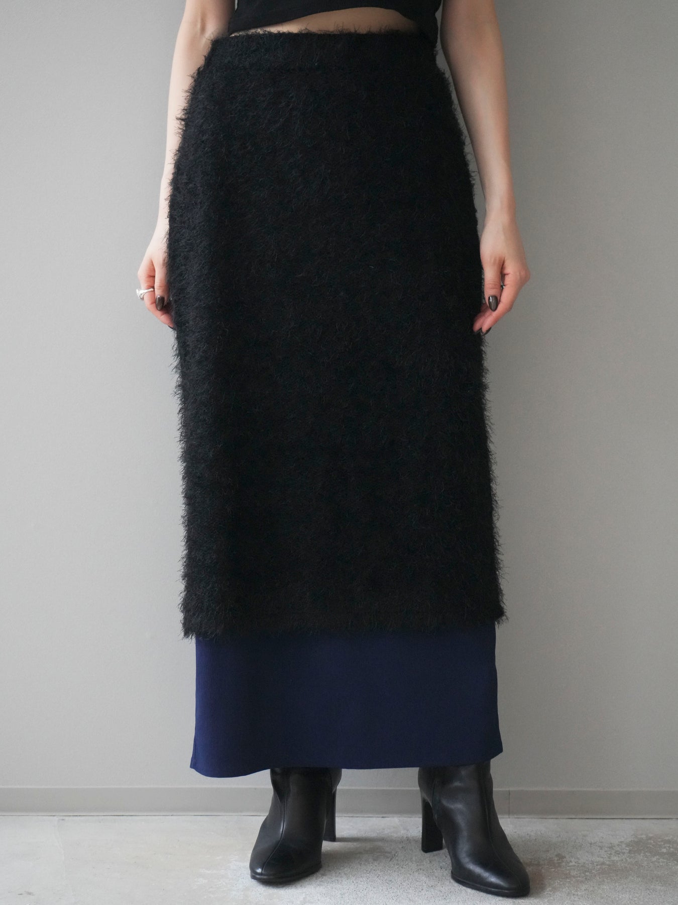 [予約]異素材バイカラーレイヤードシャギーニットスカート/black