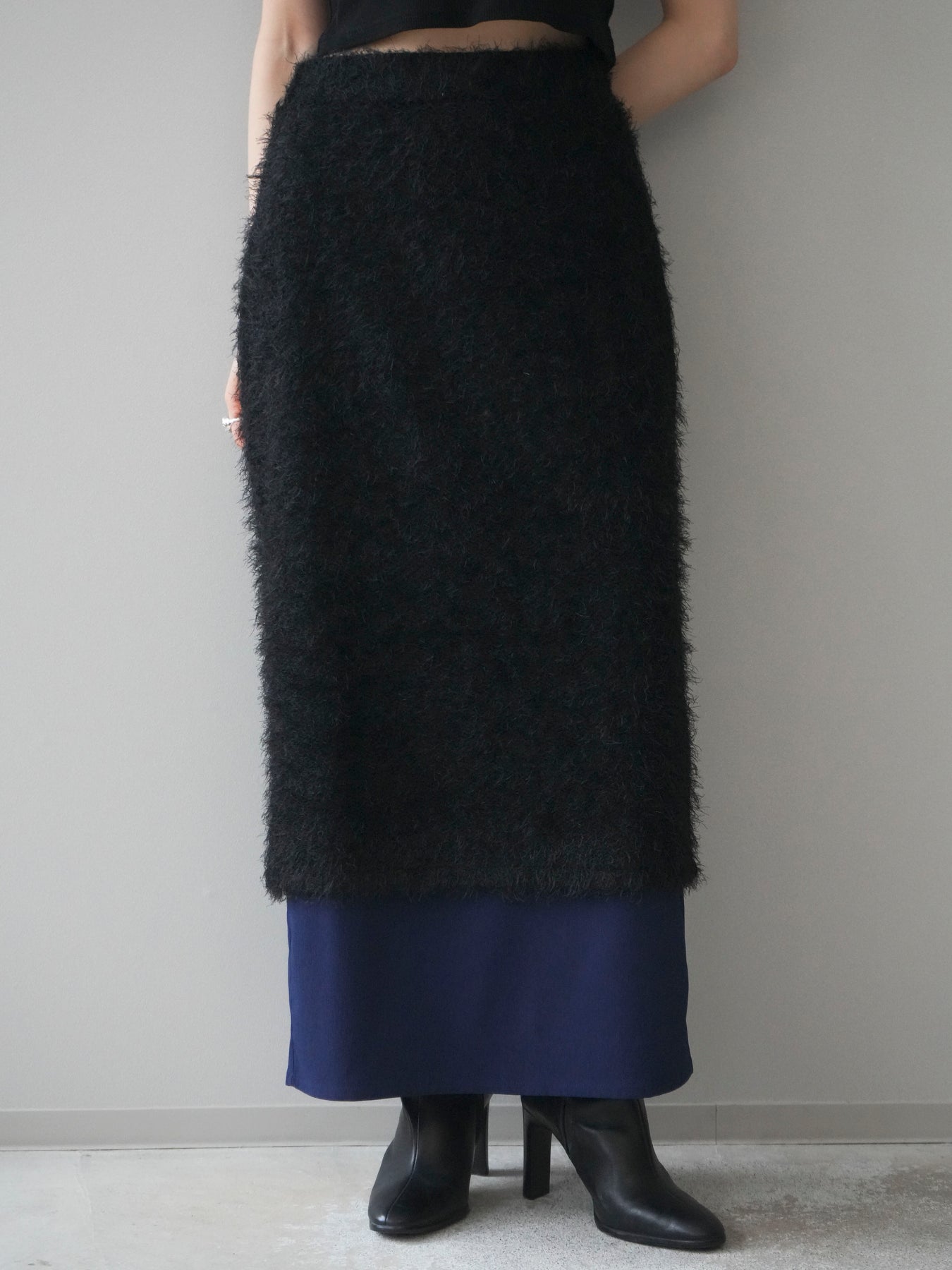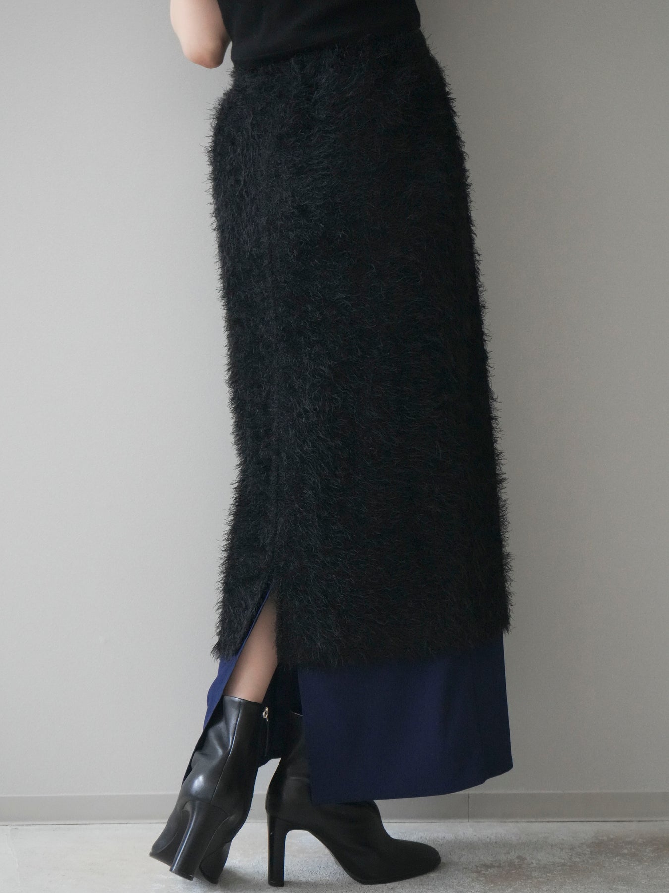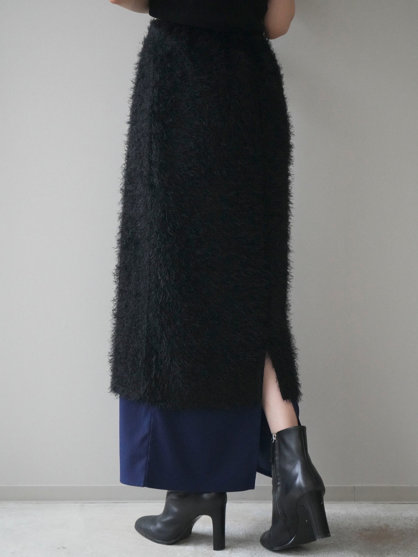 [予約]異素材バイカラーレイヤードシャギーニットスカート/black