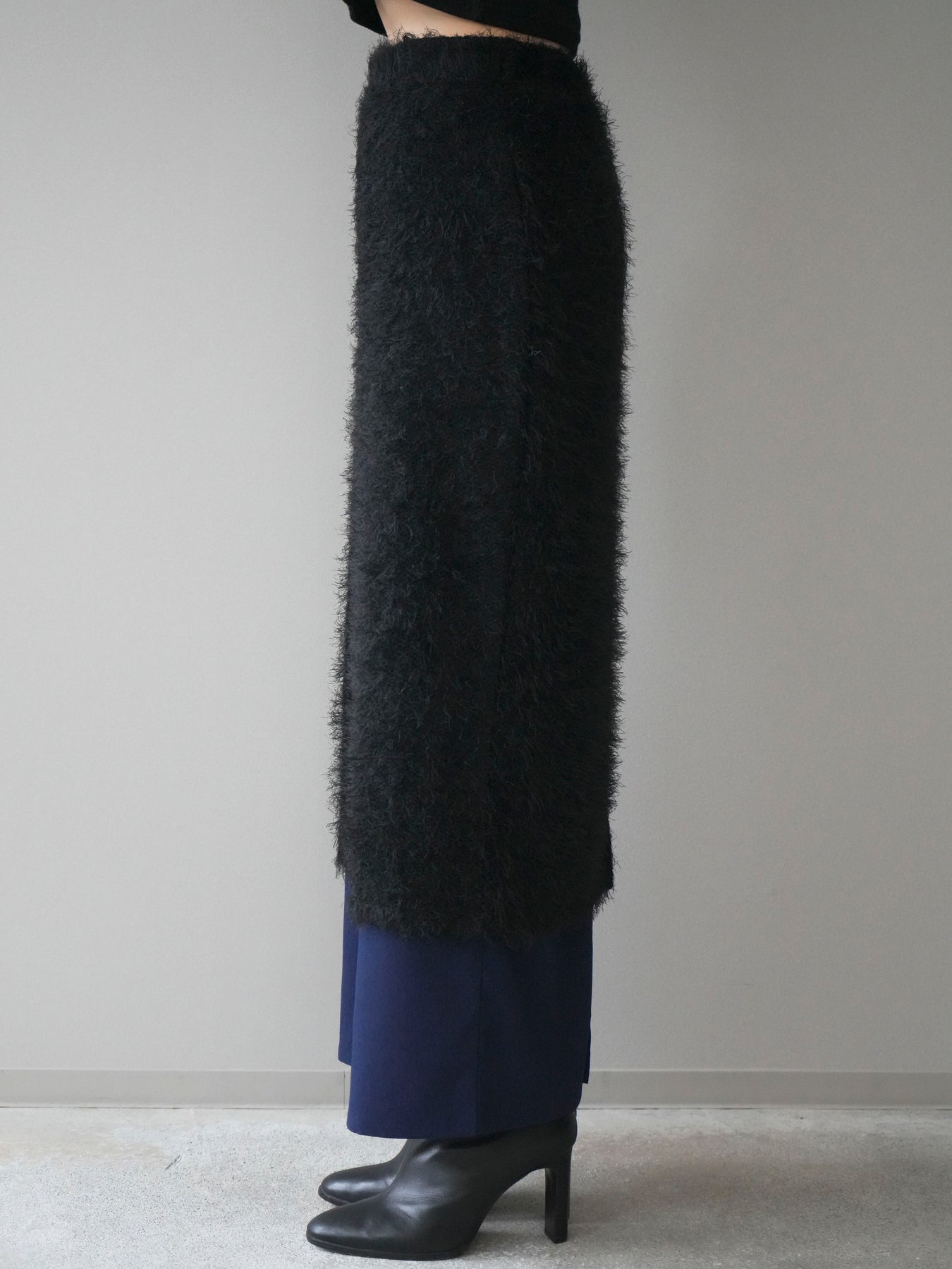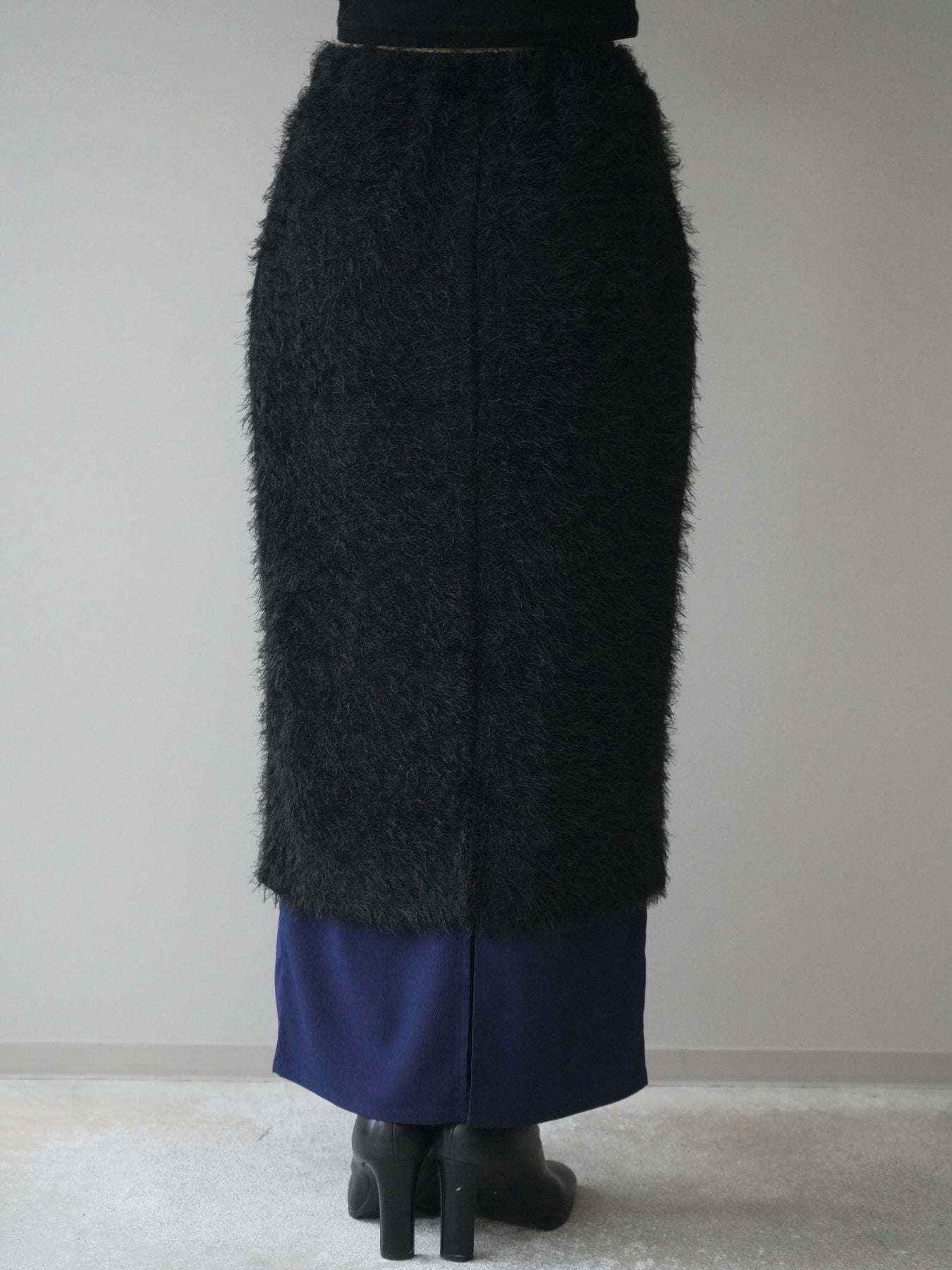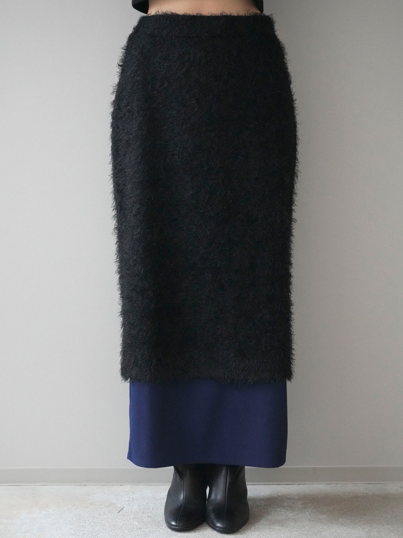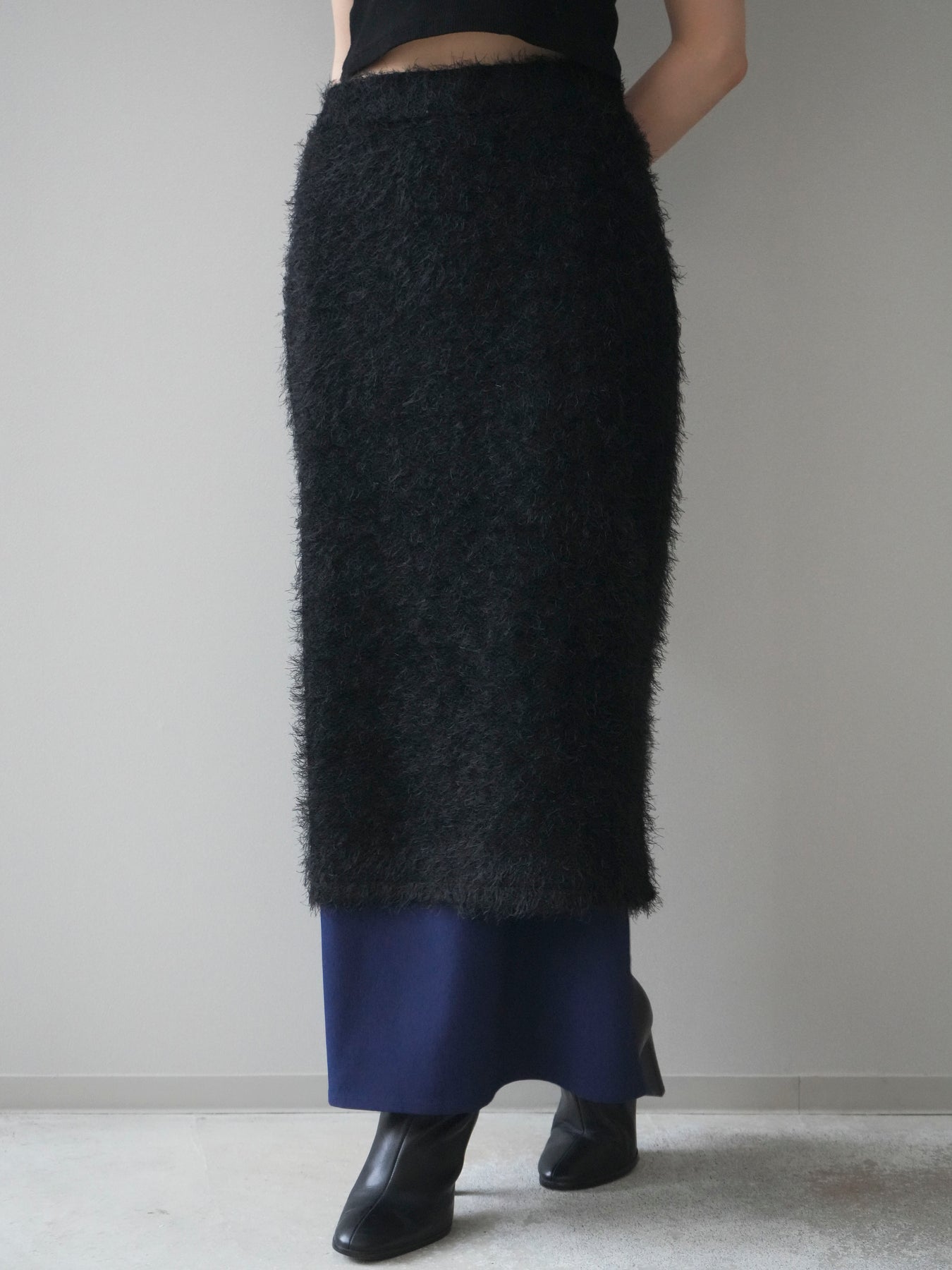 [予約]異素材バイカラーレイヤードシャギーニットスカート/black