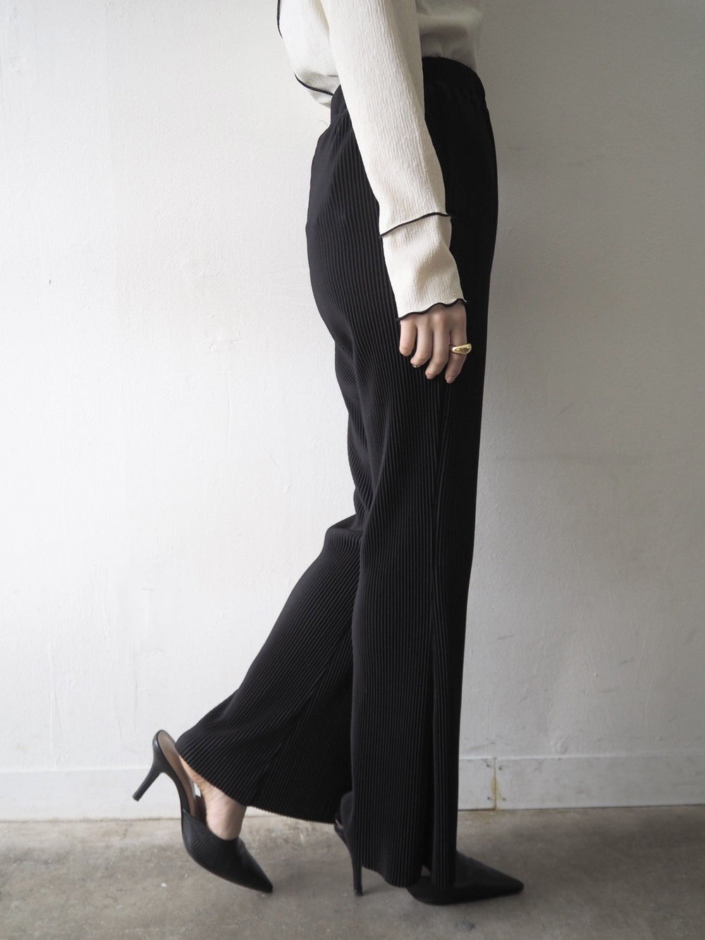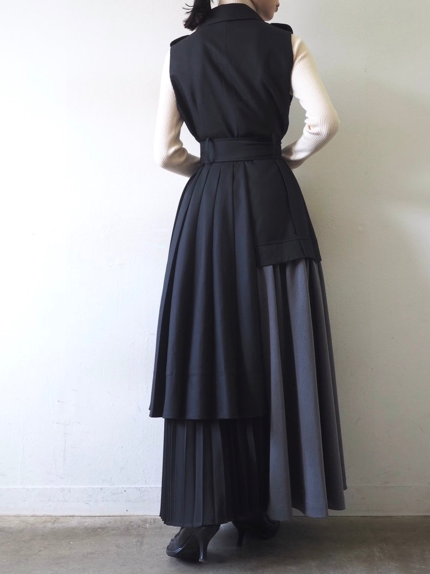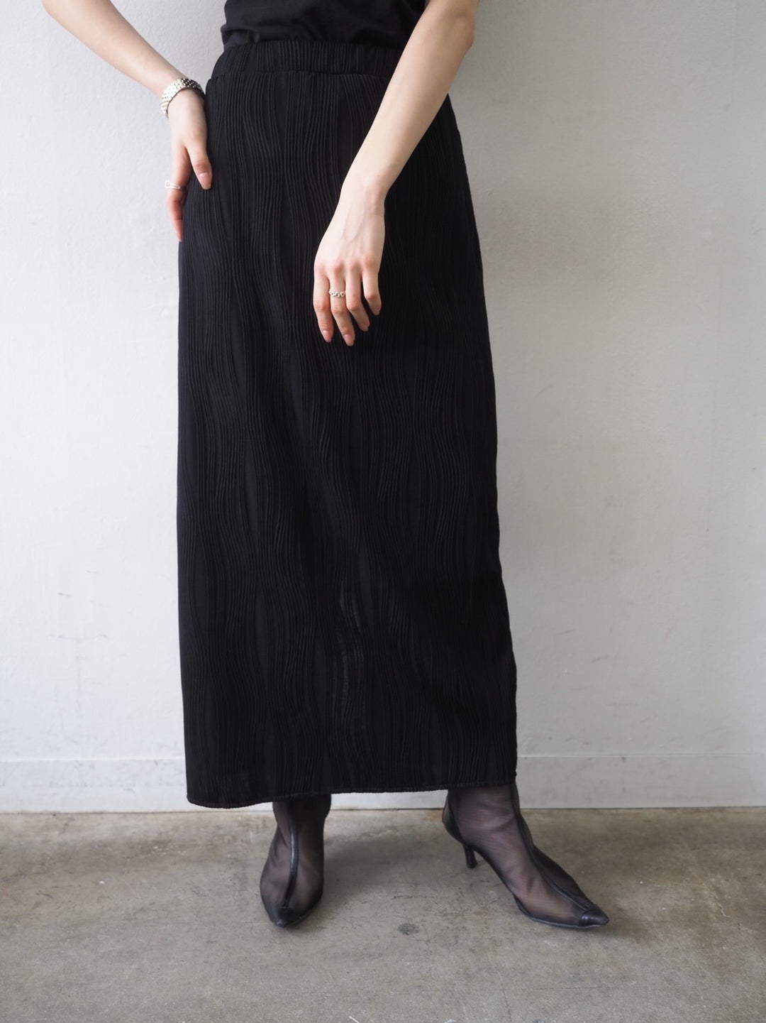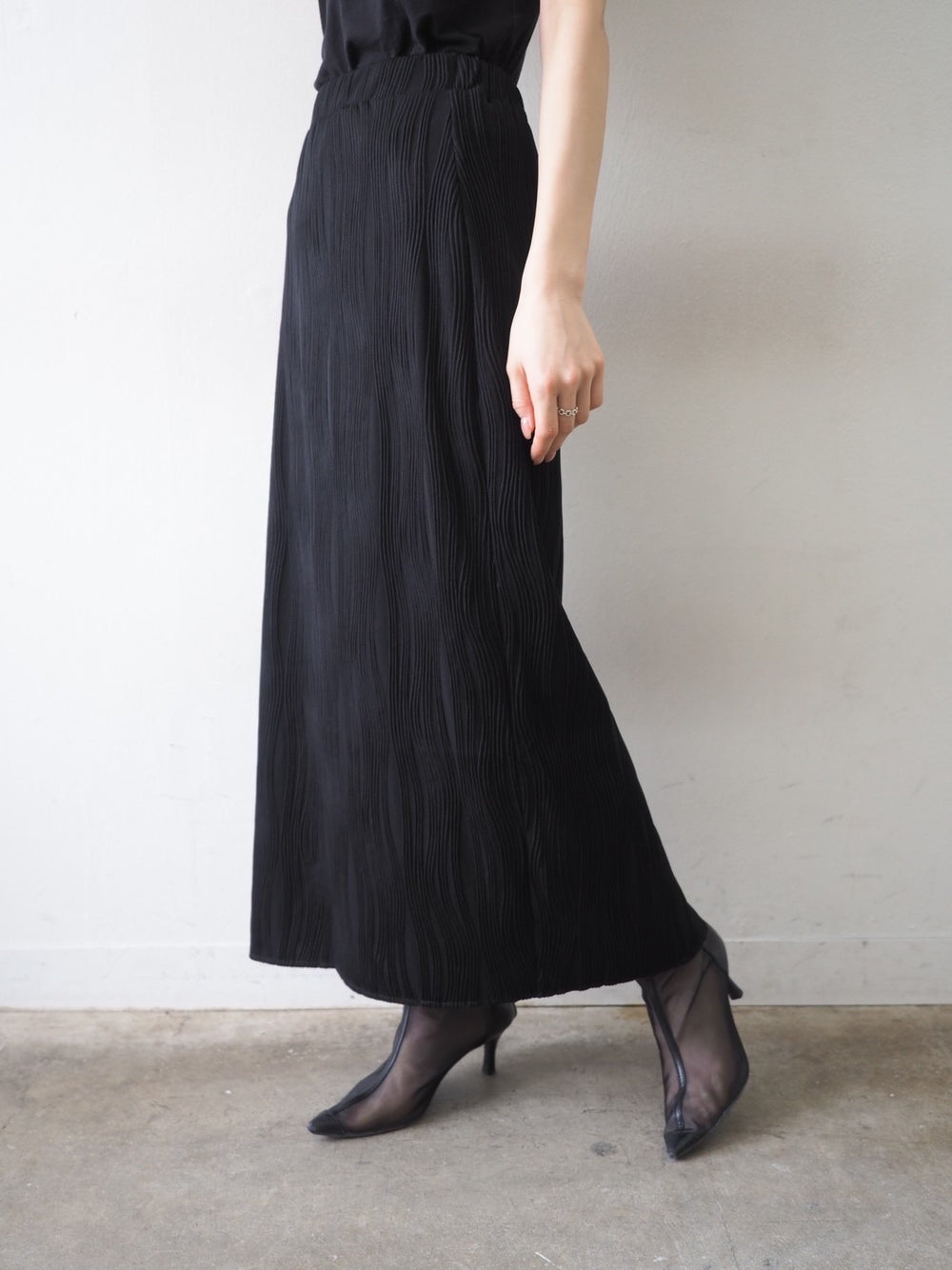[予約]ニュアンスプリント楊柳プリーツワンピース/ブラック