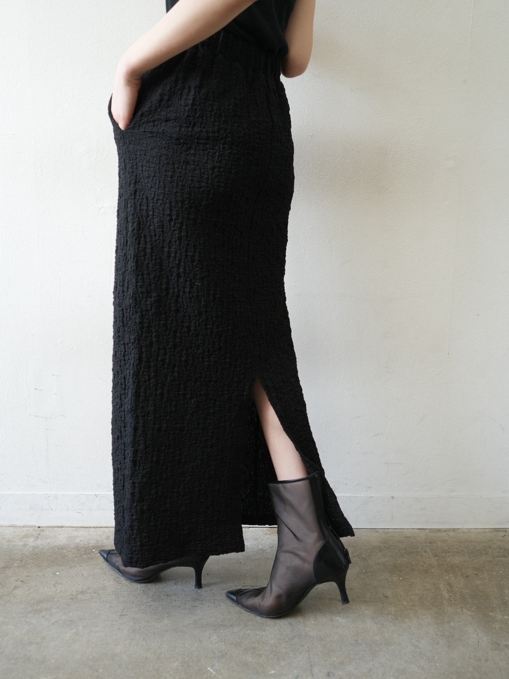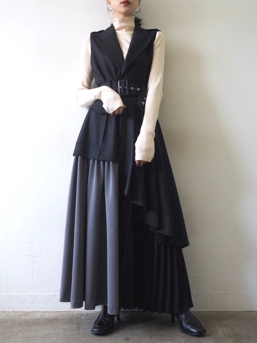[予約]サイドスリットリネンタッチネップニットワンピース/ブラック