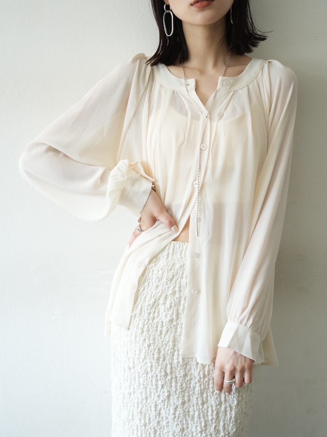 コットンスラブバンドカラーシャツワンピース/ベージュ