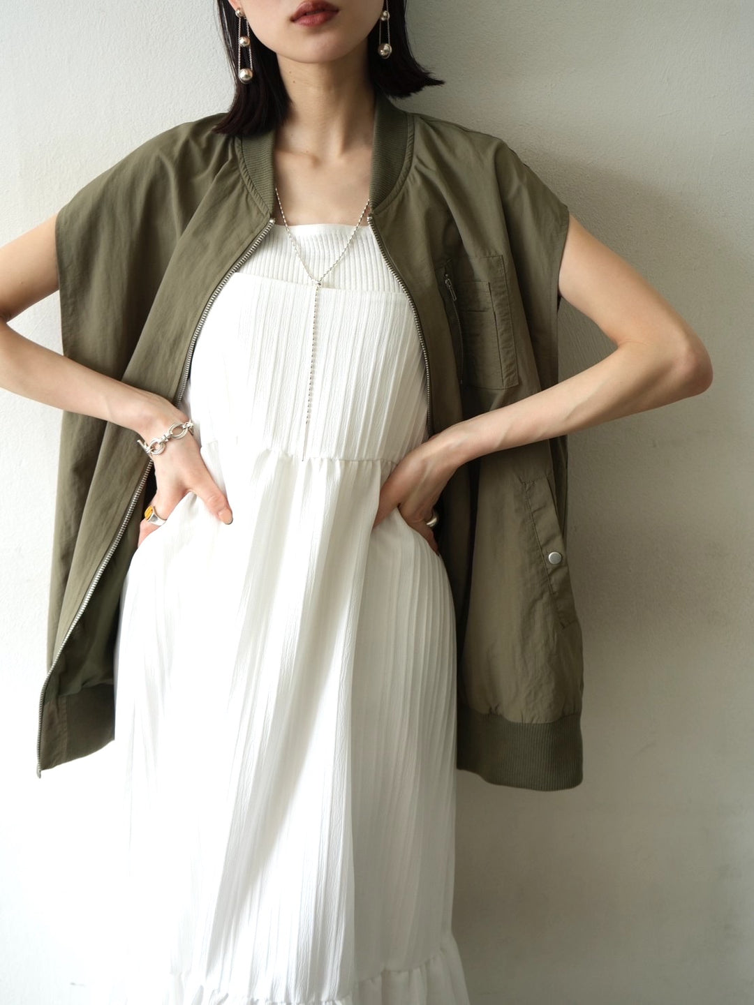 [予約]ニュアンスプリント楊柳プリーツワンピース/オフ