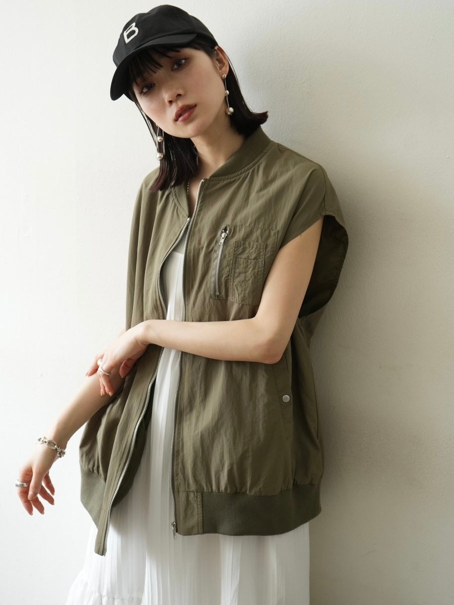[即納]異素材フレアフレンチスリーブニット/オフ