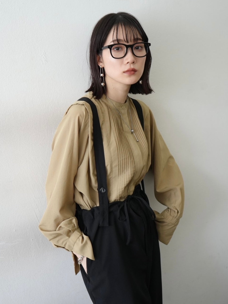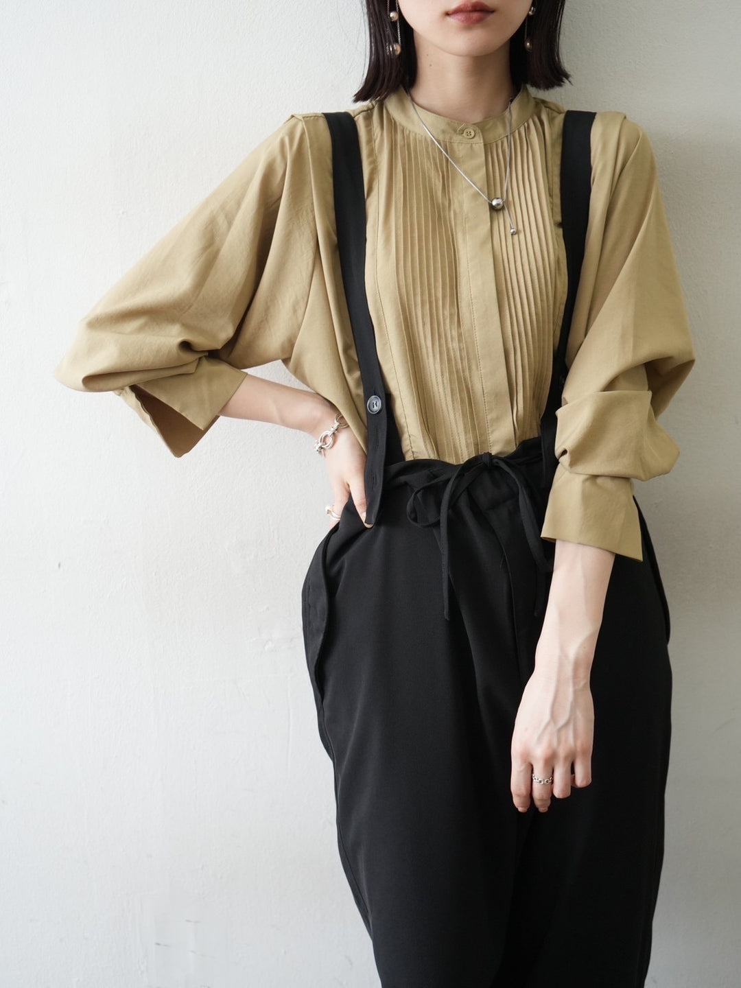 サスペンダー付デニムレースアップパンツ/ブリーチ