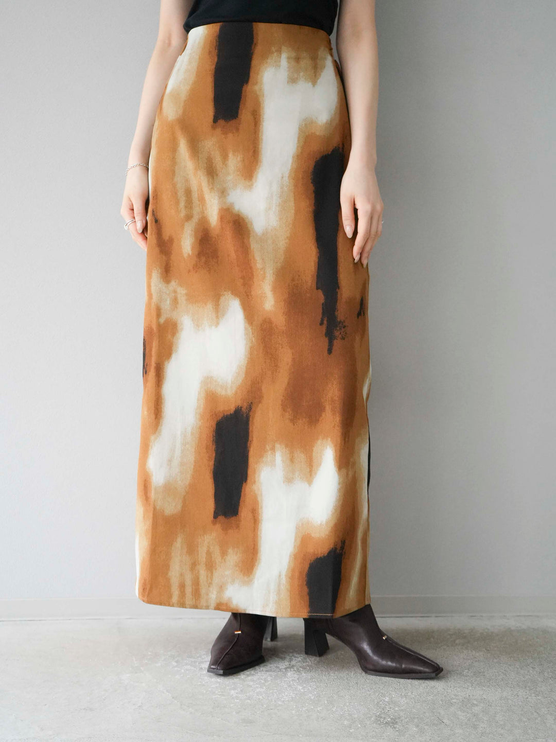 [予約]ニュアンスプリントIラインスカート/ブラウン