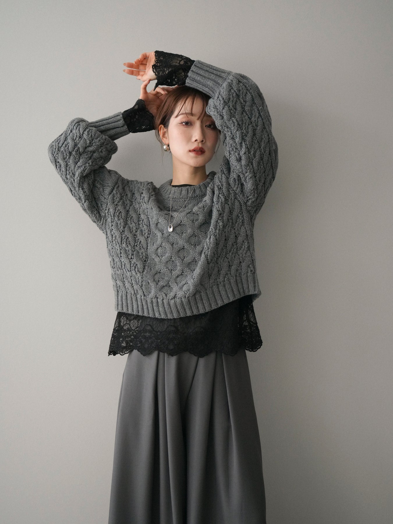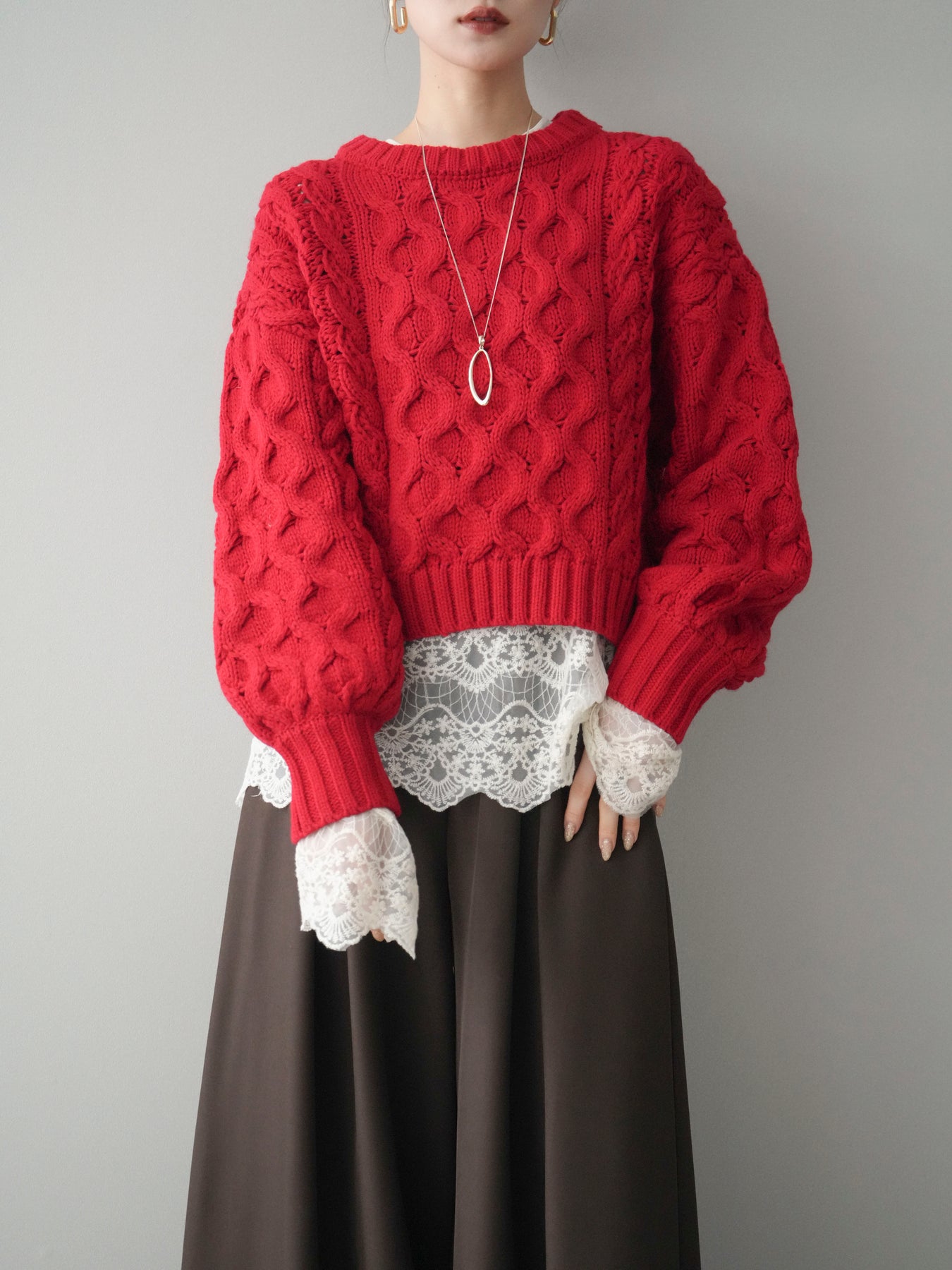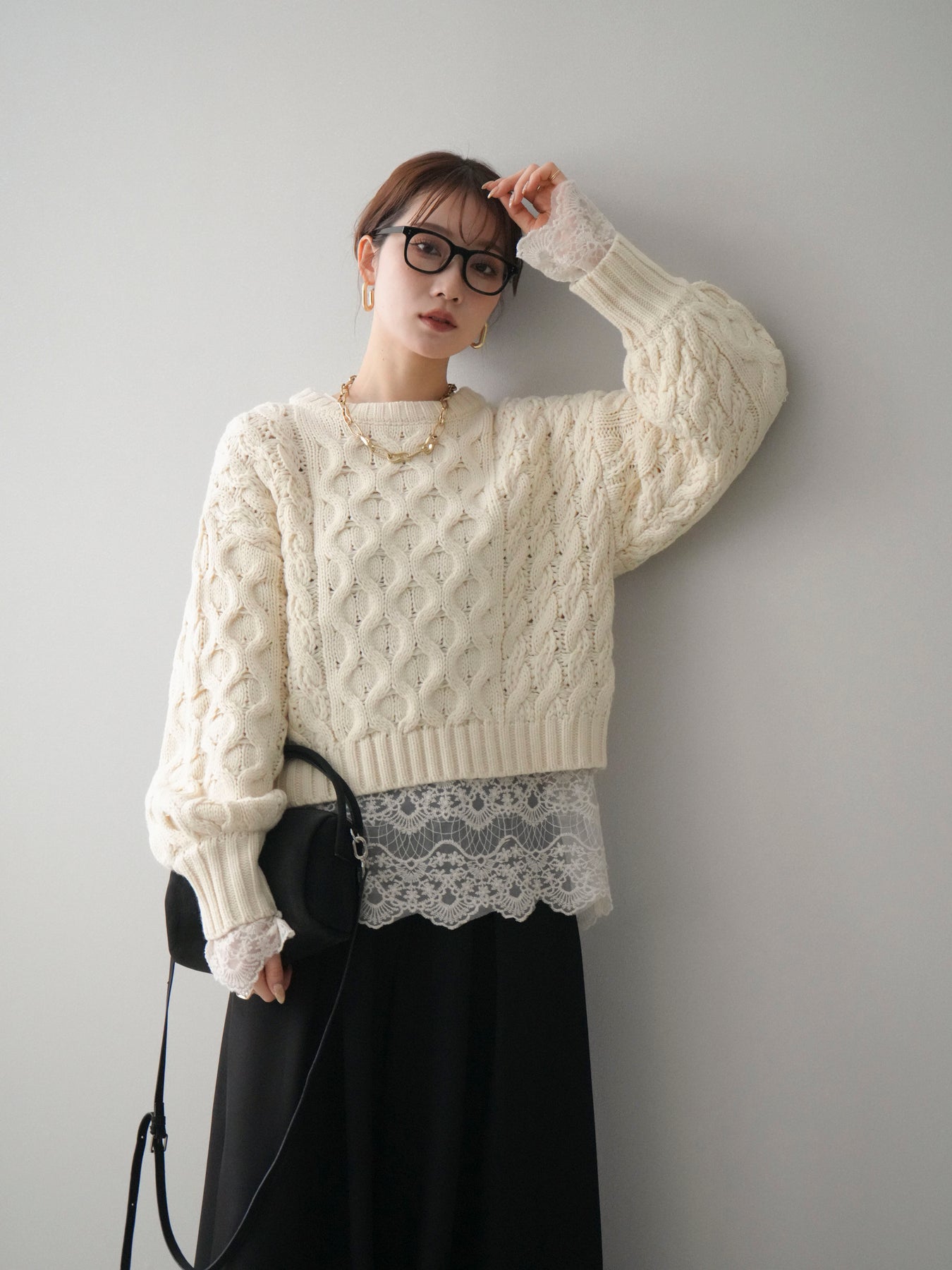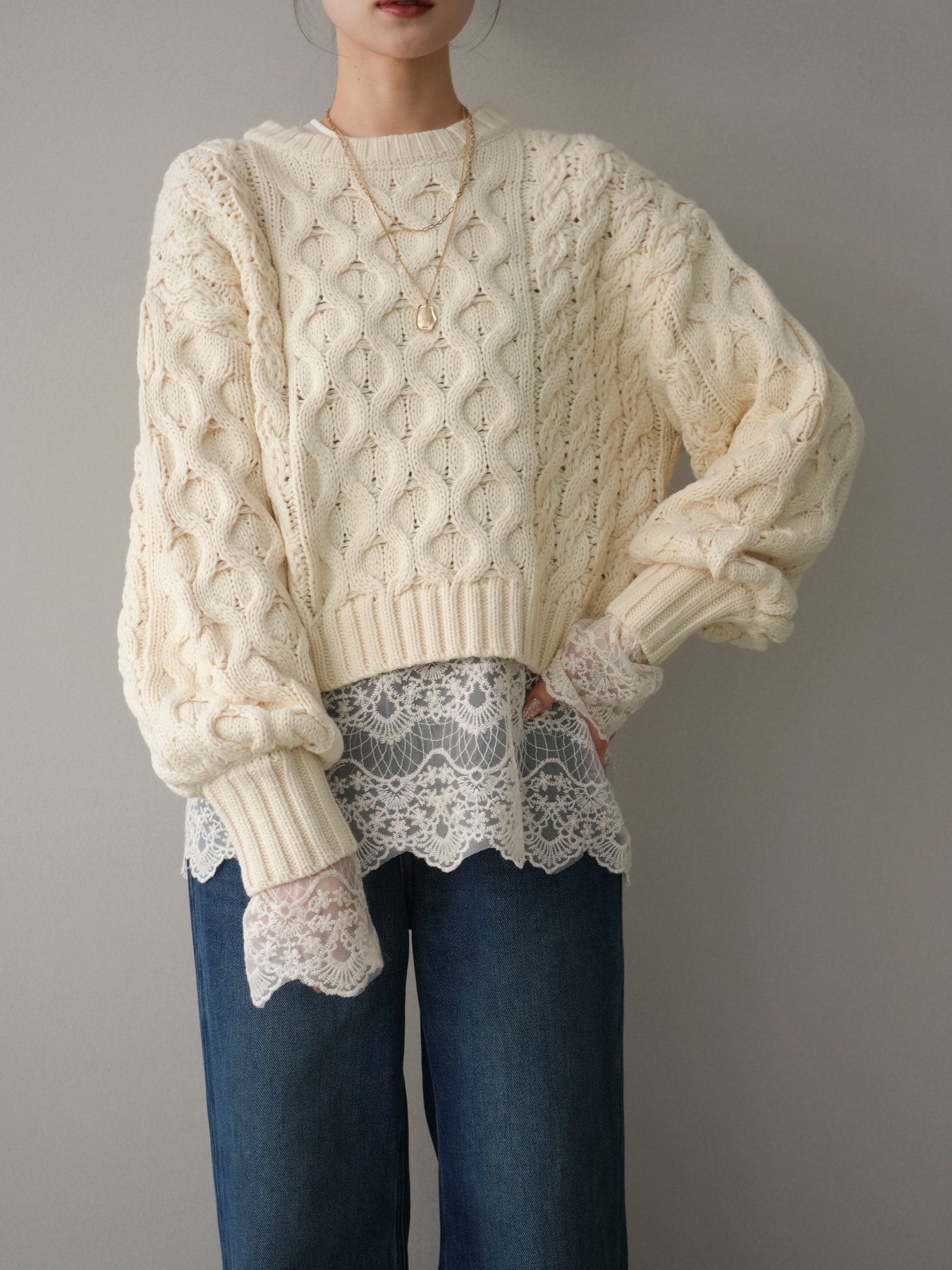 ◆ [予約]バルキーケーブルクロップドニットプルオーバー