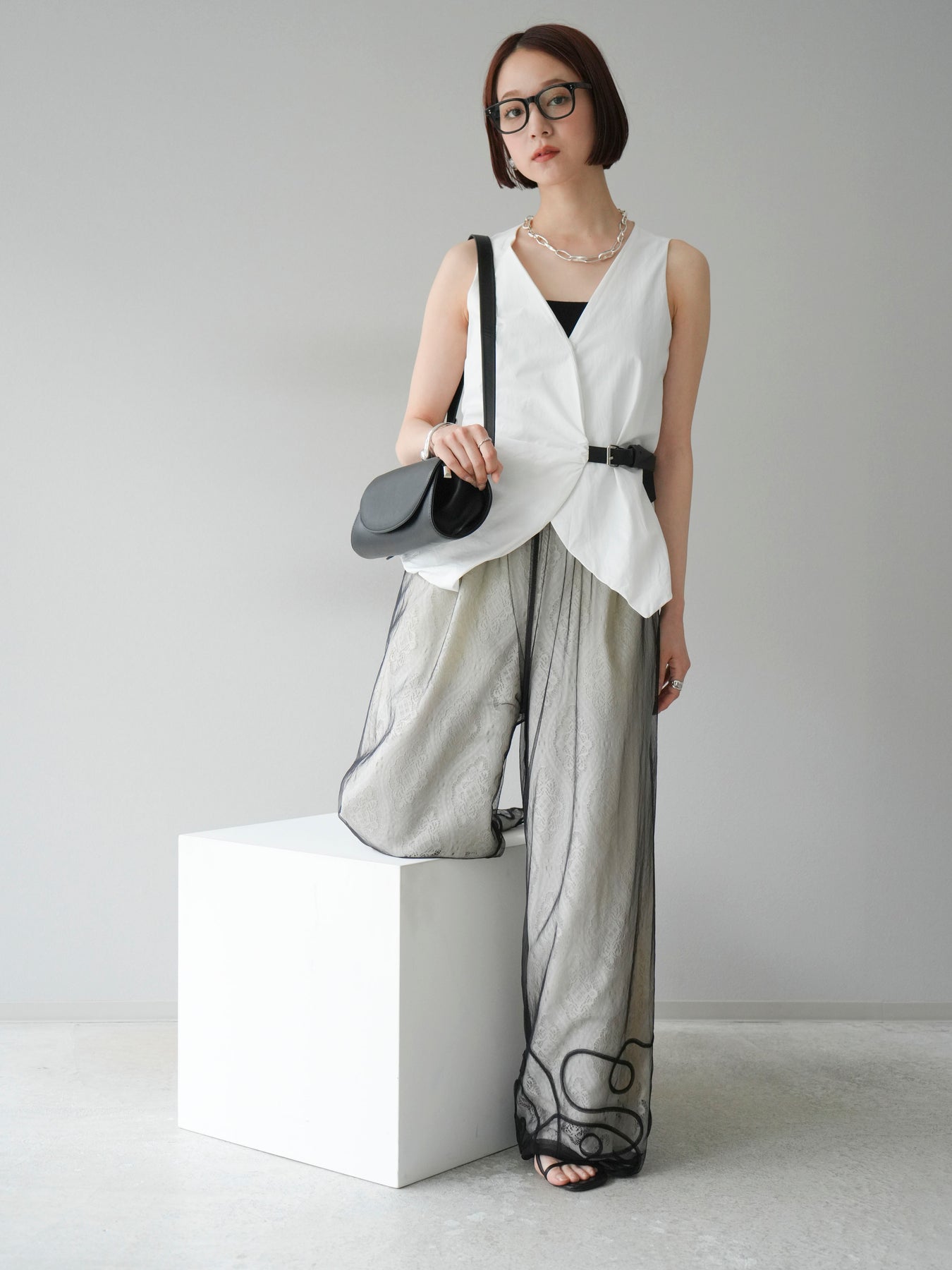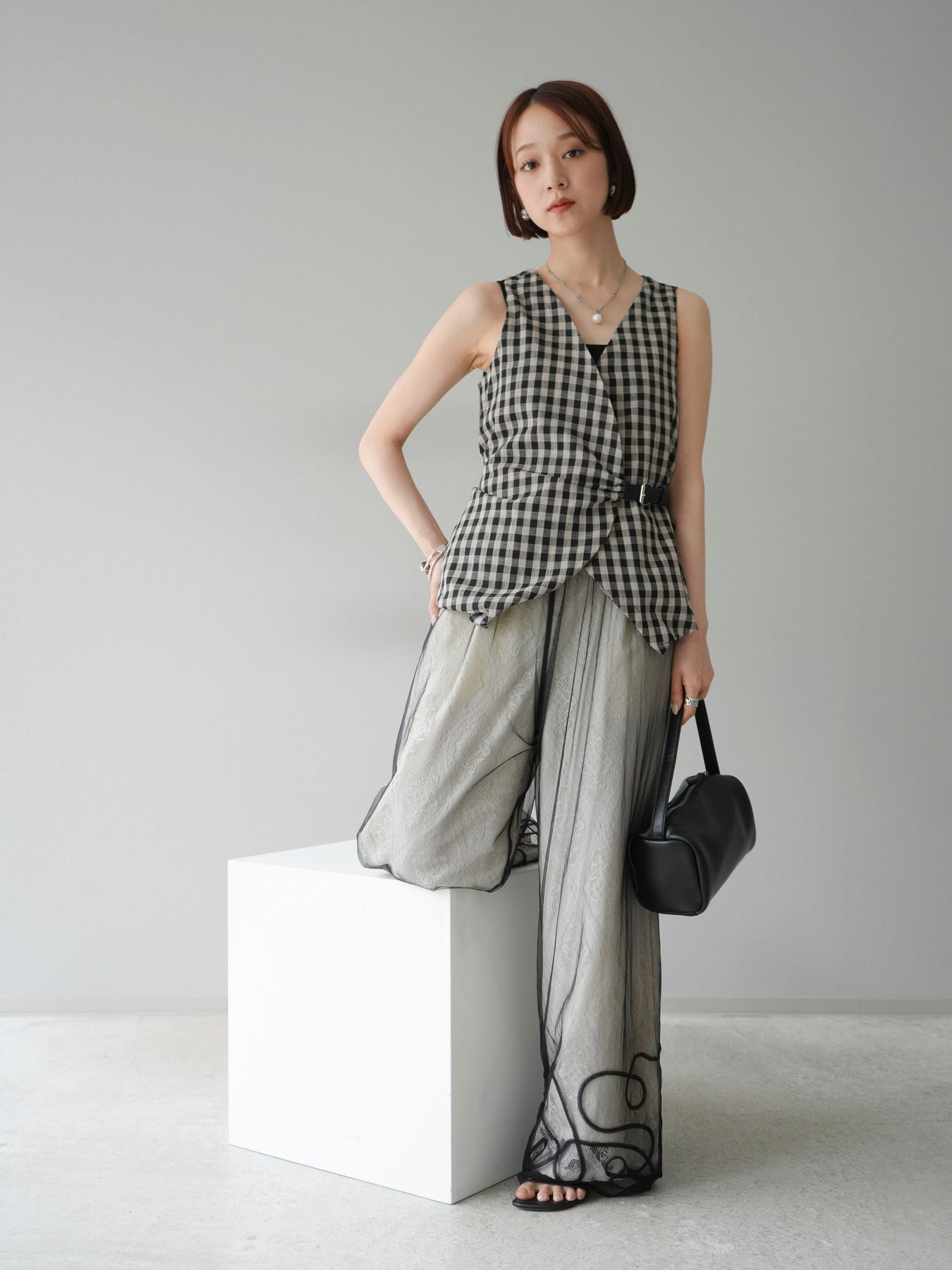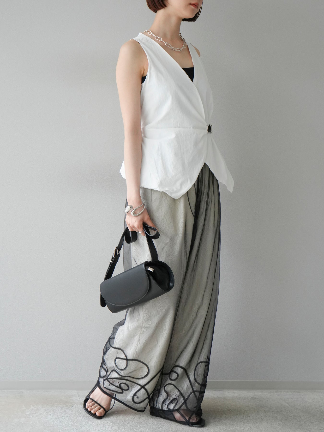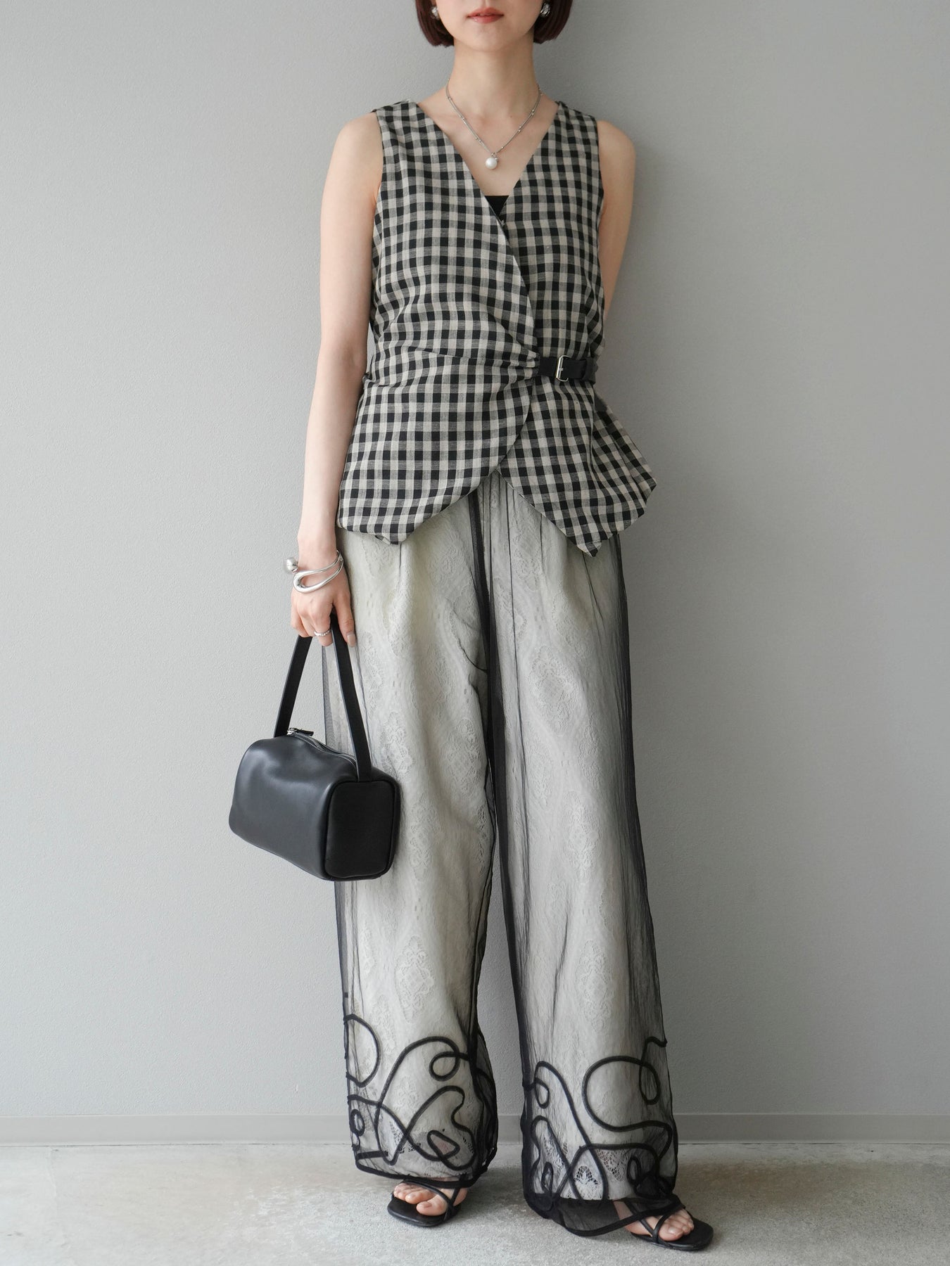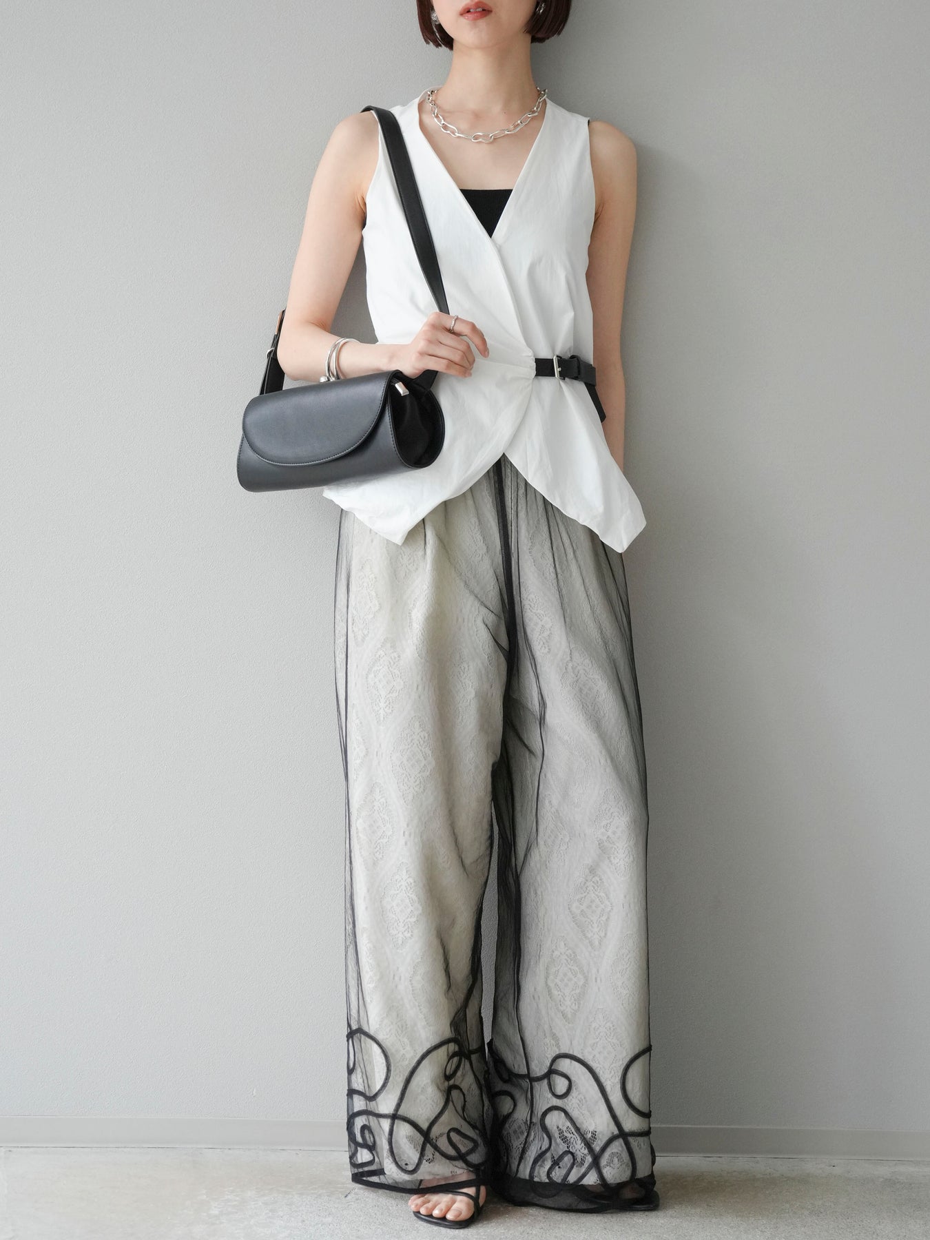 ◆ [予約]コード刺繍チュールレイヤードパンツ